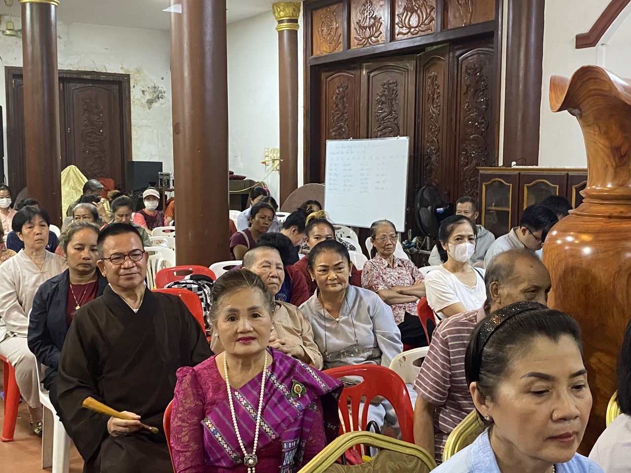 Dưới sự đón tiếp của Thượng tọa Thích Minh Quang – Ủy viên HĐTS GHPGVN, Trưởng ban Điều phối Phật giáo Việt Nam tại Lào, Phó ban Kinh tế Tài chính Trung ương GHPGVN, cùng chư Tăng chùa Phật Tích và quý Phật tử Việt Nam tại Lào; phái đoàn chư Tăng và Phật tử Viện Chuyên Tu đảnh lễ Tam bảo, vấn an sức khỏe và khánh tuế chư Tôn đức Tăng bổn tự thêm một tuổi hạ sau mùa an cư.