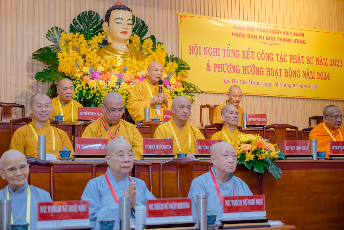 Ban đạo từ tại hội nghị, Trưởng lão Hòa thượng Thích Thiện Nhơn đã tán thán và ghi nhận công đức của chư Ni Phân ban Ni giới T.Ư, Phân ban Ni giới tỉnh thành với tinh thần tôn trọng giới luật, thực hành nghiêm Bát Kỉnh pháp, tuân theo tinh thần chủ đề của Đại hội IX GHPGVN “Kỷ cương – Trách nhiệm – Đoàn kết – Phát triển”, cùng sự lãnh đạo của Ni trưởng Thích nữ Nhật Khương, Phân ban Ni giới T.Ư và các tỉnh thành đã thực hiện và hoàn thành nhiều thành tựu hoạt động Phật sự nổi bật trong 2023, đóng góp cho thành tựu chung của GHPGVN.
