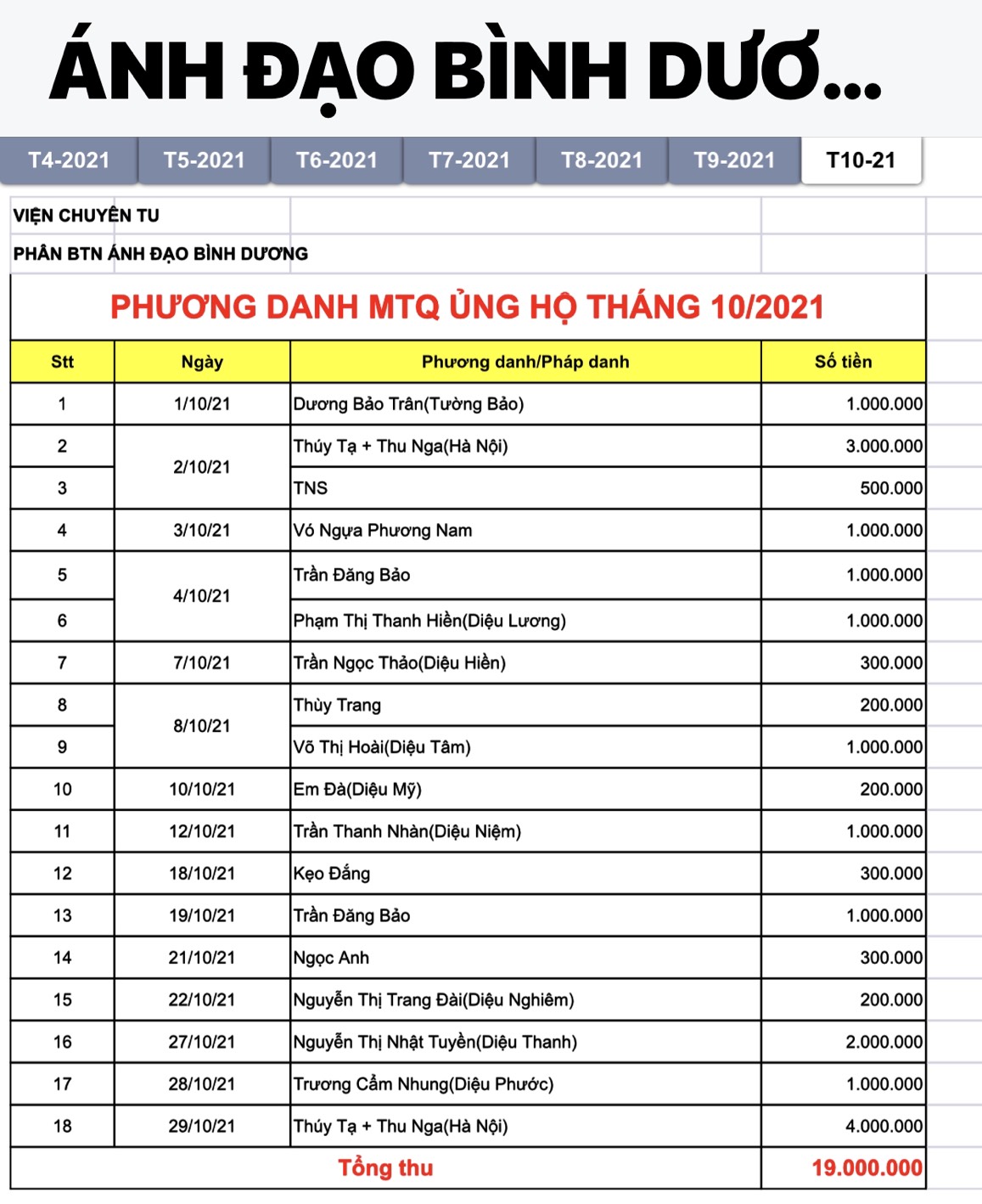 Dưới đây là phương danh các MTQ xa gần đã gieo duyên cùng Phân Ban để thực hiện những thiện sự.