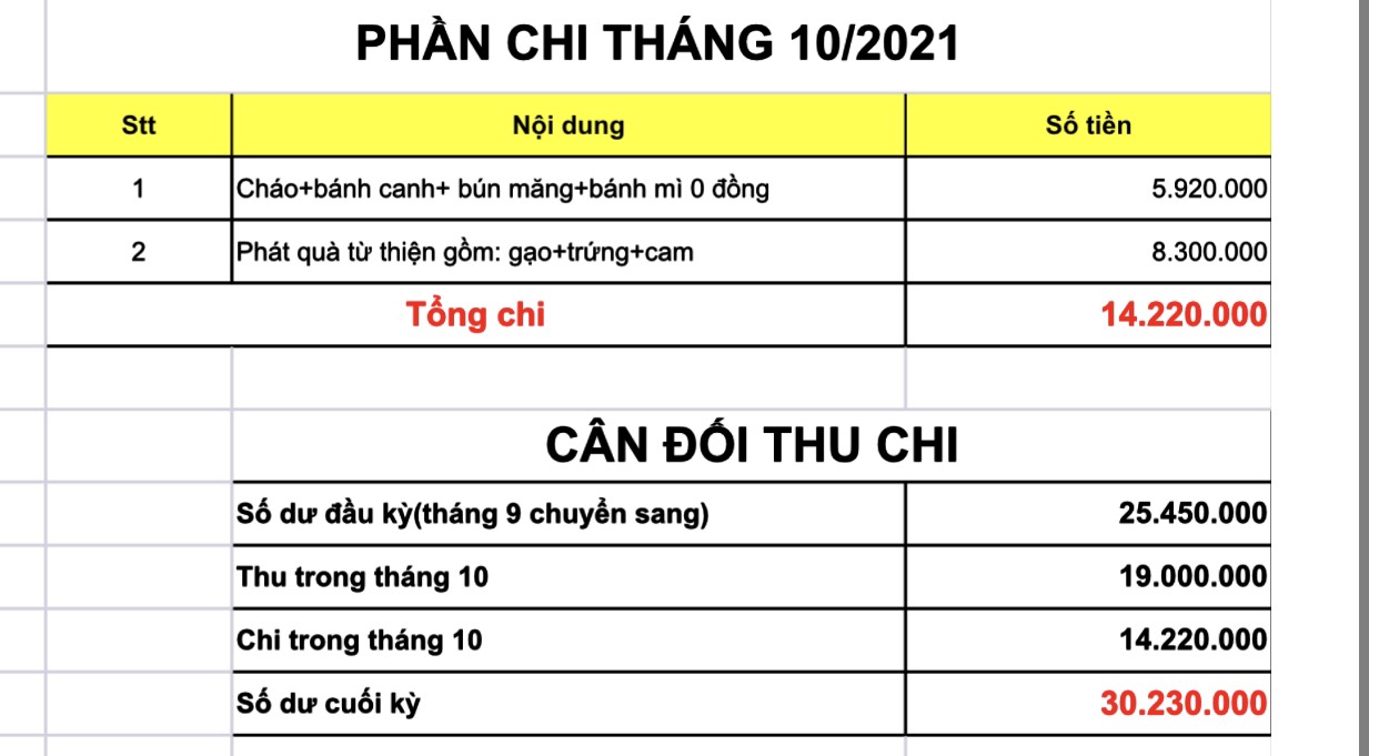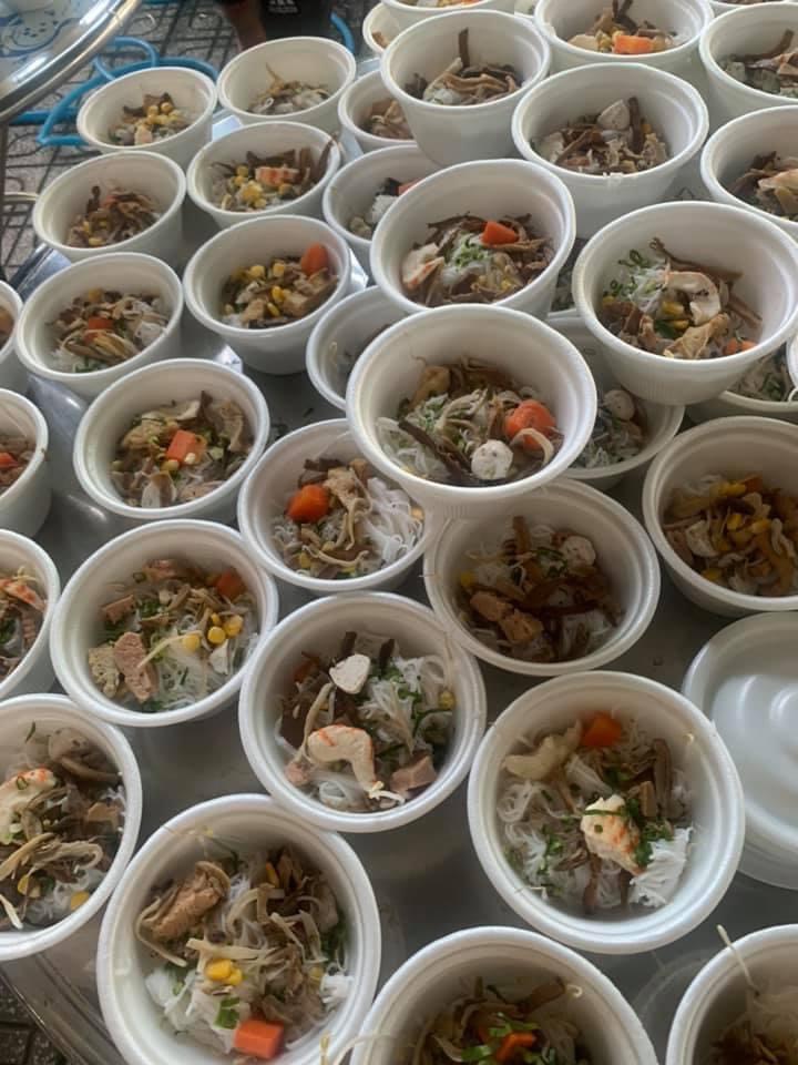 Trong 1 tháng qua, chương trình 0 đồng vẫn diễn ra liên tục, khi là cháo, khi là bánh mì, bánh canh, bún măng… nhằm trao gửi yêu thương đến bà con trong khu phong toả, công nhân dọn dẹp bãi rác, các em nhỏ cô nhi viện…