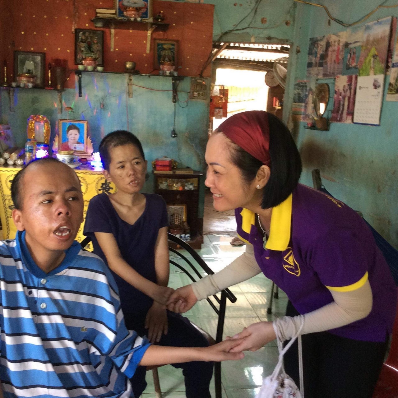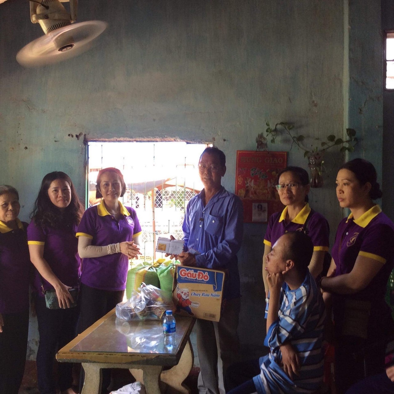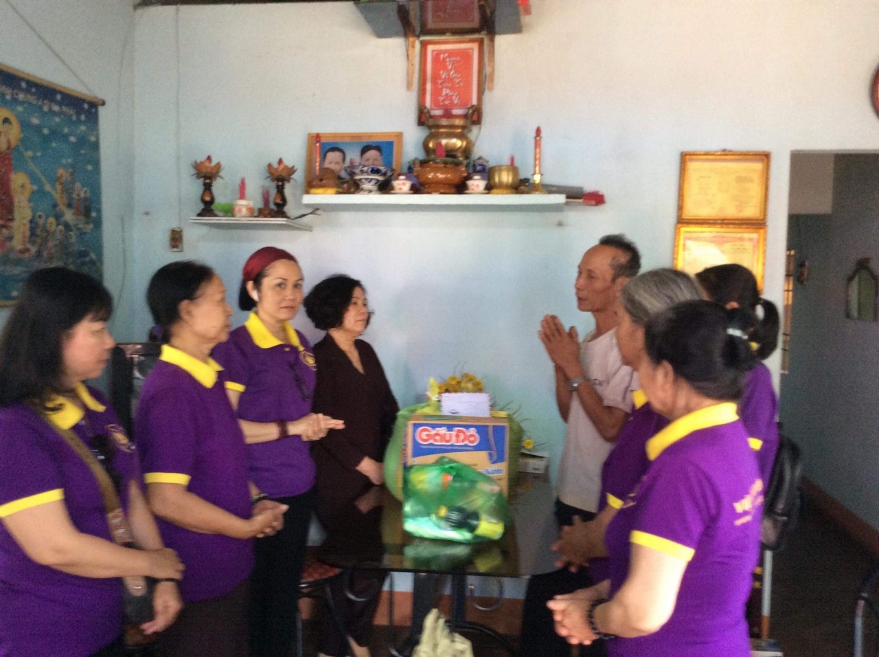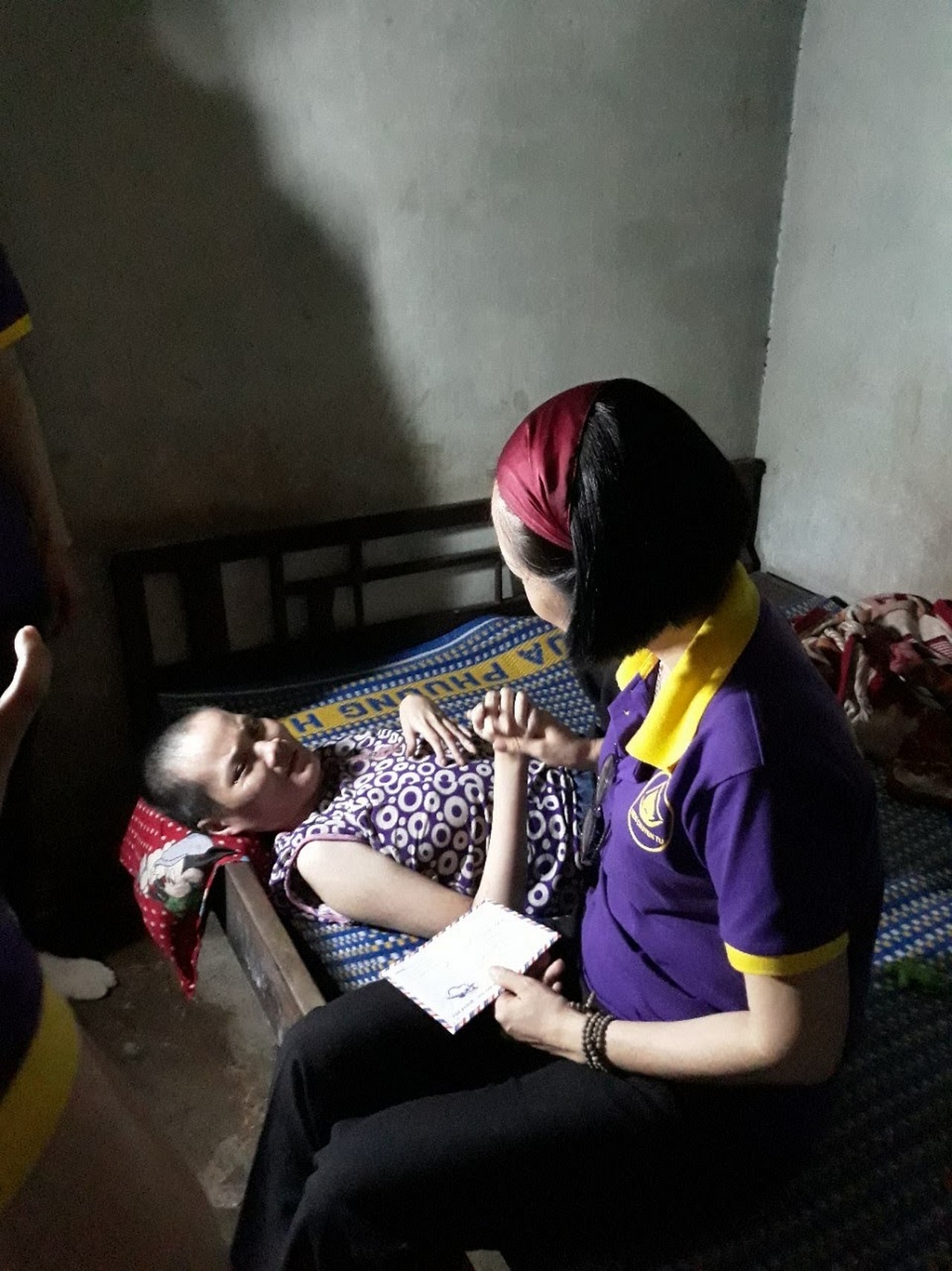Hai hộ được đoàn đến thăm có hoàn cảnh hết sức khó khăn. Trường hợp 1: Gia đình có hai người con tật bẩm sinh, người vợ tai biến nằm liệt giường 10 năm vừa qua đời 15 ngày trước. Giờ còn lại mình người chồng bệnh cột sống. Cả ba người giờ chỉ nương nhờ vào trợ cấp của địa phương. Trường hợp 2: Hai ông bà đã qua tuổi 75, nhưng phải chăm sóc cô con gái 42 tuổi bại liệt bẩm sinh do ảnh hưởng của chất độc da cam với tri thức trẻ thơ, vẻ mặt ngờ nghệch. Bà ở nhà trông con. Ông vá lốp xe đạp kiếm sống qua ngày.