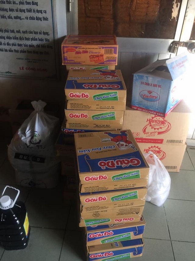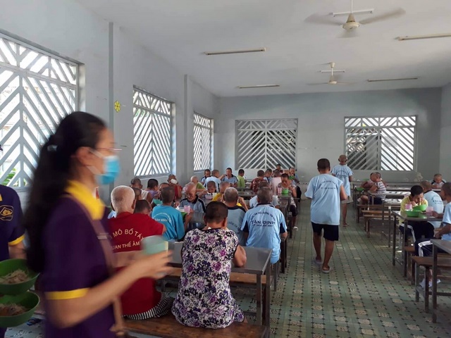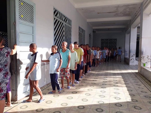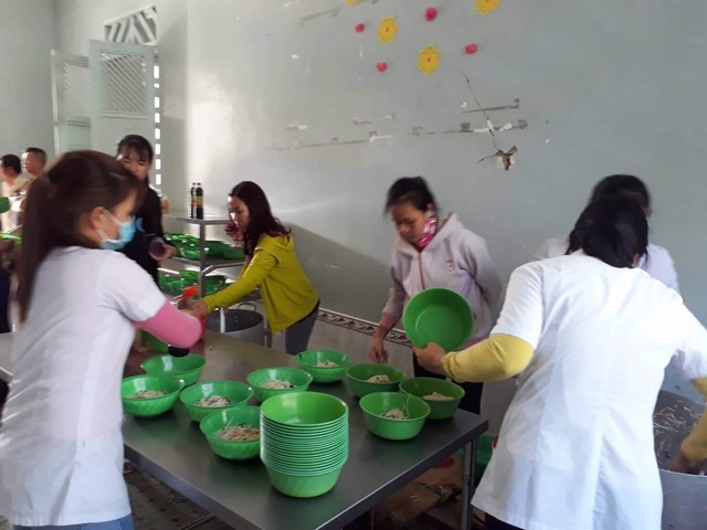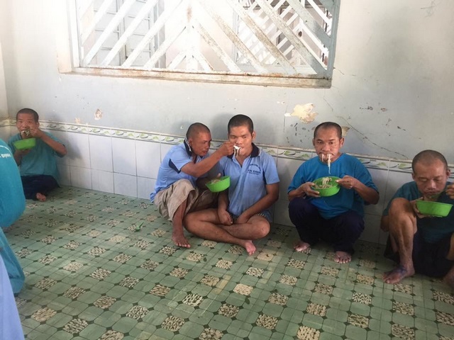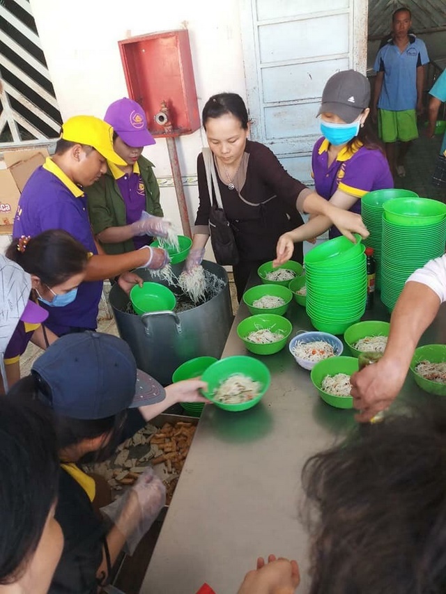 Đến Trung tâm lần này, đoàn đã nấu món bún gạo xào kèm theo bánh, kẹo, nước uống hạt é cho 1.500 bệnh nhân, ngoài ra còn có nhu yếu phẩm như: gạo, mì gói, dầu ăn, nước tương, muối…