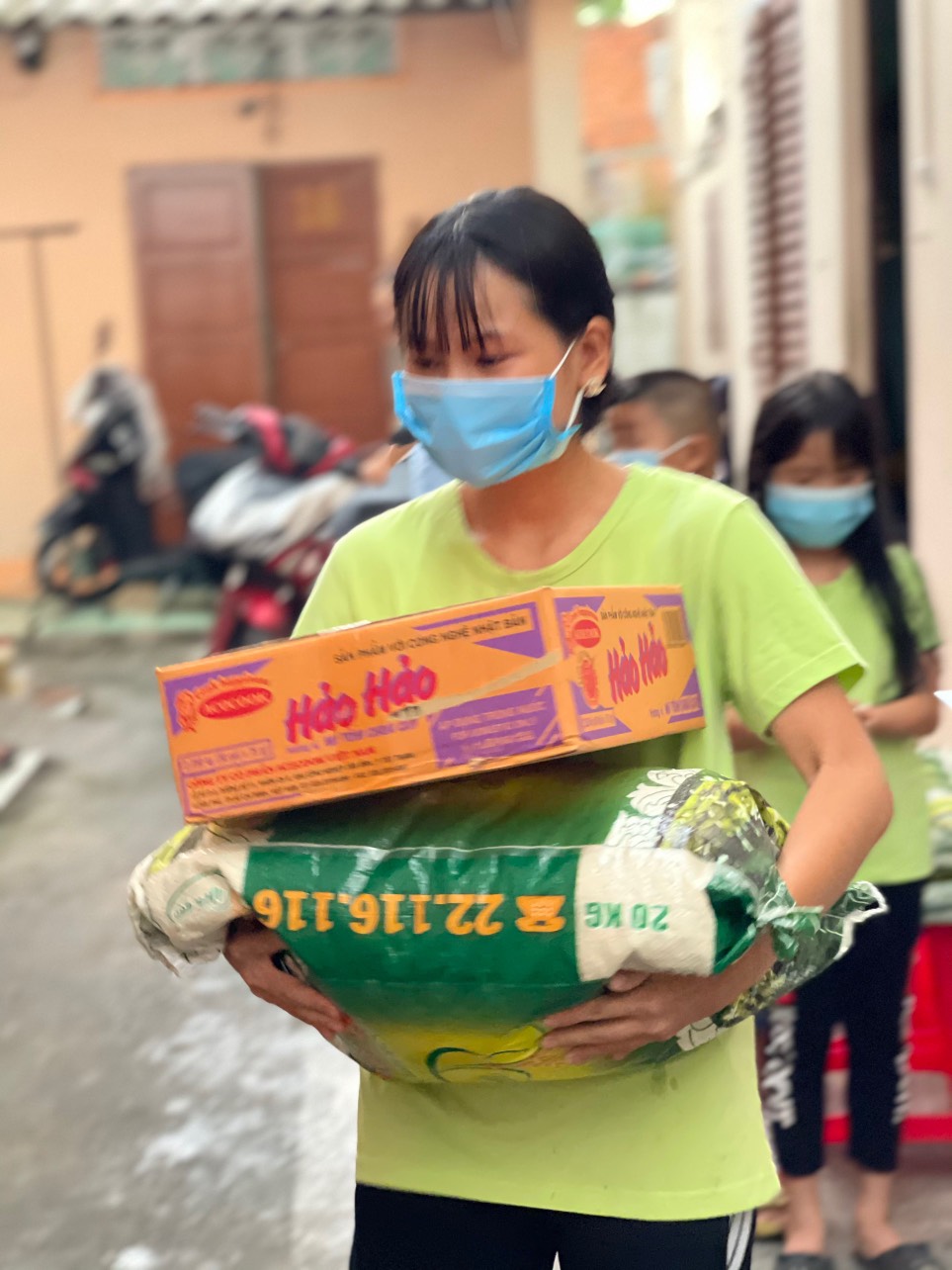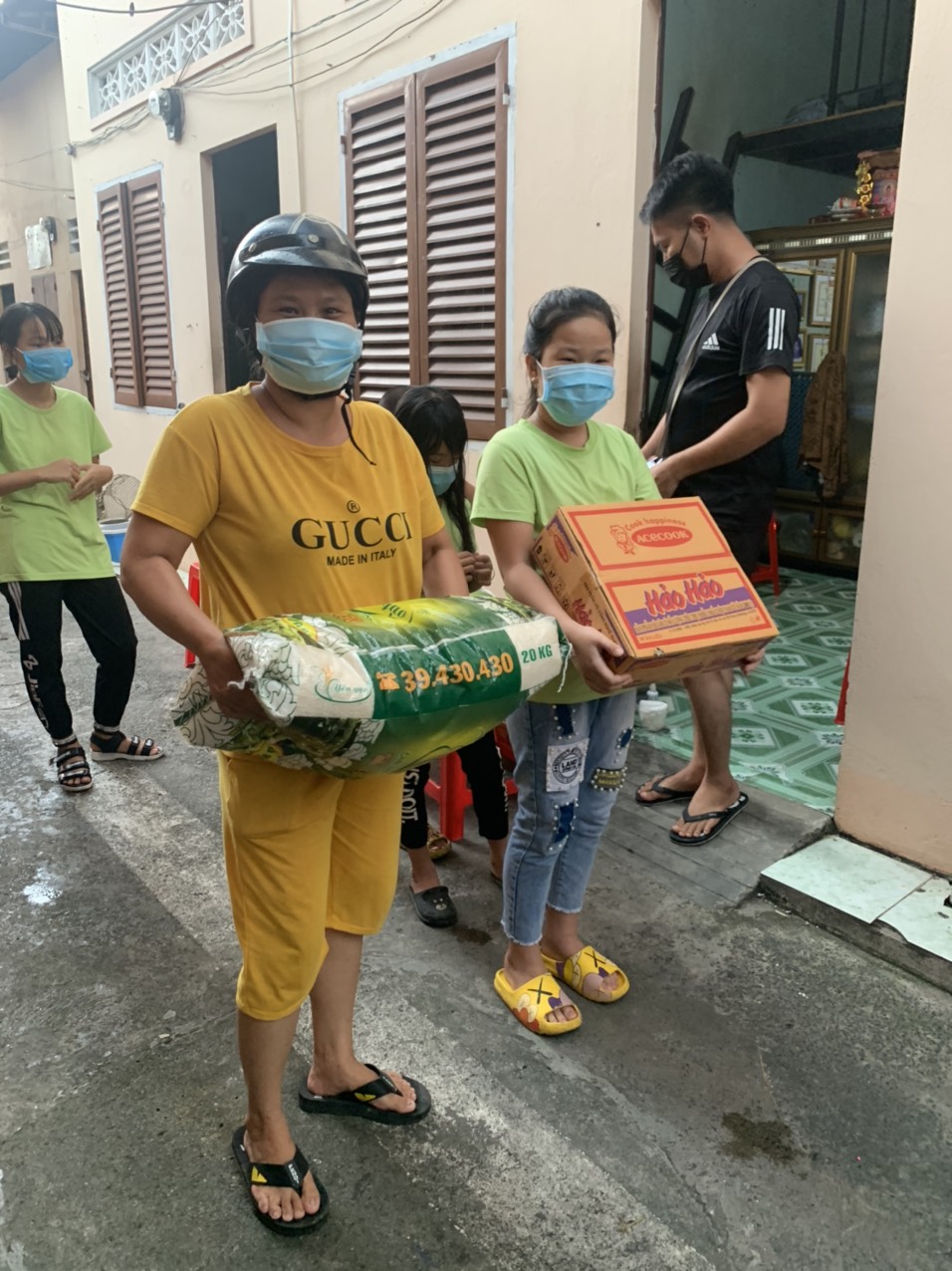 Ngày 6/6/2021 theo dự kiến, buổi chiều Diệu Hoá và cô Ba sẽ hỗ trợ gạo cho lớp học tình thương vì nghe gia đình các cháu bị thất nghiệp do dịch bệnh. Đoàn đã thống nhất chia ra từng đợt. Hôm nay đợt 1, mỗi em nhận 20 ký gạo và 1 thùng mì gói. Nhưng lại đủ nhân duyên, đoàn được sự chia sẻ của cô Thu Nga (Ngọc Trí) đang công tác ở đài truyền hình VTV2 chuyện mục “Chất lượng cuộc sống”, cùng các anh chị em ở Đài ủng hộ các cháu số quà trên.
