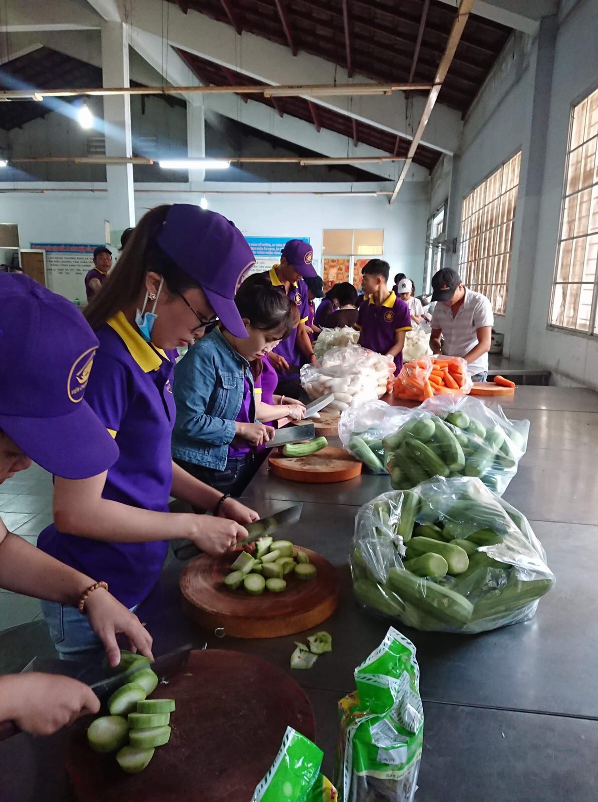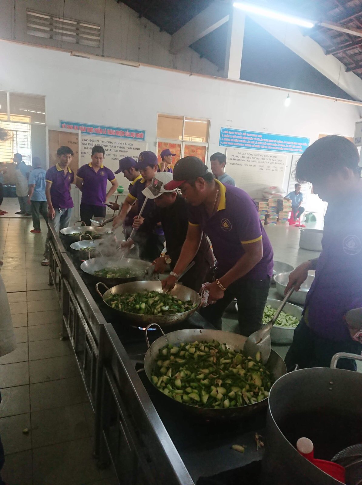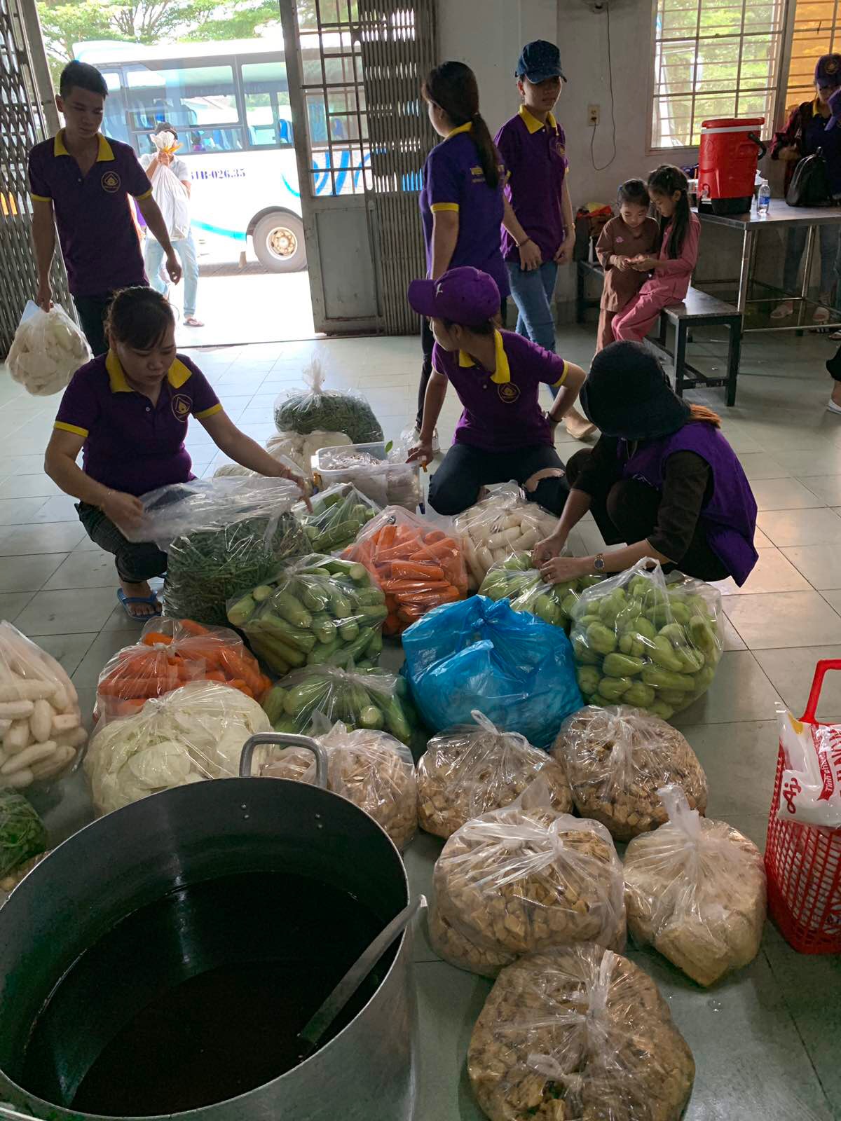 Hôm nay ngày 29/9/2019, Viện Chuyên Tu Phân BTN Ánh đạo Bình Dương đã đến thăm Trung tâm điều dưỡng tâm thần Tân Định và tặng 1250 suất cơm chay, 20 thùng mì gói, 1 thùng xà bông, dao, thớt… Đúng 13 giờ 00 đoàn đến nơi, mọi người tíu tít nhanh tay, nhanh chân chuyền những vật phẩm vô nhà bếp, xúm xít lại lo cắt gọt. Nhanh như chóp những bếp lửa khè lên, nồi canh bắp cải ngọt lim đã hoàn thành, ngò, tiêu thơm nứt mũi. Các em tình nguyện xung phong xào món thập cẩm, rất hoan hỷ.