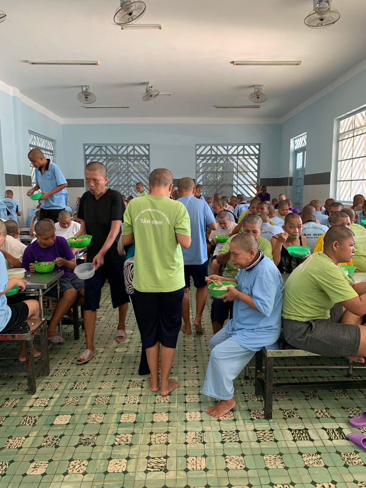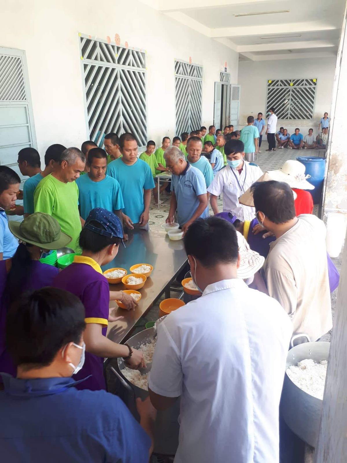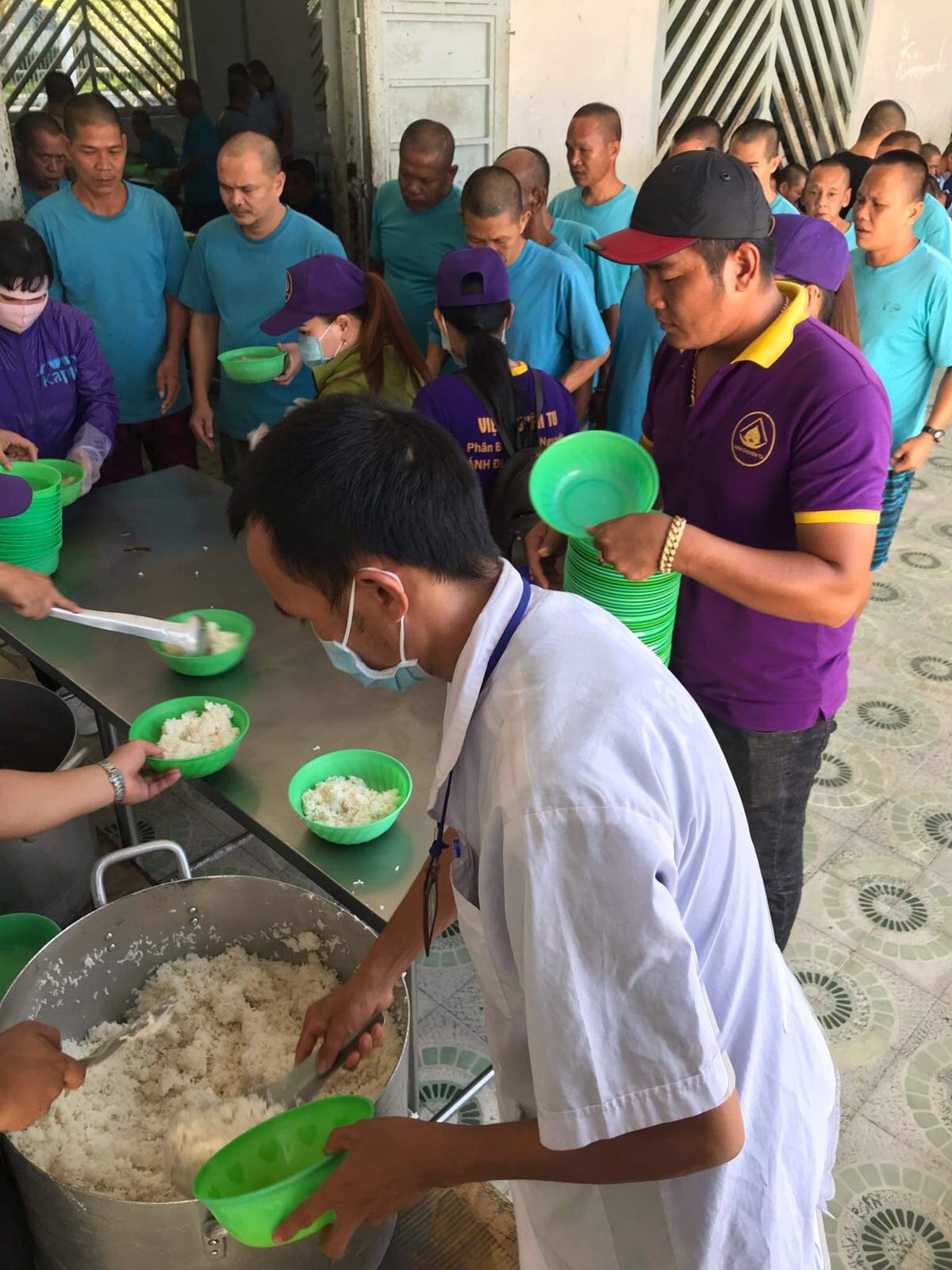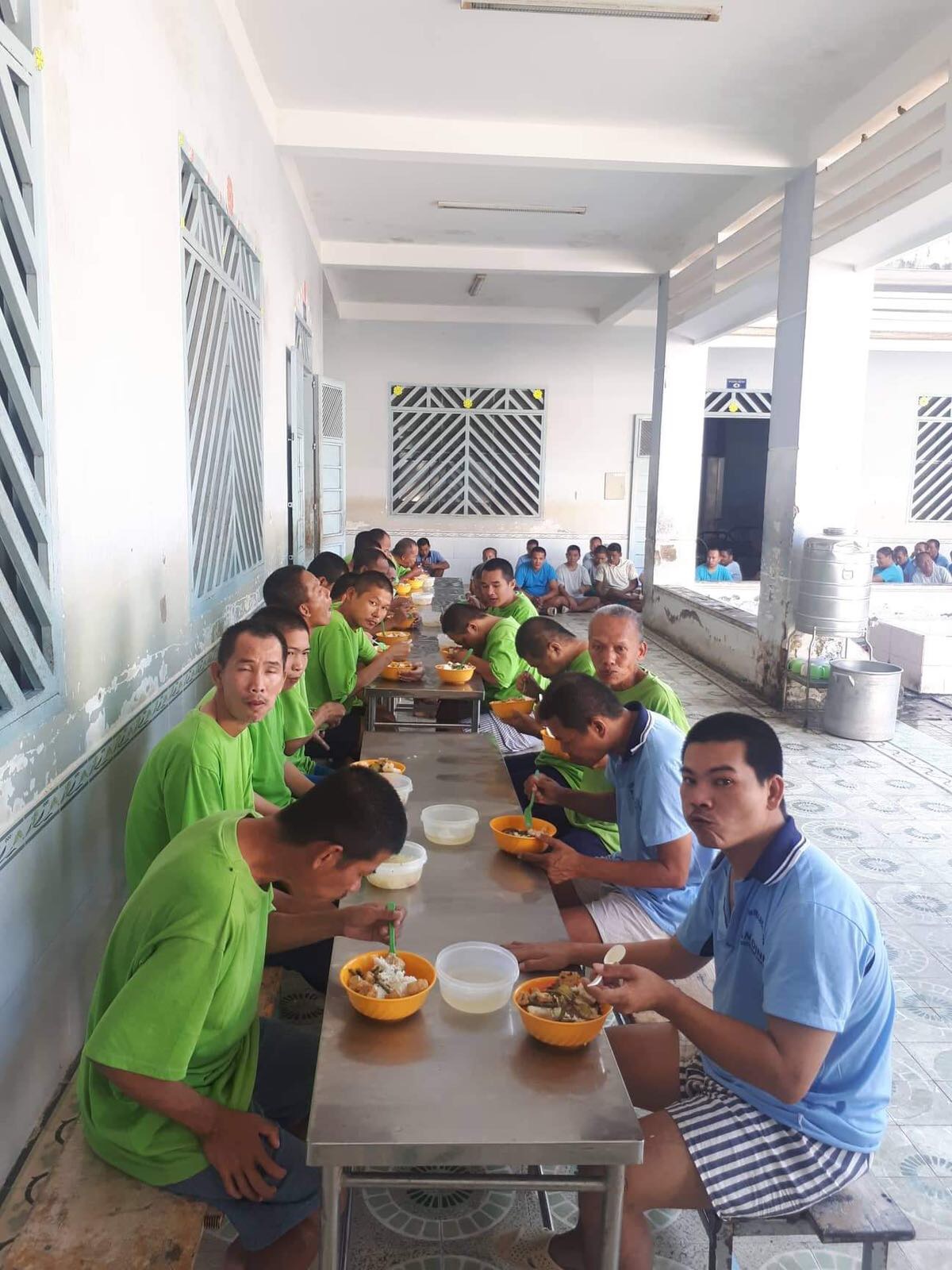 Lúc 15 giờ 00, các món thức ăn đã chín đoàn chia thức ăn ra 9 khoa, lần lượt 5 vị đi 1 khoa. Thật thương làm sao đối với những con người nữa tĩnh nữa mê, các bệnh nhân xin chuỗi đeo tay và còn hỏi chừng nào đoàn qua nữa, nhớ cho nước ngọt uống nhen, thèm nước ngọt qúa… Đến chiều đoàn chụp hình lưu niệm, sau đó lên xe về nhưng trong lòng ai cũng nhớ đến những con người ở đây, họ không biết kiểm soát. Trong tâm các thành viên trong đoàn ai cũng thầm hẹn sẽ tặng các bệnh nhân các món bánh canh, uống nước ngọt… để mang hơi ấm tình người đến các bệnh nhân nơi đây.