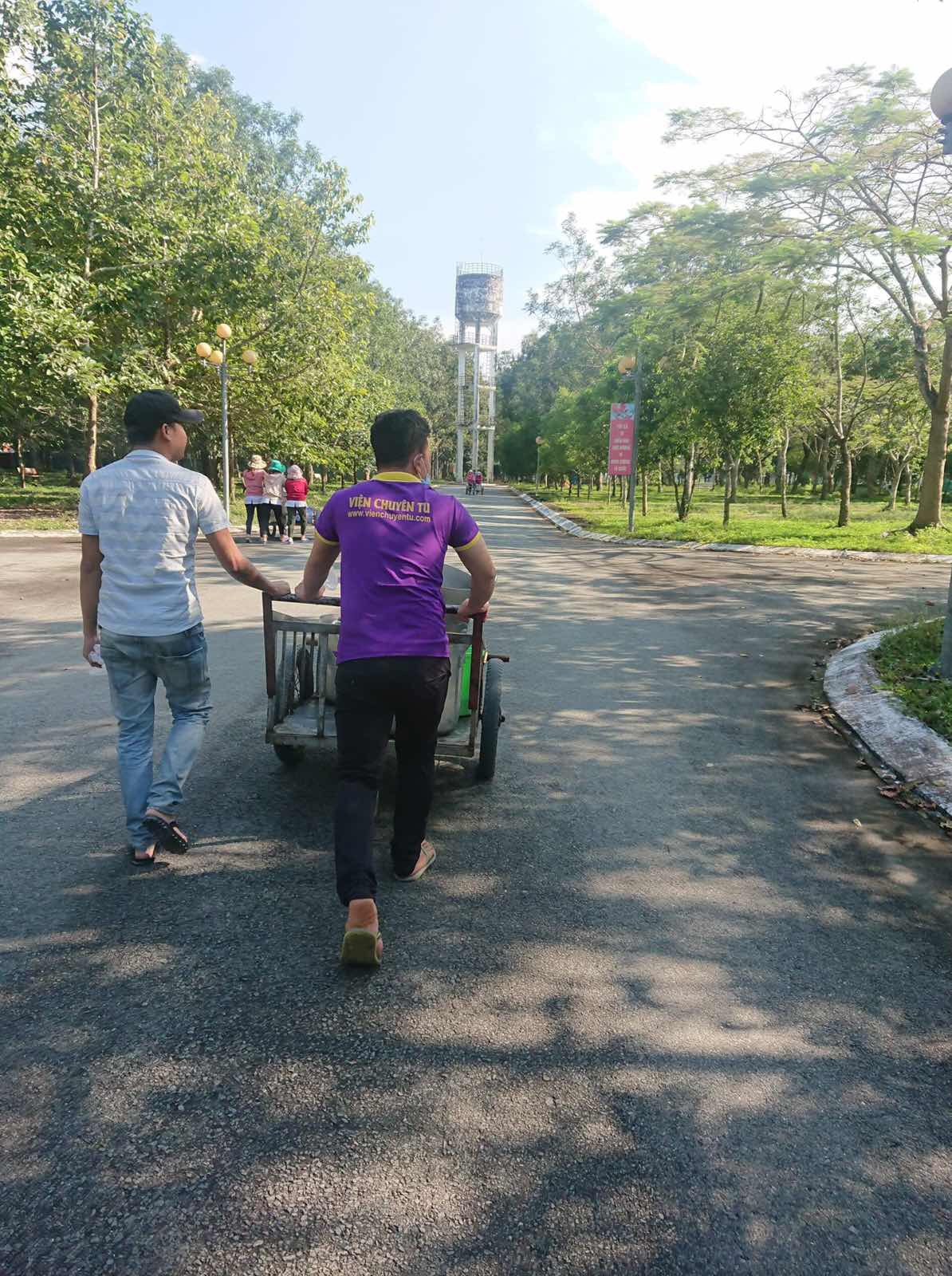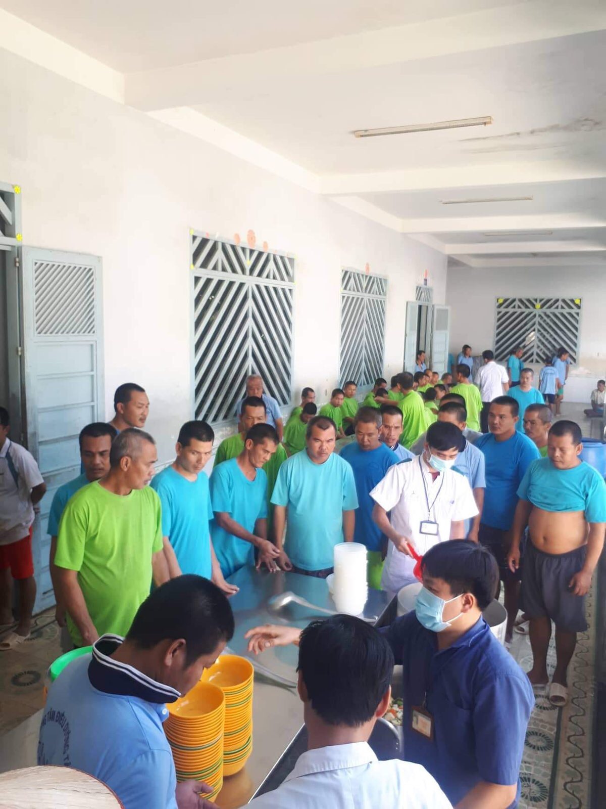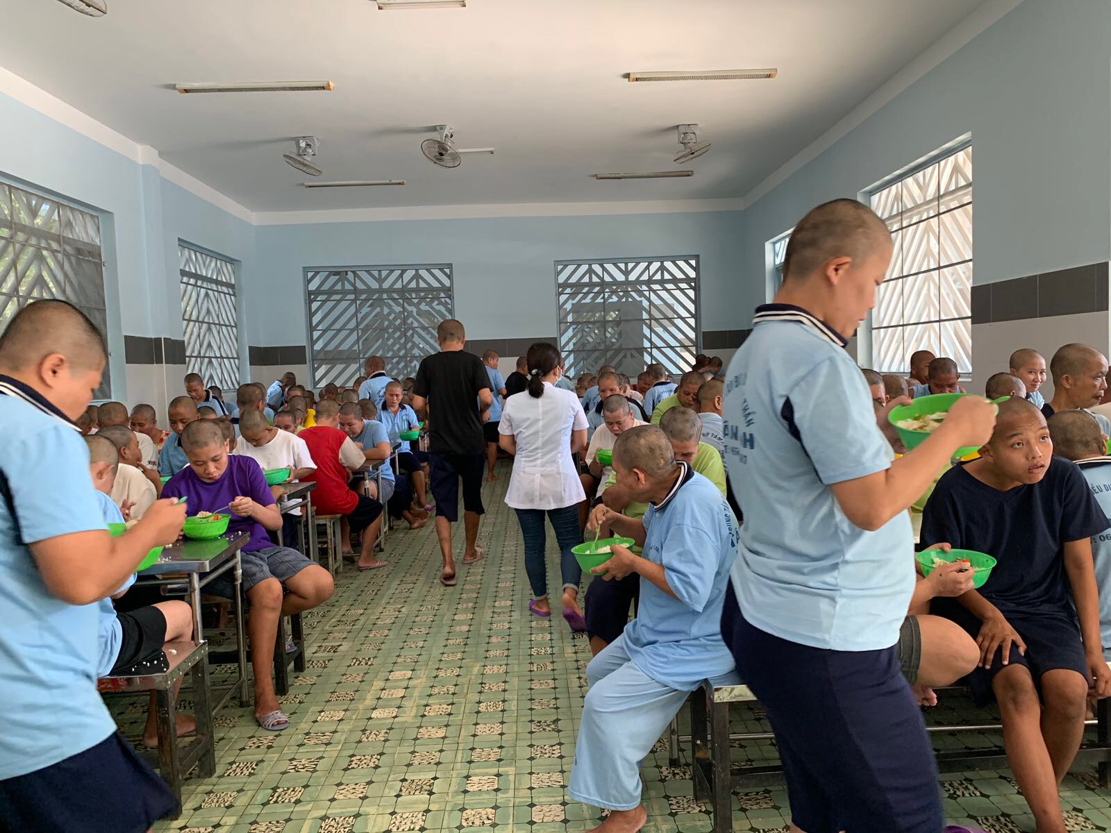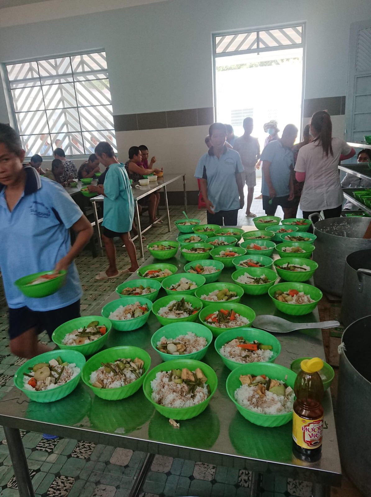 Lúc 15 giờ 00, các món thức ăn đã chín đoàn chia thức ăn ra 9 khoa, lần lượt 5 vị đi 1 khoa. Thật thương làm sao đối với những con người nữa tĩnh nữa mê, các bệnh nhân xin chuỗi đeo tay và còn hỏi chừng nào đoàn qua nữa, nhớ cho nước ngọt uống nhen, thèm nước ngọt qúa… Đến chiều đoàn chụp hình lưu niệm, sau đó lên xe về nhưng trong lòng ai cũng nhớ đến những con người ở đây, họ không biết kiểm soát. Trong tâm các thành viên trong đoàn ai cũng thầm hẹn sẽ tặng các bệnh nhân các món bánh canh, uống nước ngọt… để mang hơi ấm tình người đến các bệnh nhân nơi đây.