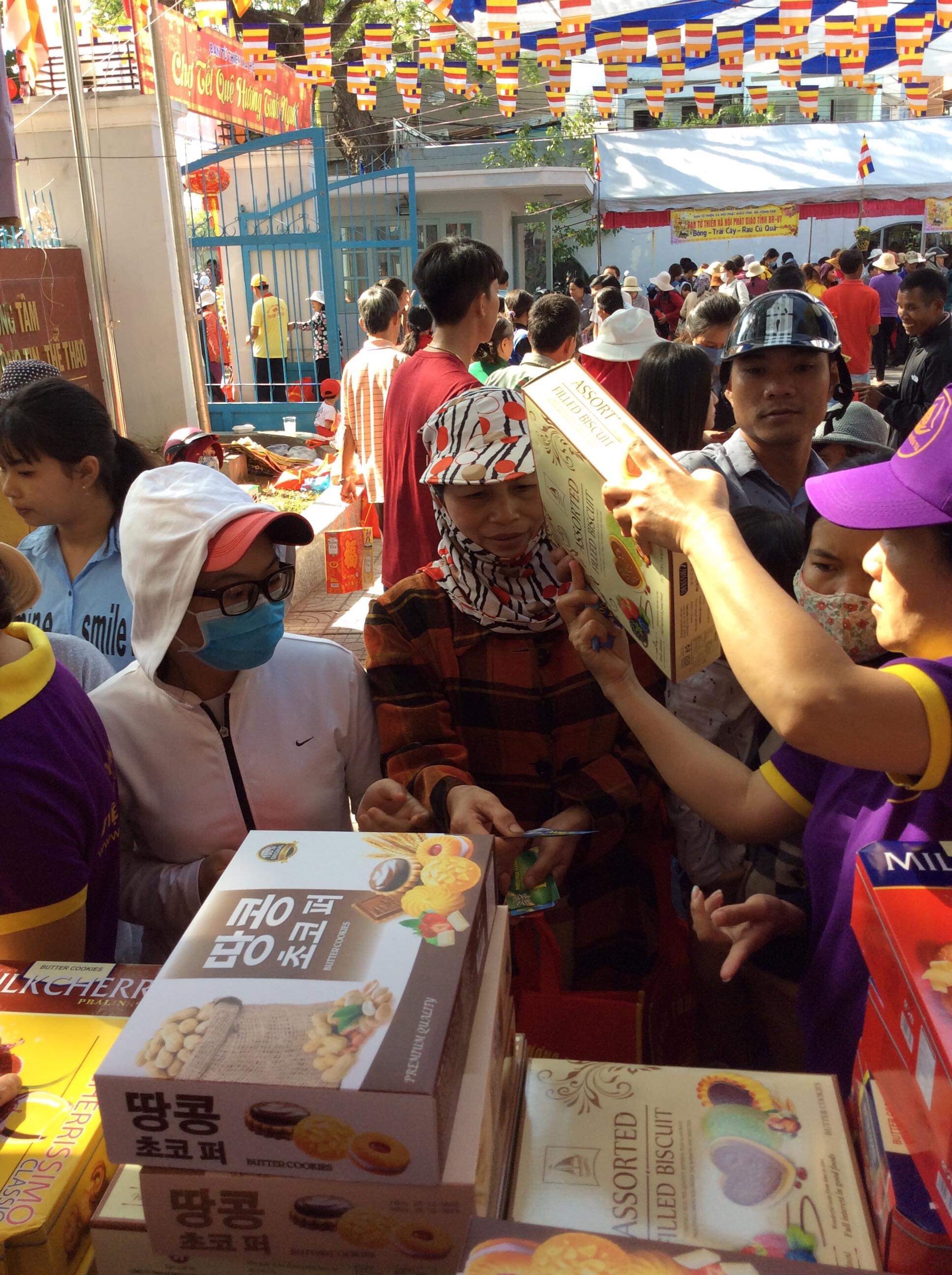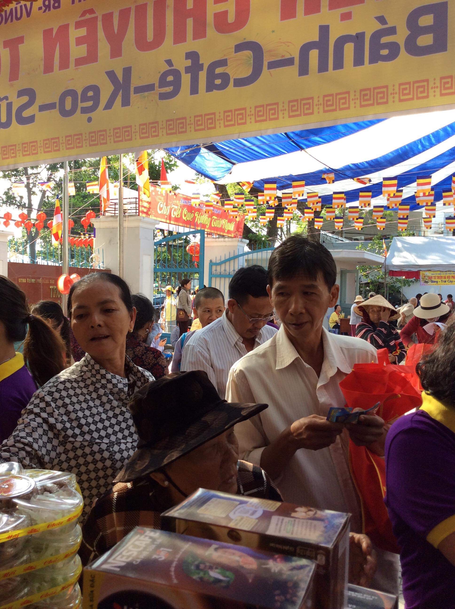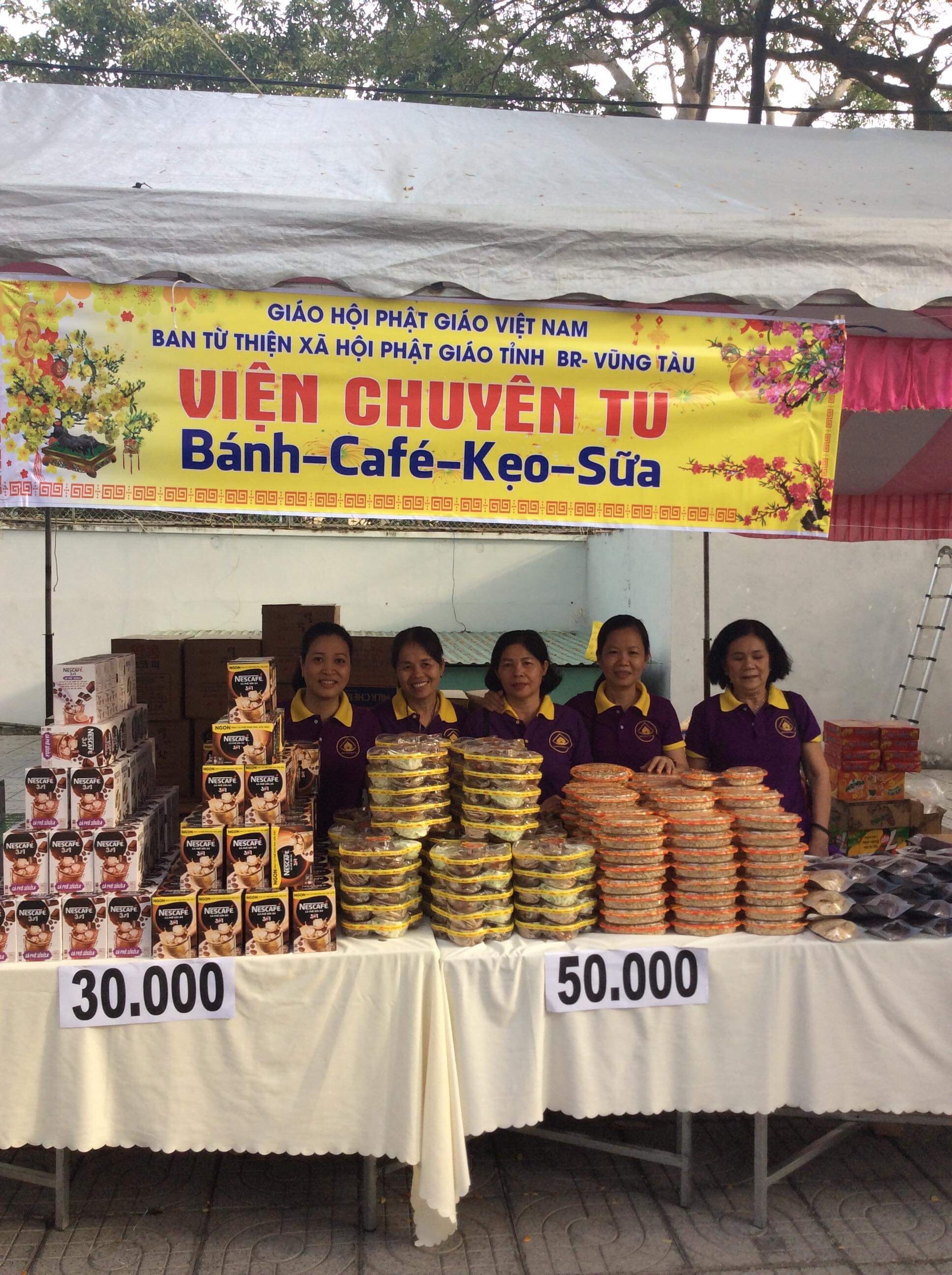 Được sự cho phép của Sư phụ đạo hiệu TT. Thích Thiện Thuận, trụ trì Viện Chuyên Tu, cố vấn Ban Thiện nguyện Ánh đạo. Phân BTN Ánh đạo Vũng Tàu đã vận động ủng hộ 100 suất quà trị giá 50 triệu đồng và tham gia bán gian hàng bánh kẹo tại phiên chợ.