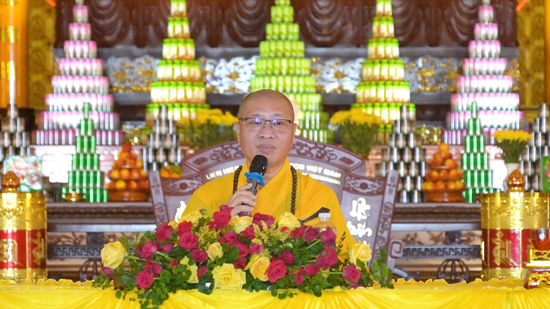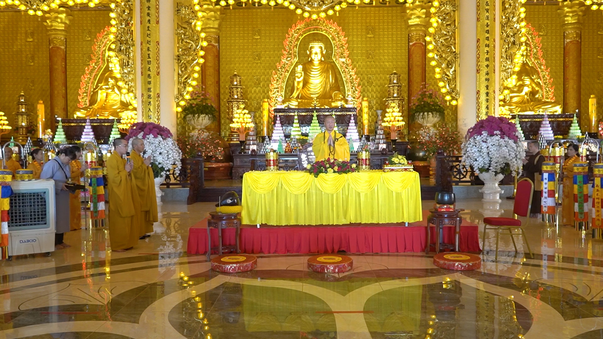 Trong không khí trang trọng nơi pháp tọa trước ngôi Tam bảo, Thượng tọa Giảng sư gửi lời thăm hỏi đến với tất cả đại chúng trong thâm tình tràn đầy Đạo vị. Đại chúng đồng cảm nhận năng lượng an lành tươi mát dưới bóng mây Từ của Thượng tọa.