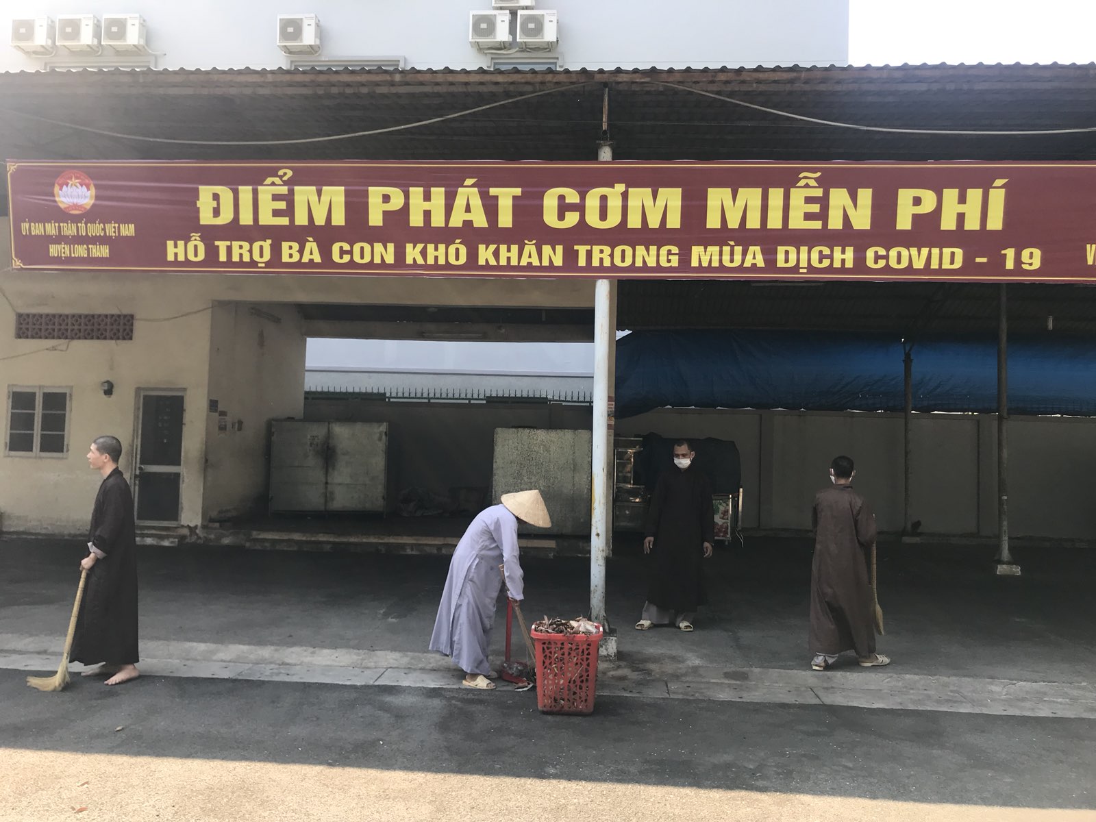 Sư phụ chỉ dạy, mỗi ngày phát cơm hai lần tại các địa điểm sau: Trước cổng Nhà thi đấu huyện Long Thành và Đài liệt sĩ ngã ba Phước Thiền (cạnh Thế giới mắt kính). Buổi sáng phát từ 10 giờ đến 12 giờ, buổi chiều phát từ 4 giờ đến 6 giờ. Hy vọng những phần cơm nghĩa tình này sẽ giúp cho bà con đang gặp khó khăn sẽ yên lòng cùng đất nước và nhân dân vượt qua gian khó mà chung tay chống dịch, nhất định không bỏ ai lại phía sau.