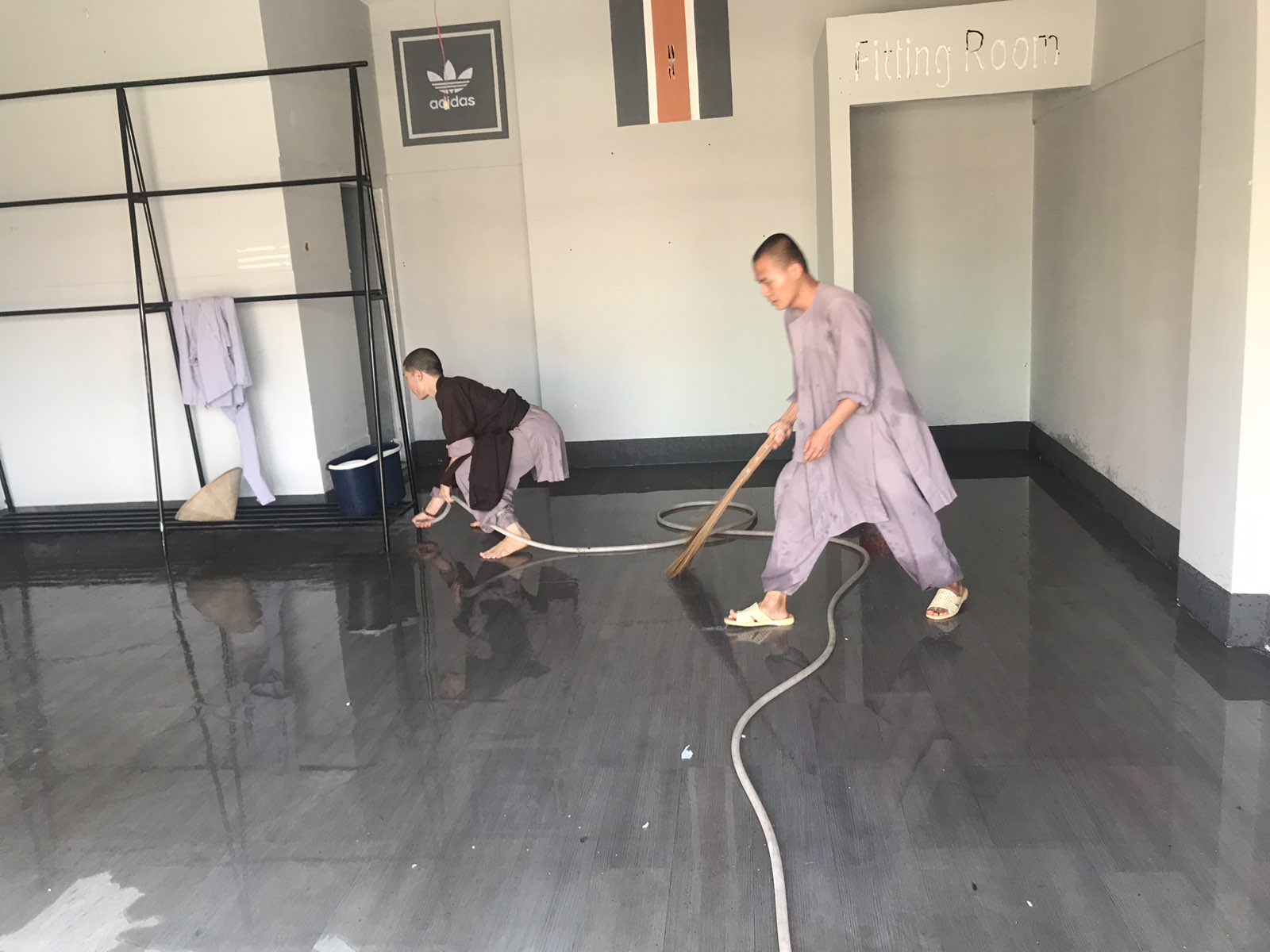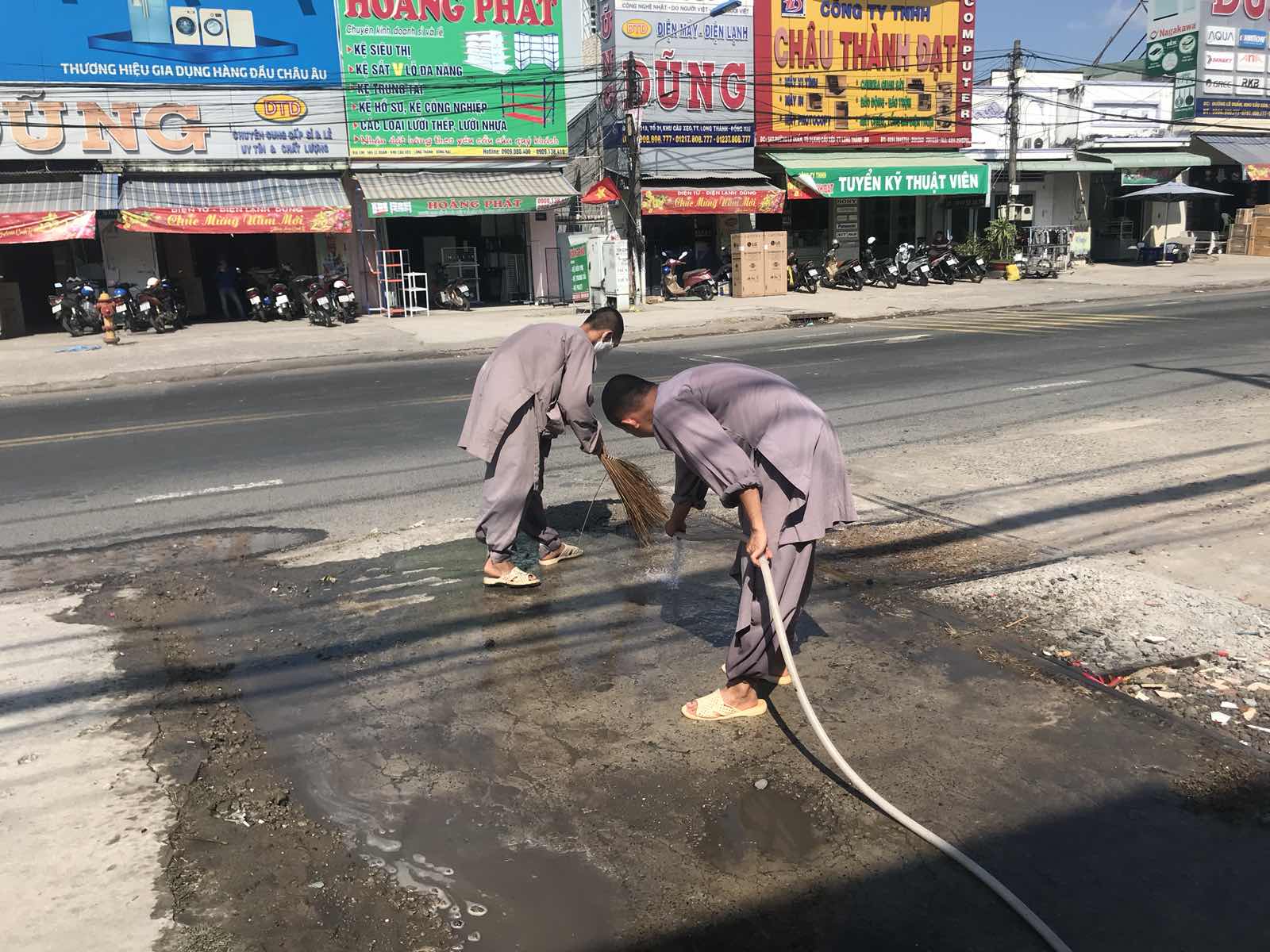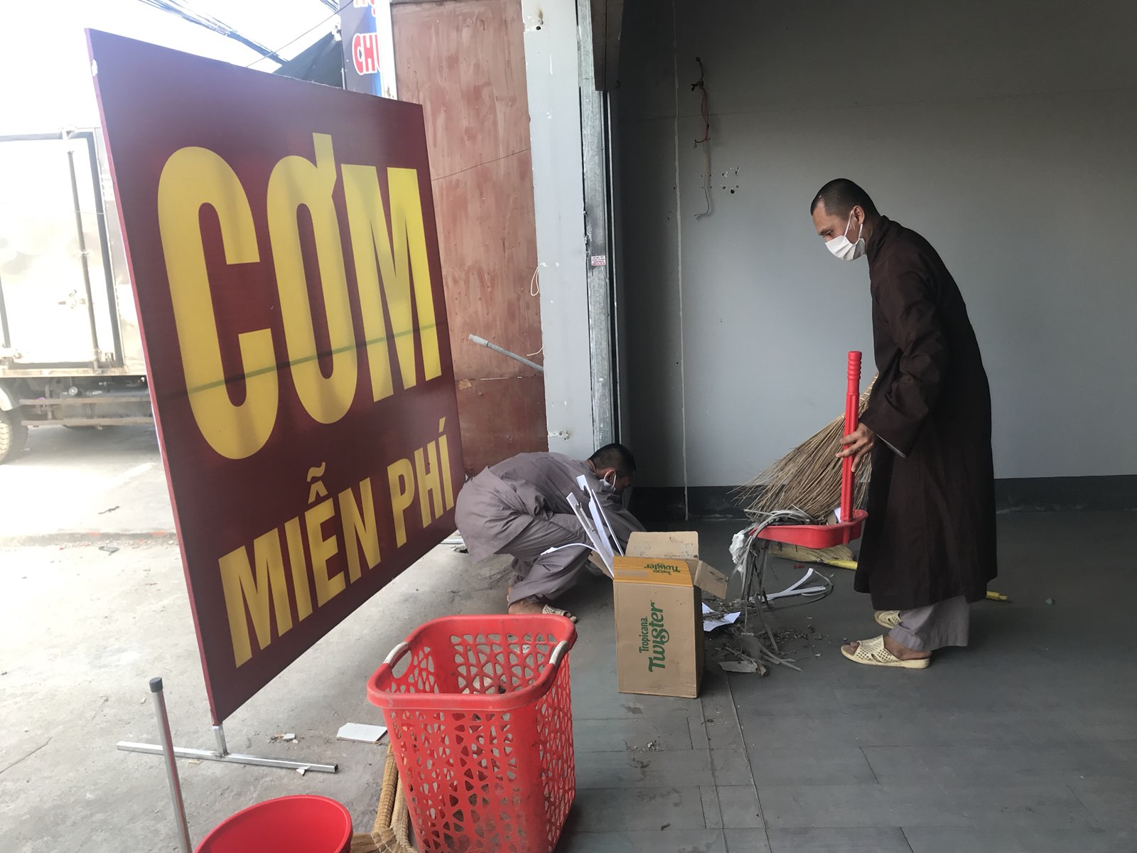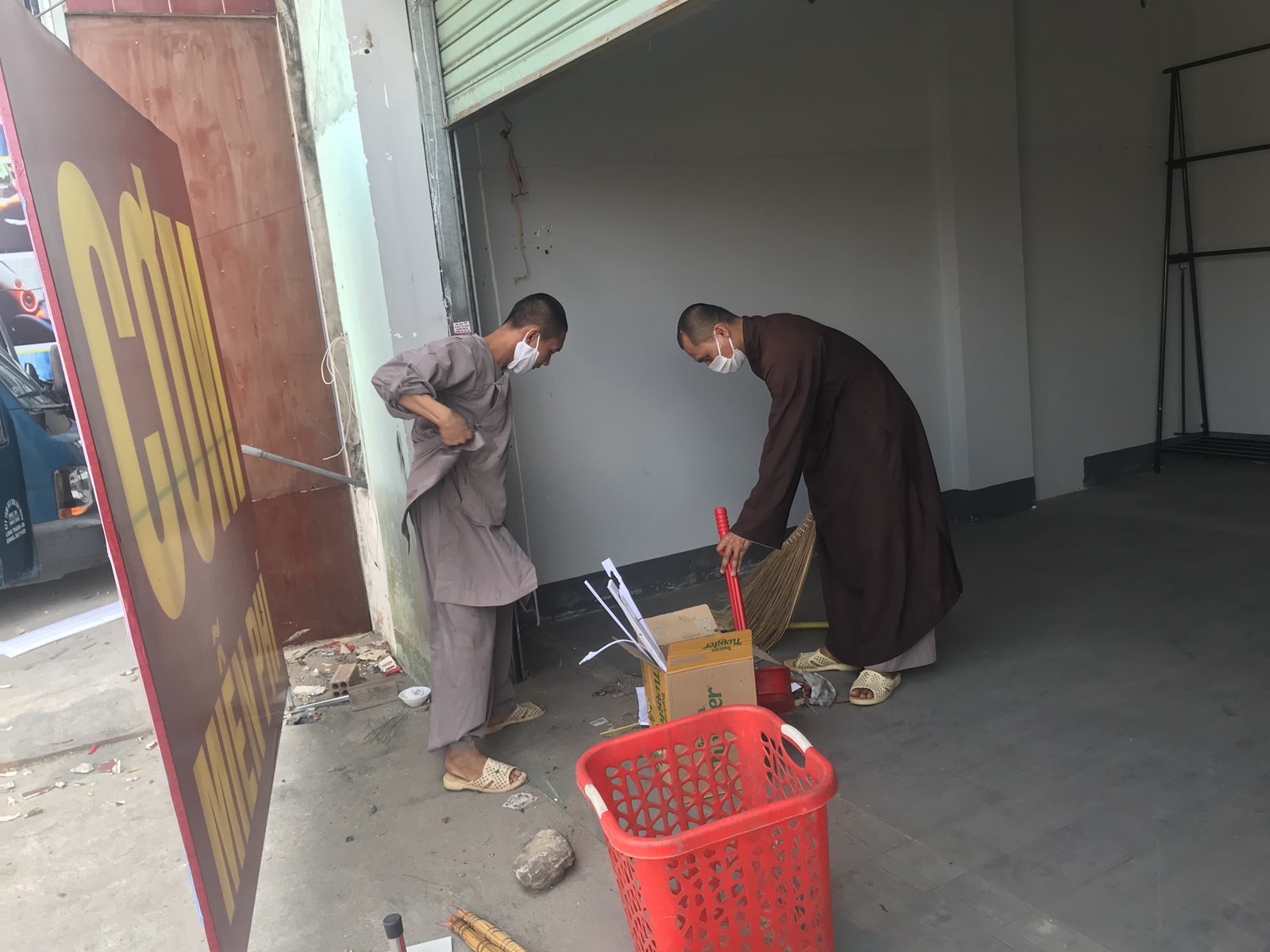 Xin giới thiệu một số hình ảnh được ghi nhận các thầy VCT dọn dẹp mặt bằng của hai điểm phát cơm: