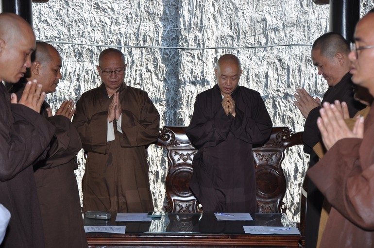 Thượng tọa Thích Trí Định và Thượng tọa Thích Chiếu Hiền chủ tọa buổi họp
