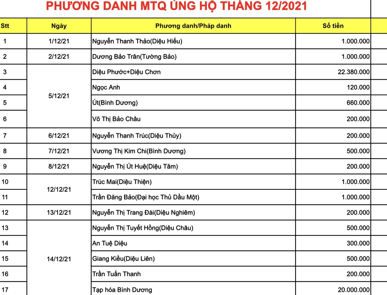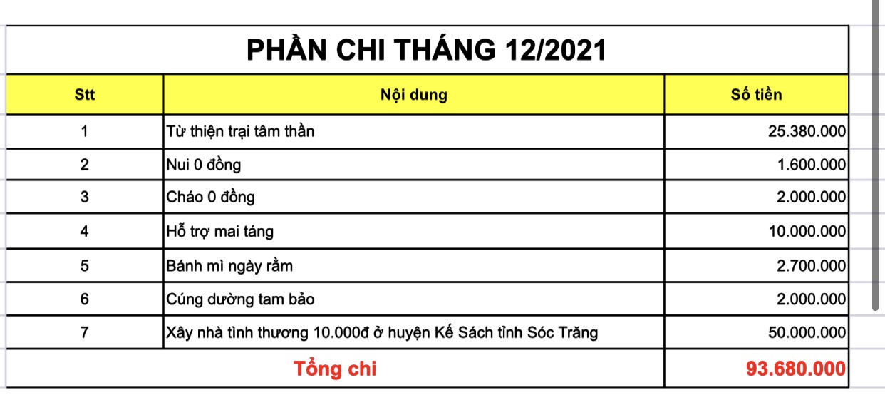 Trong tháng 12/2021 phân ban đã thực hiện những thiện nguyện sau: