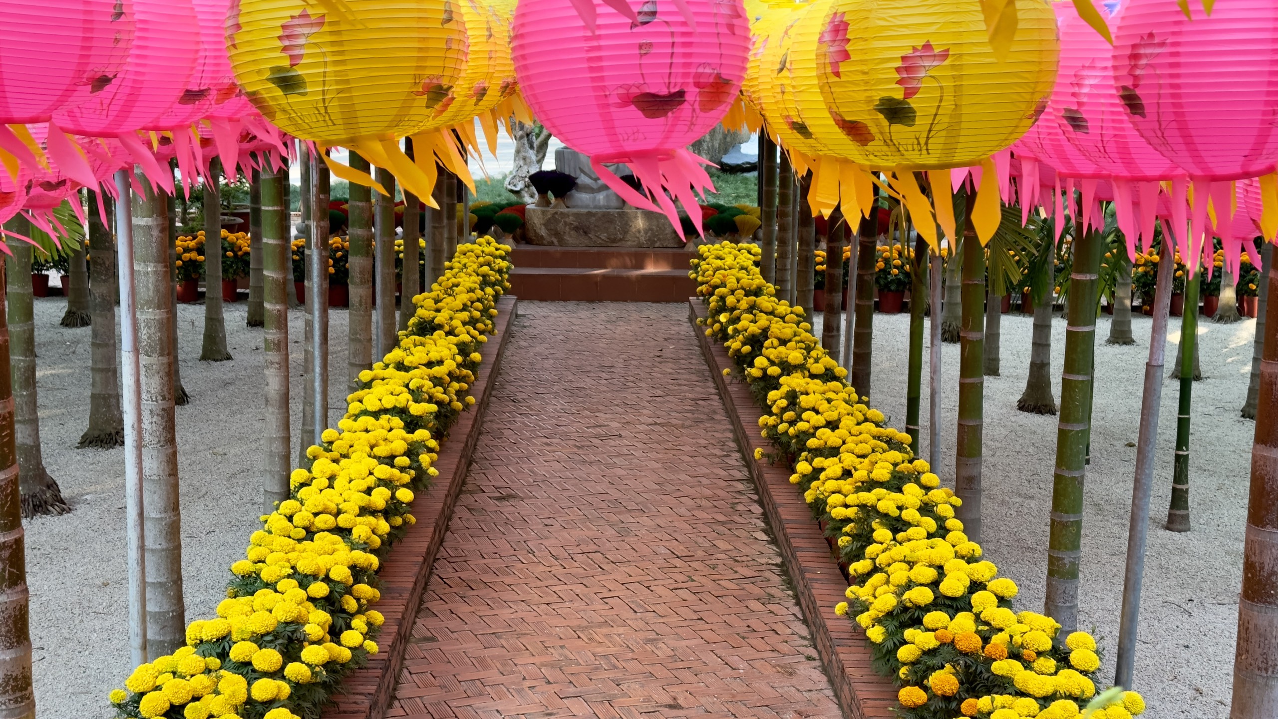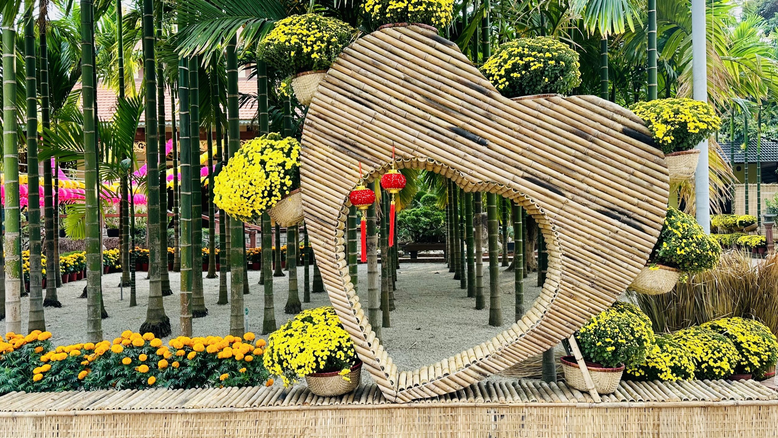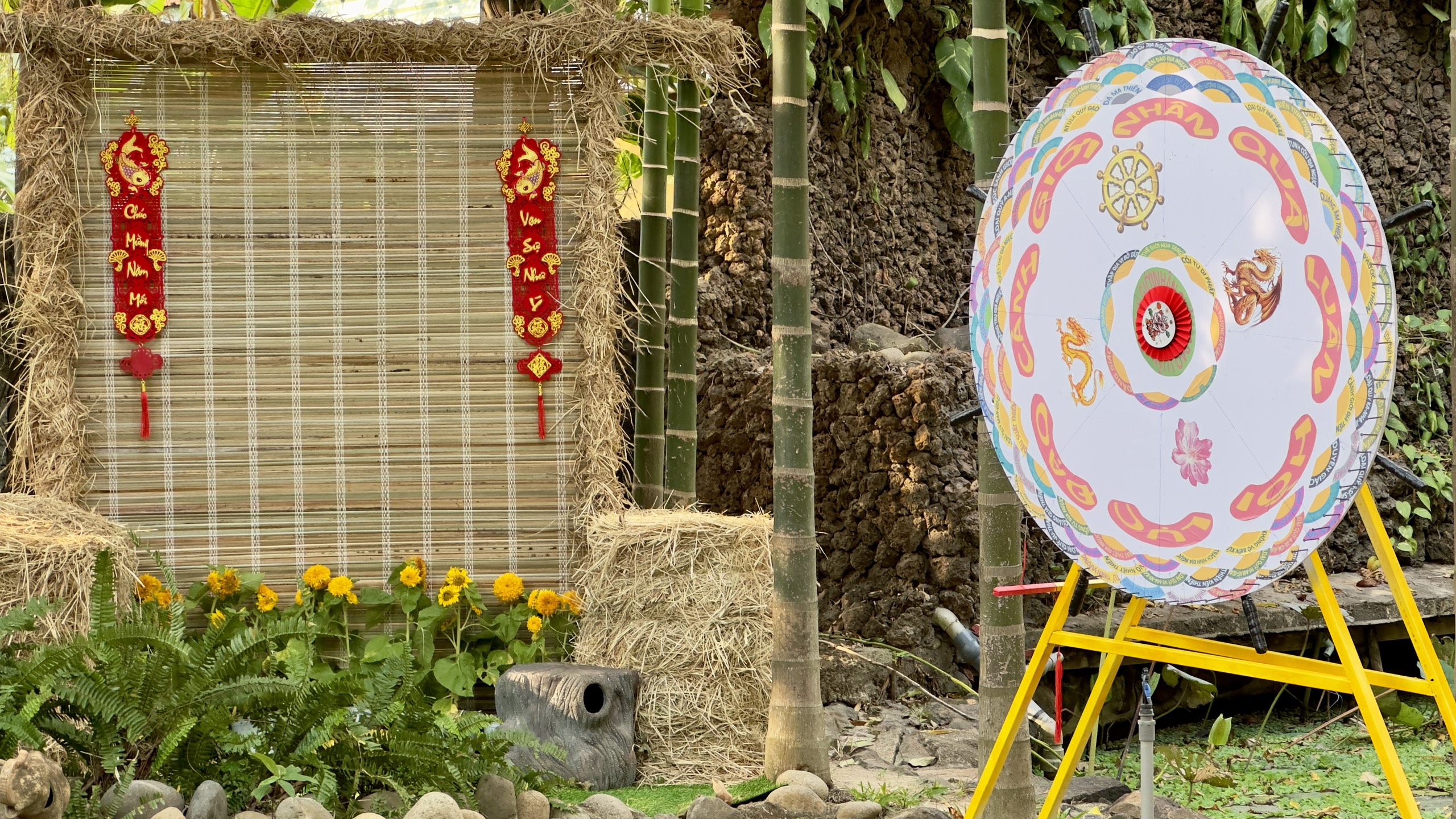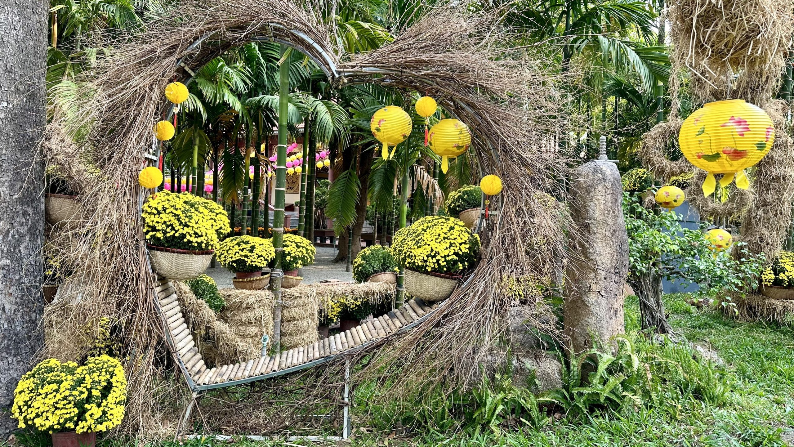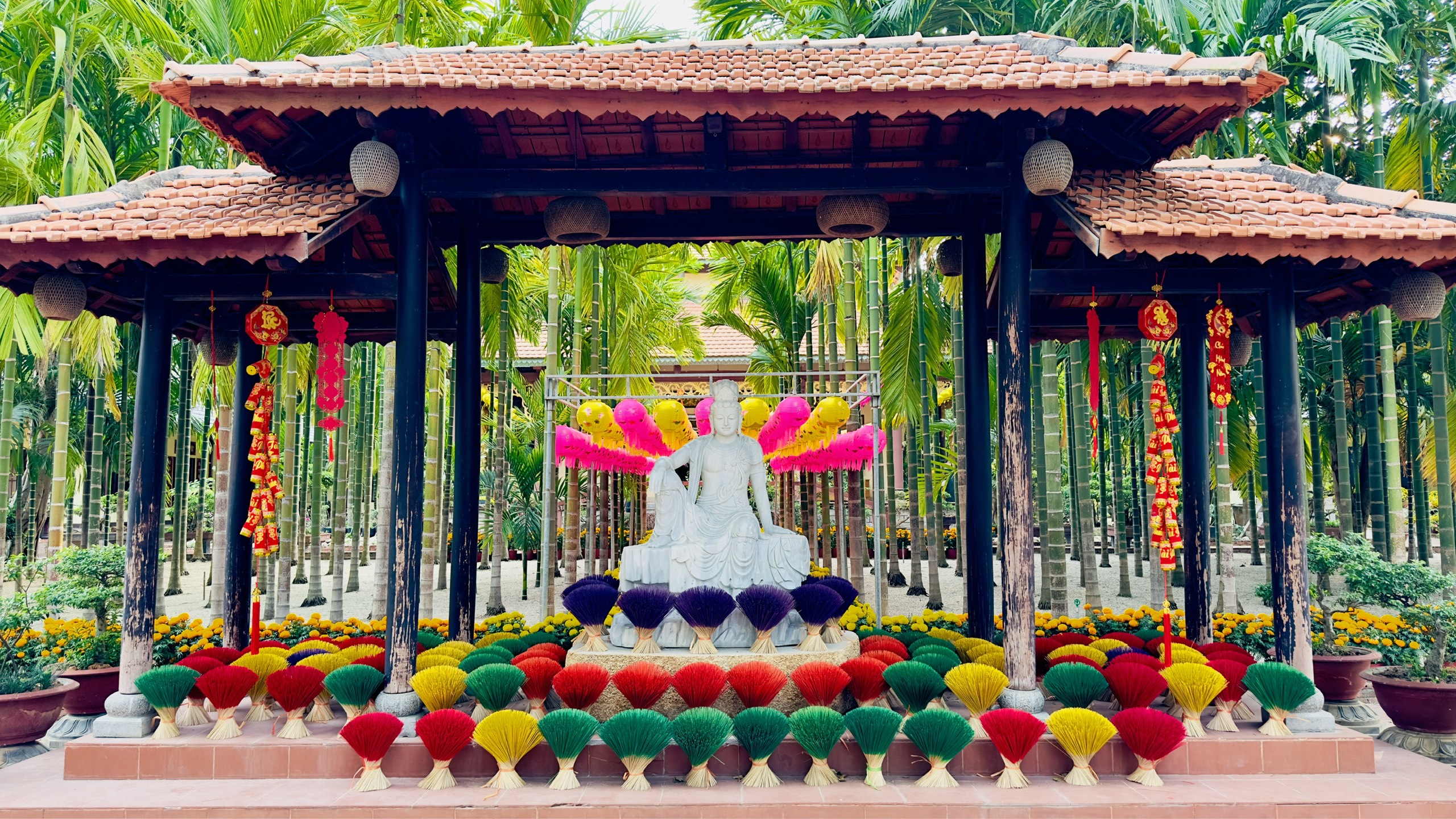 Tại Chùa Vạn Thiện, Thị xã Phú Mỹ, Bà Rịa – Vũng Tàu, chư Tăng và Phật tử cũng đã và đang trang hoàng, kiến tạo những không gian, những tiểu cảnh tràn ngập sắc xuân, và sẵn sàng để chào đón mọi người đến chùa dâng hương, lễ Phật, cầu an, vãn cảnh chùa ngày TẾT.