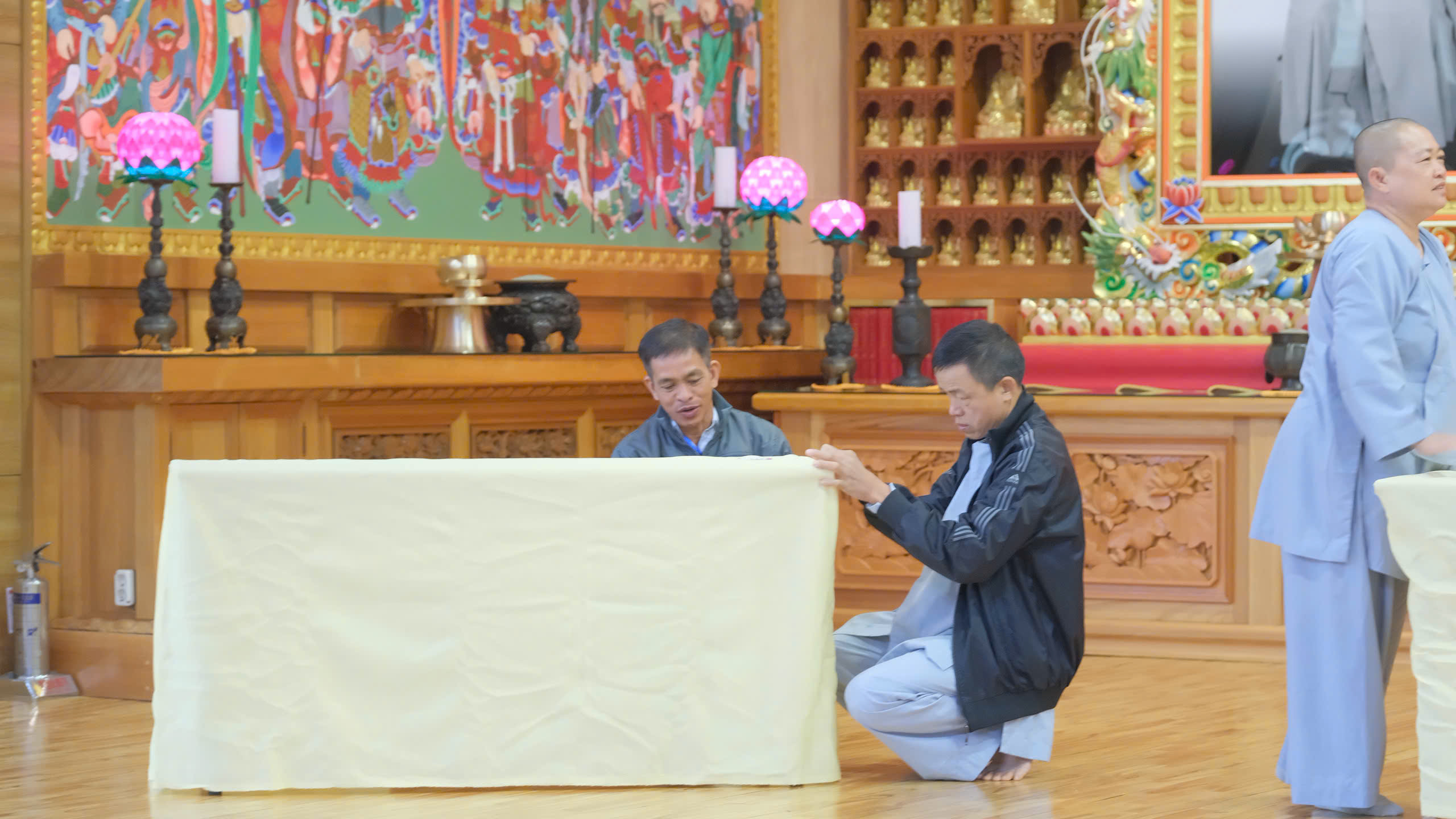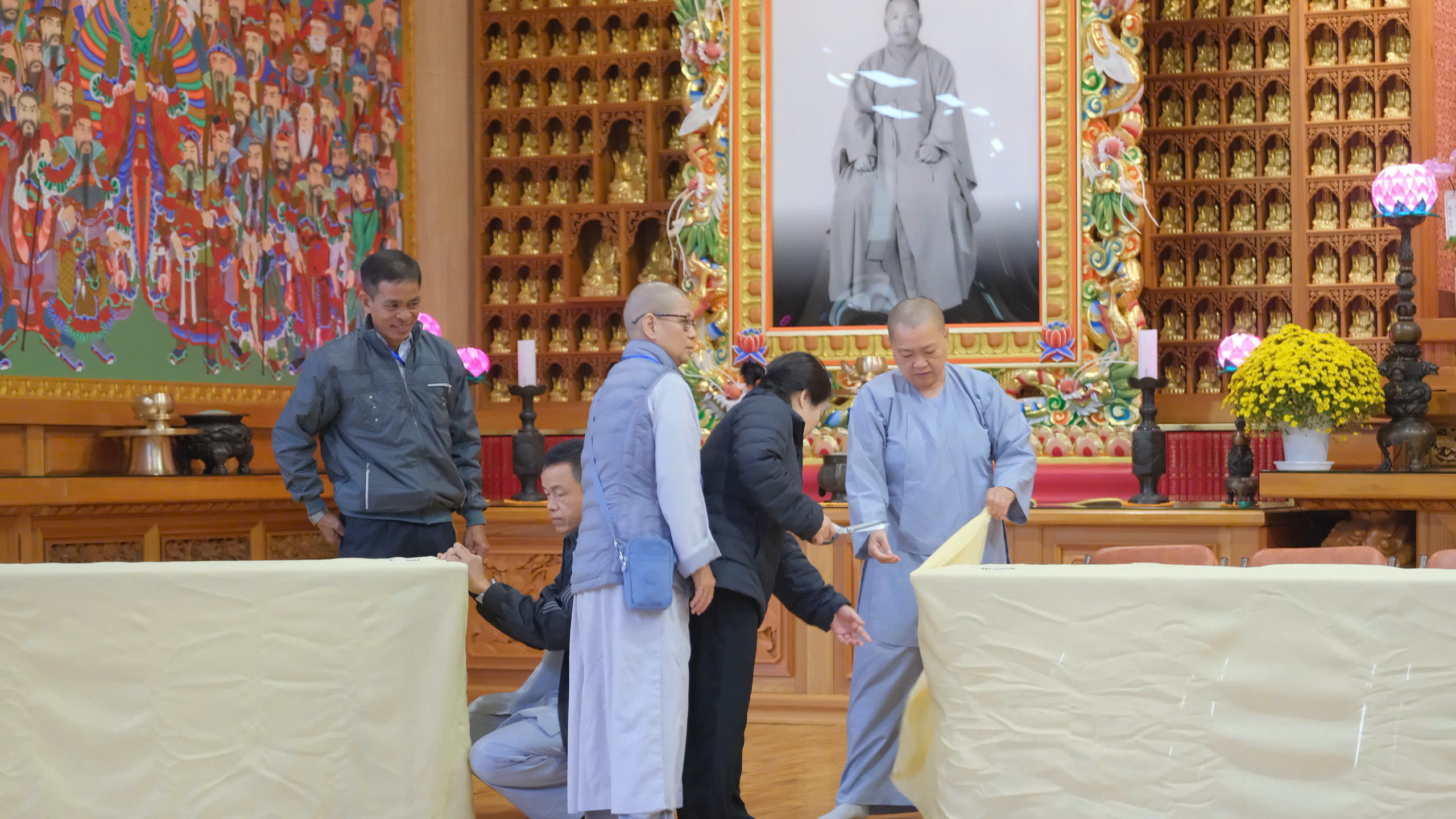 Vào lúc 07 giờ sáng ngày 07/11/2025, dưới sự chỉ đạo của Đại đức Thích Thiện Hưng, Trụ trì Chùa Tam Bảo, Trưởng BTC Khóa tu cùng các Trưởng tiểu ban, đoàn công tác đã trực tiếp kiểm tra và rà soát toàn bộ công tác chuẩn bị. Các tiểu ban lần lượt báo cáo tiến độ, rà soát chi tiết từng hạng mục, đồng thời thống nhất hoàn thiện các phần việc theo đúng kế hoạch mà Ban Tổ chức đề ra.