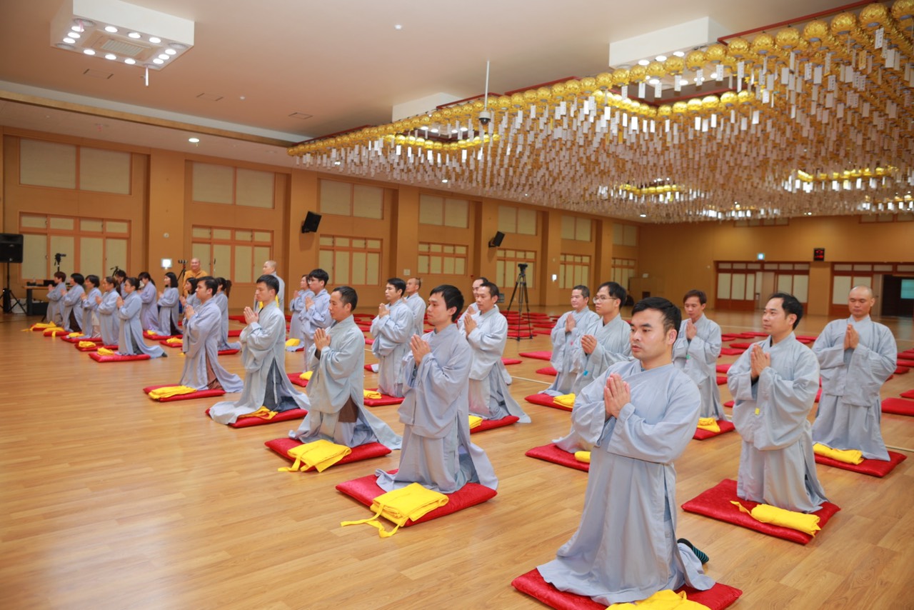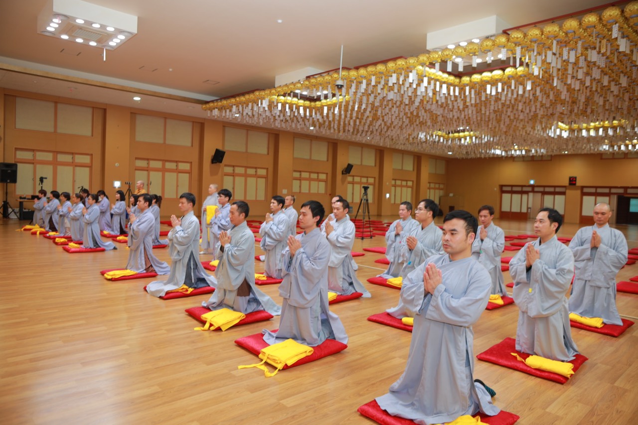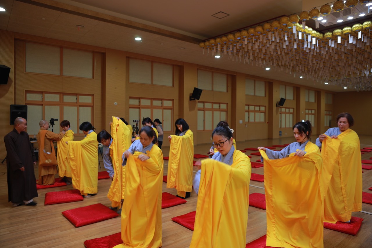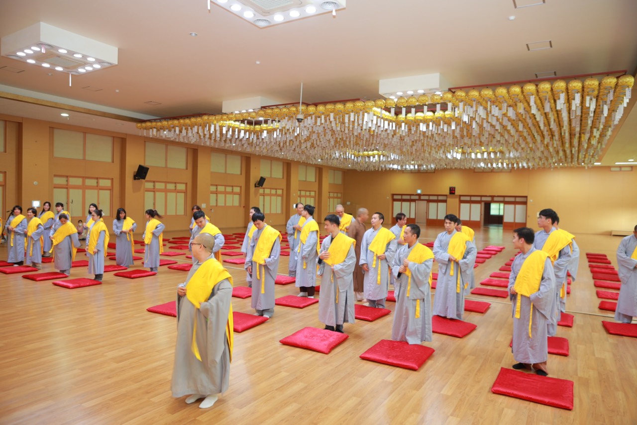 Vào lúc 15h30 phút, với lòng khát ngưỡng, các hành giả Xuất gia gieo duyên trong khóa tu học Phật pháp lần thứ 13 tại Hàn Quốc. Các giới tử đã học thuộc các bài kệ đắp y cũng như kệ lọc nước, dưới sự khảo hạch của chư Tôn đức. Song song đó, các Giới tử tỉnh giác, thực hành các nguyên tắc sống của một người xuất trần thượng sĩ. Quý Thầy Cô Quản giới tử, Thầy Điển lễ tận tình hướng dẫn và trả lời các già nạn trước khi thọ giới, cách đắp y…