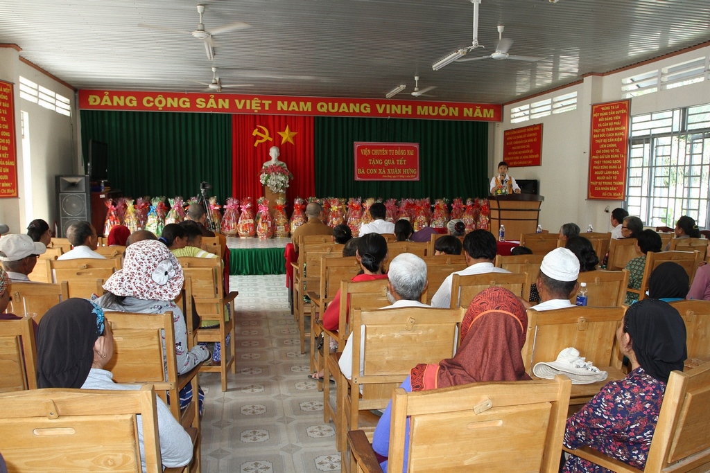 09 giờ sáng cùng ngày 17/01/2020, TT. Thích Thiện Thuận cùng Phật tử Viện Chuyên Tu đã trao tặng 100 phần quà tết cho bà con nghèo dân tộc Chăm, S’tiêng, Chơ-ro tại xã Xuân Hưng, huyện Xuân Lộc, tỉnh Đồng Nai. Mỗi phần quà trị giá 500.000 đồng, tổng giá trị quà tặng là 50.000.000 đồng.