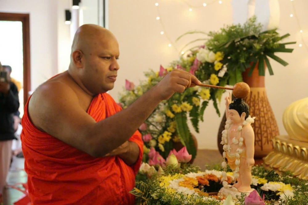 TT. Kusala Dhamma thực hiện nghi thức tắm Phật