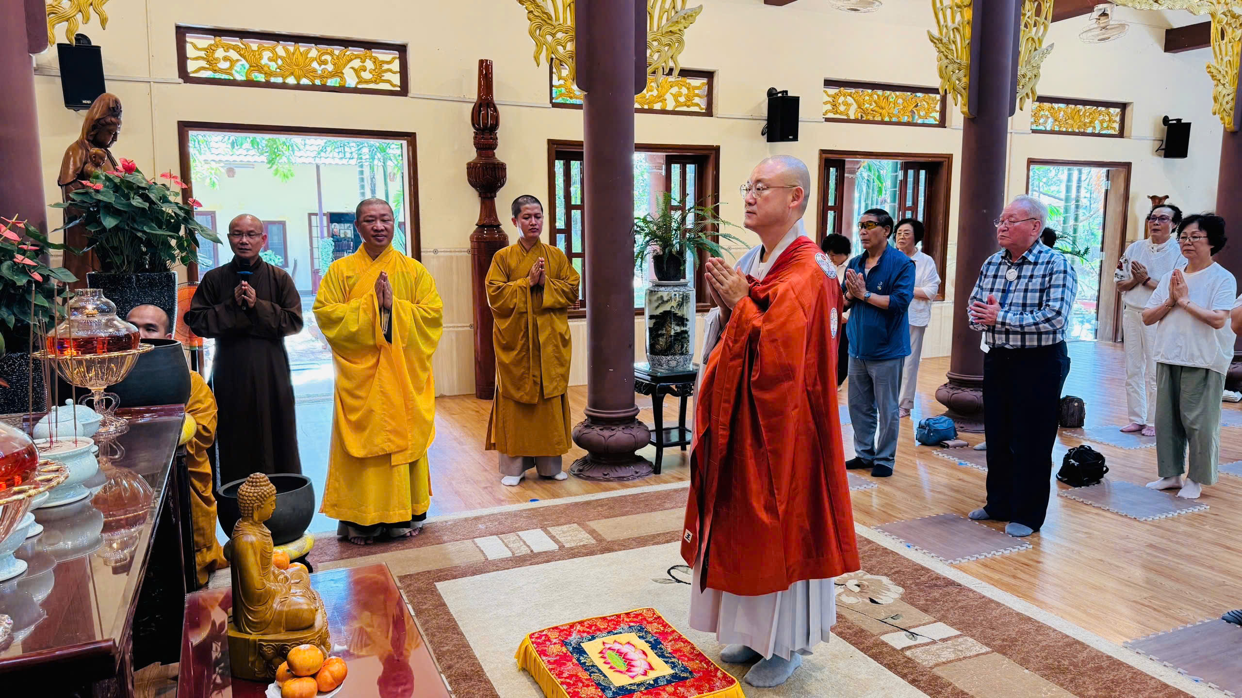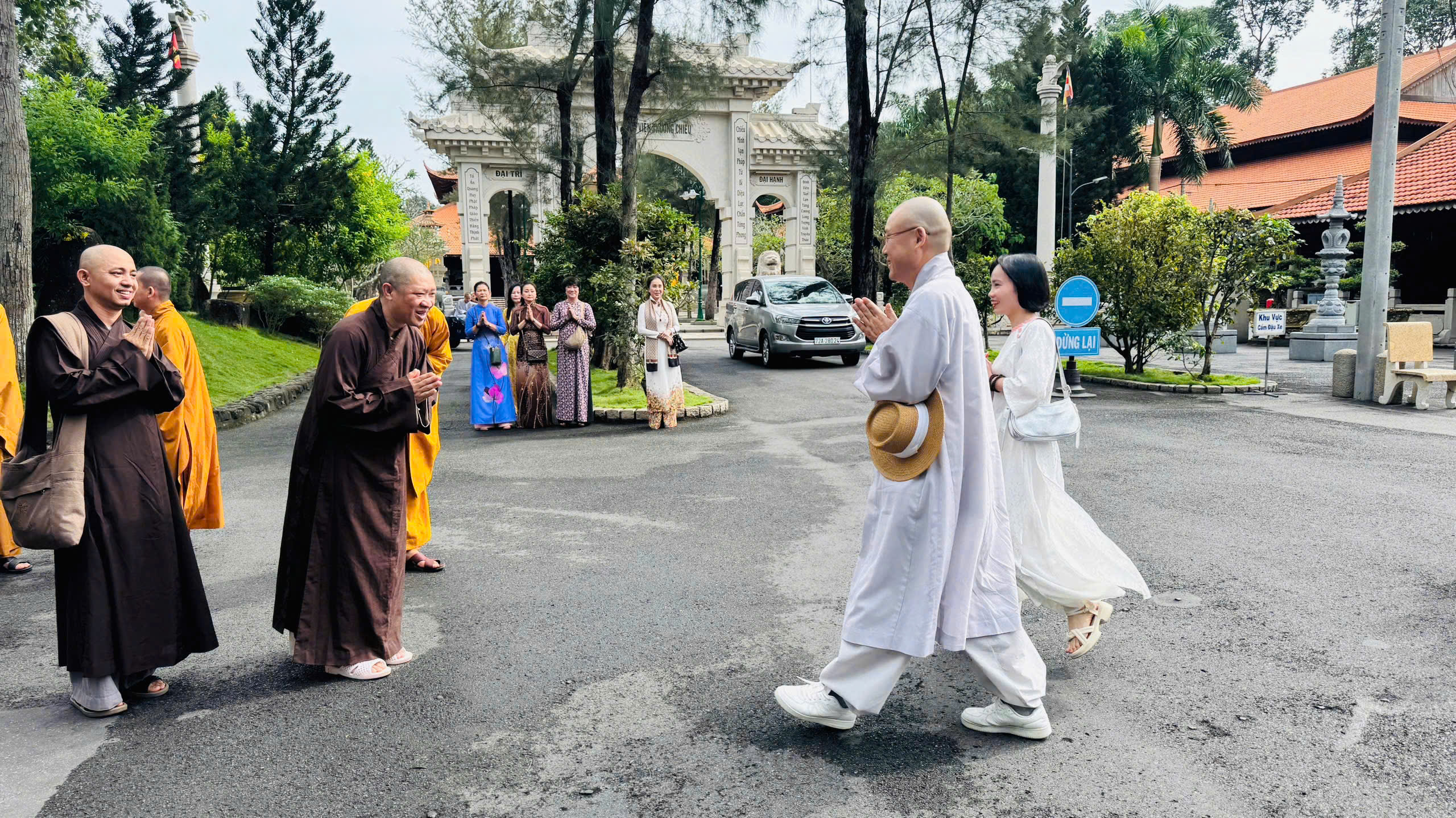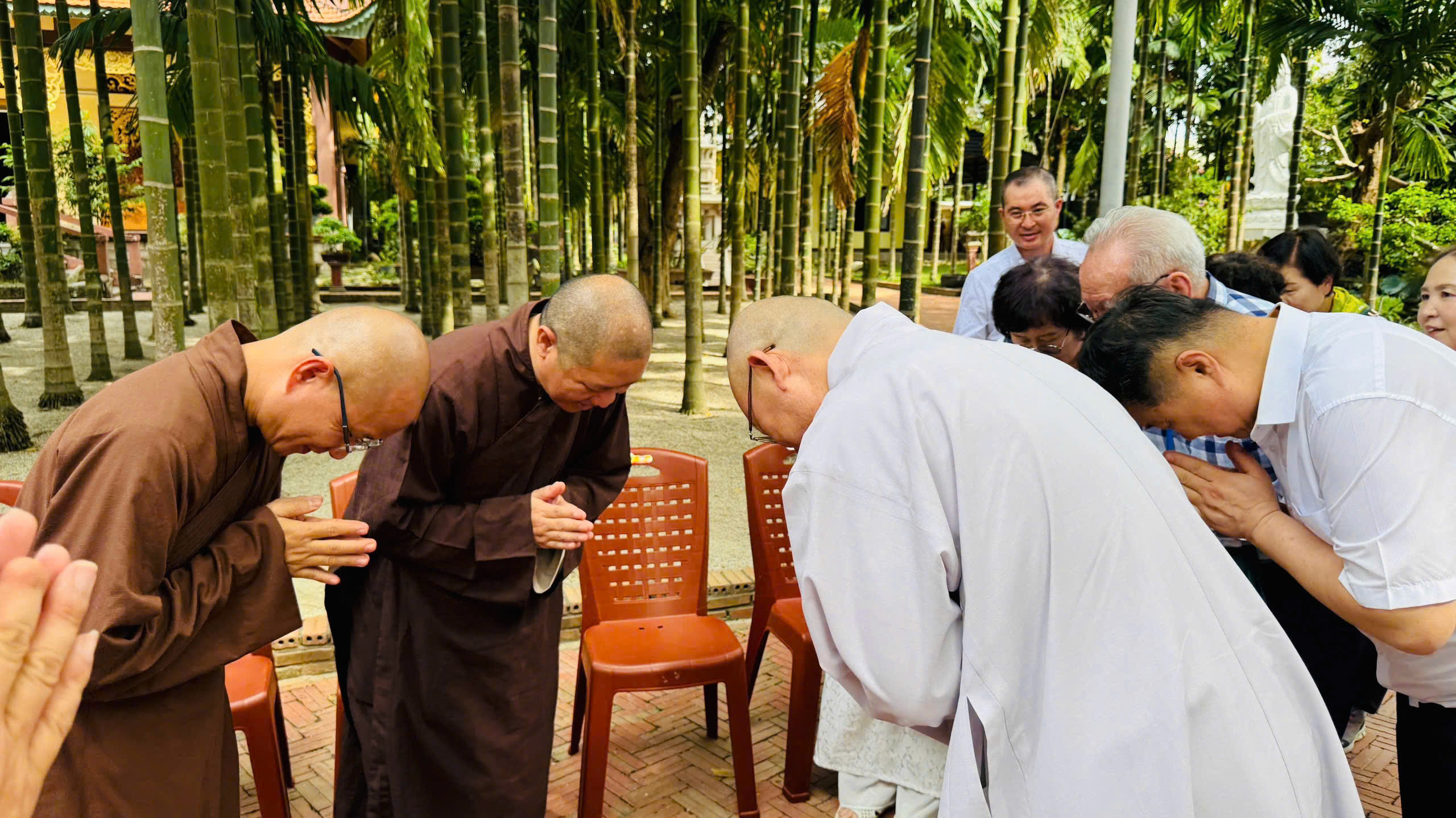 Sau buổi chia tay tại Trường Phật học Tổ đình Thiền viện Thường Chiếu, đoàn về chùa Vạn Thiện, lễ Phật, lễ Tổ, dùng cơm trưa thân mật, ghi ảnh lưu niệm. Khép lại chuyến thăm, TT. Thích Thiện Thuận đã có lời thăm hỏi và tặng quà đến đoàn. Hòa thượng trụ trì chùa Minh Trang gửi lời tri ân TT. Thích Thiện Thuận cùng Tăng chúng và Phật tử đã đón đoàn rất long trọng sau 20 năm Hòa thượng trở lại thăm Việt Nam. Buổi gặp mặt đầy hoan hỉ và ấm áp tình người.