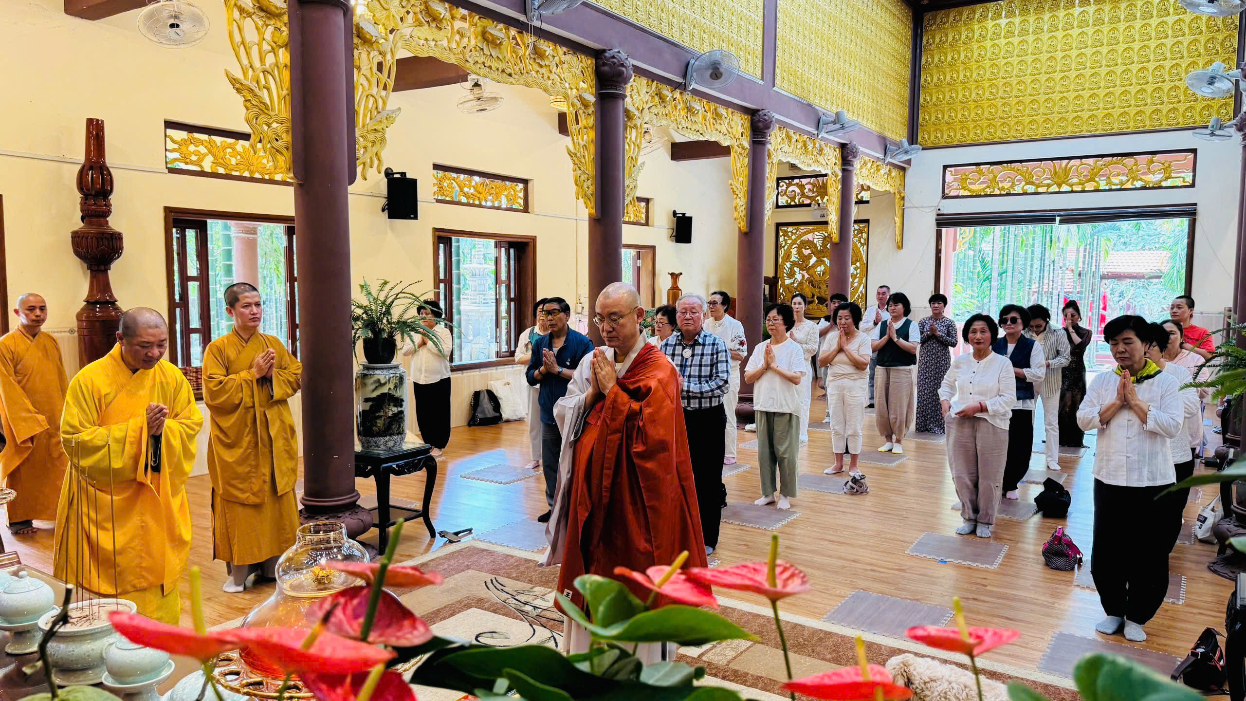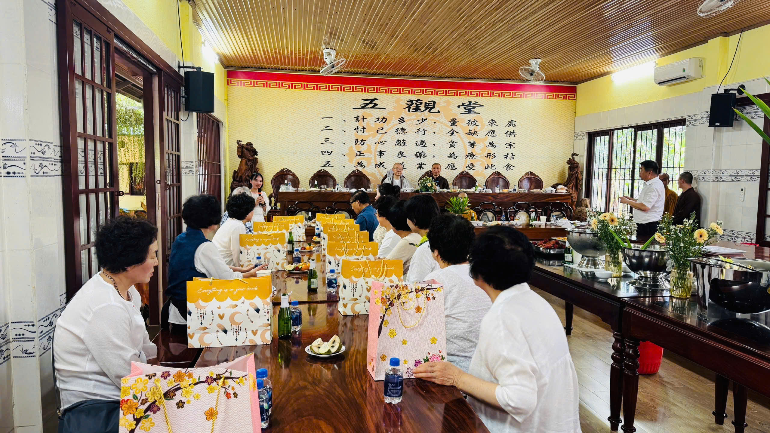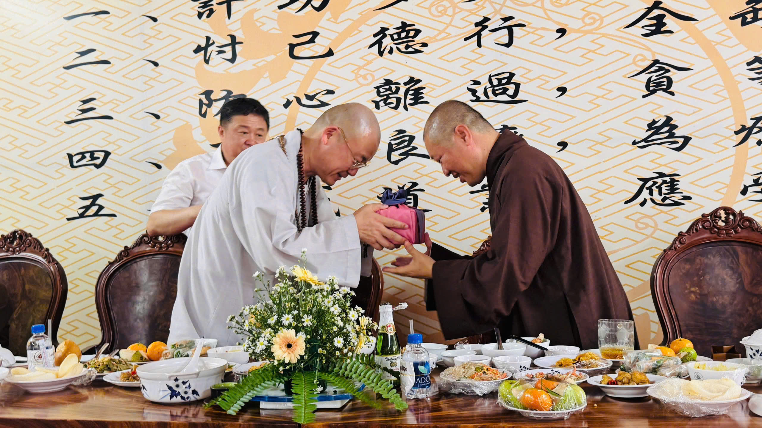 Sau buổi chia tay tại Trường Phật học Tổ đình Thiền viện Thường Chiếu, đoàn về chùa Vạn Thiện, lễ Phật, lễ Tổ, dùng cơm trưa thân mật, ghi ảnh lưu niệm. Khép lại chuyến thăm, TT. Thích Thiện Thuận đã có lời thăm hỏi và tặng quà đến đoàn. Hòa thượng trụ trì chùa Minh Trang gửi lời tri ân TT. Thích Thiện Thuận cùng Tăng chúng và Phật tử đã đón đoàn rất long trọng sau 20 năm Hòa thượng trở lại thăm Việt Nam. Buổi gặp mặt đầy hoan hỉ và ấm áp tình người.