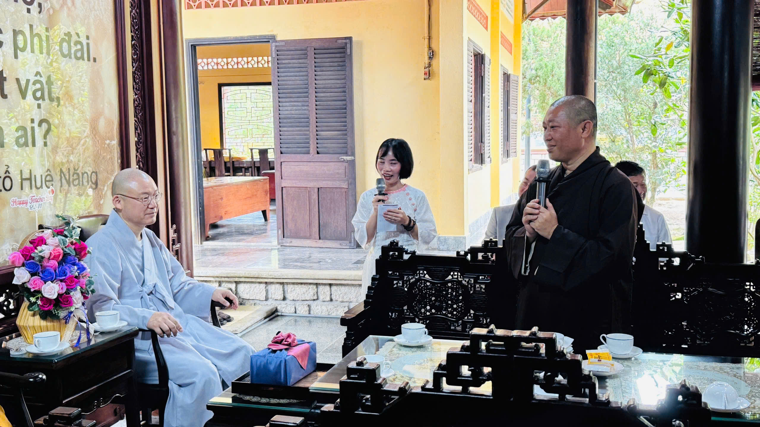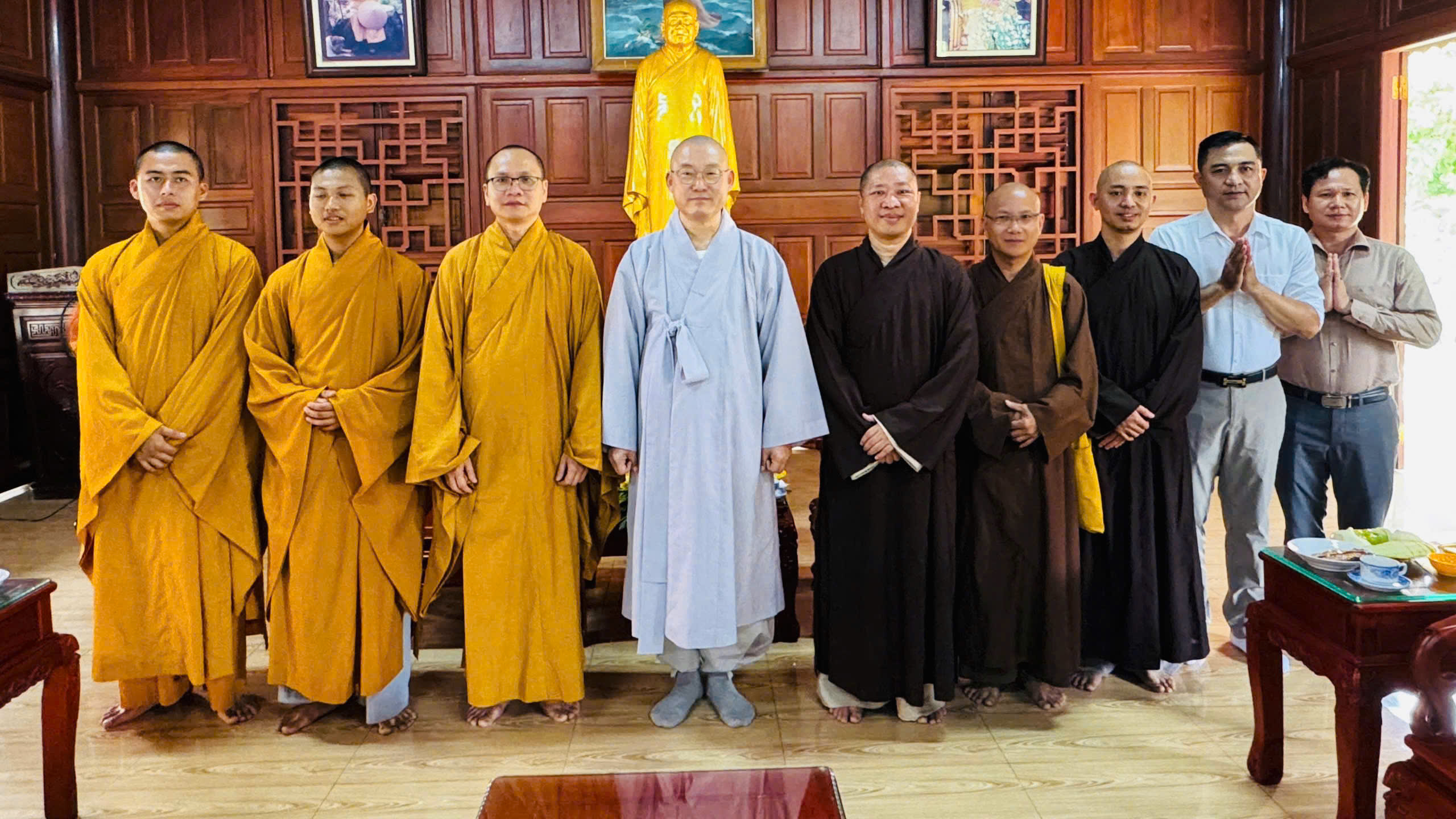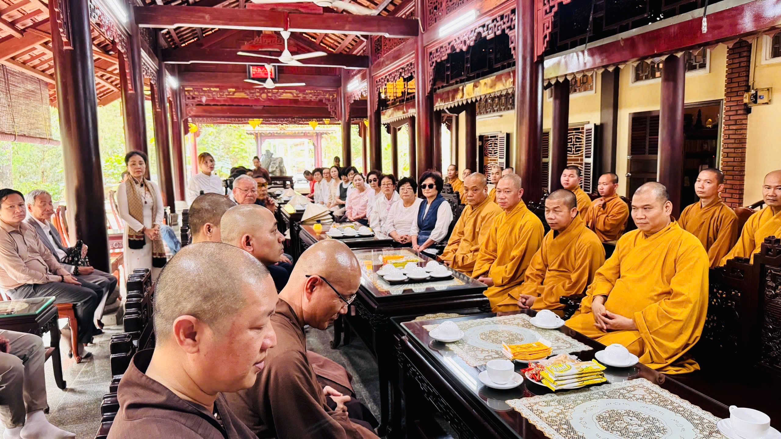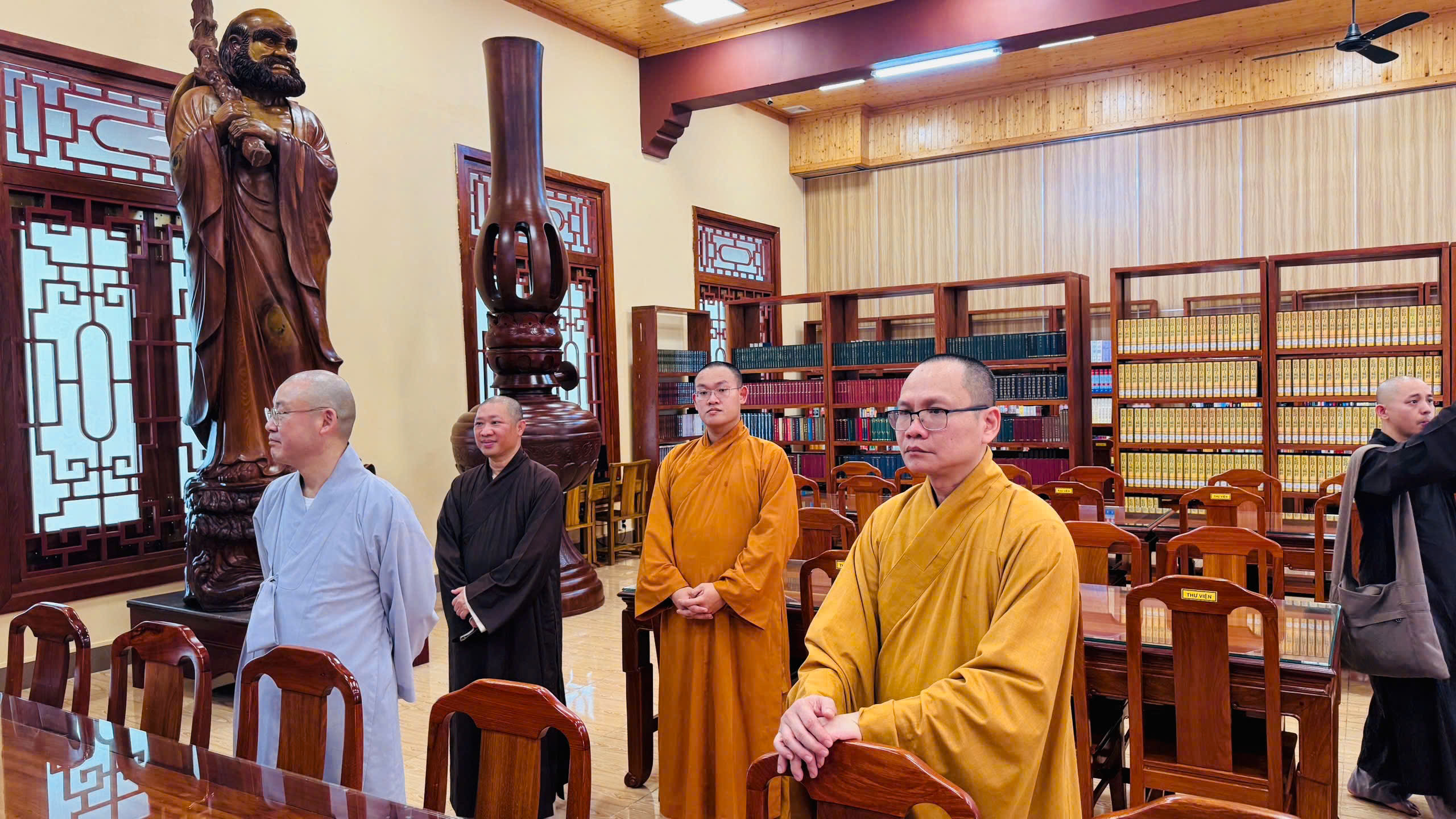 Sau lời chia sẻ và tri ân của Hòa thượng trụ trì chùa Minh Trang, TT. Thích Thiện Thuận đã nhắc lại câu chuyện 30 năm trước, Trưởng lão HT. Thích Nhật Quang là giáo thọ đã từng dạy học Thượng tọa tại trường Phật học Đại Tòng Lâm. Buổi gặp mặt khép lại, đoàn được ĐĐ. Thích Quang Tuệ – Ủy viên HĐTS – Phó BTS – Trưởng Ban giáo dục BTS GHPGVN tỉnh Đồng Nai – phụ trách các trường Trung cấp và Cao đẳng Phật học tại Tổ đình Thiền Viện, hướng dẫn đoàn lễ Phật, thăm mô hình sinh hoạt tại Trường thiền gồm: Trai đường, thiền đường, nhà chúng, thư viện, lớp học,… Đại đức cũng chia sẻ quy trình đào tạo tại Thiền viện khép kín trong 10 năm đến đoàn. Hòa thượng Trụ trì chùa Minh Trang và cả đoàn rất hoan hỉ khi được tham quan tại Tổ đình mong sẽ có dịp quay lại cùng đại cúng tham gia tu học.