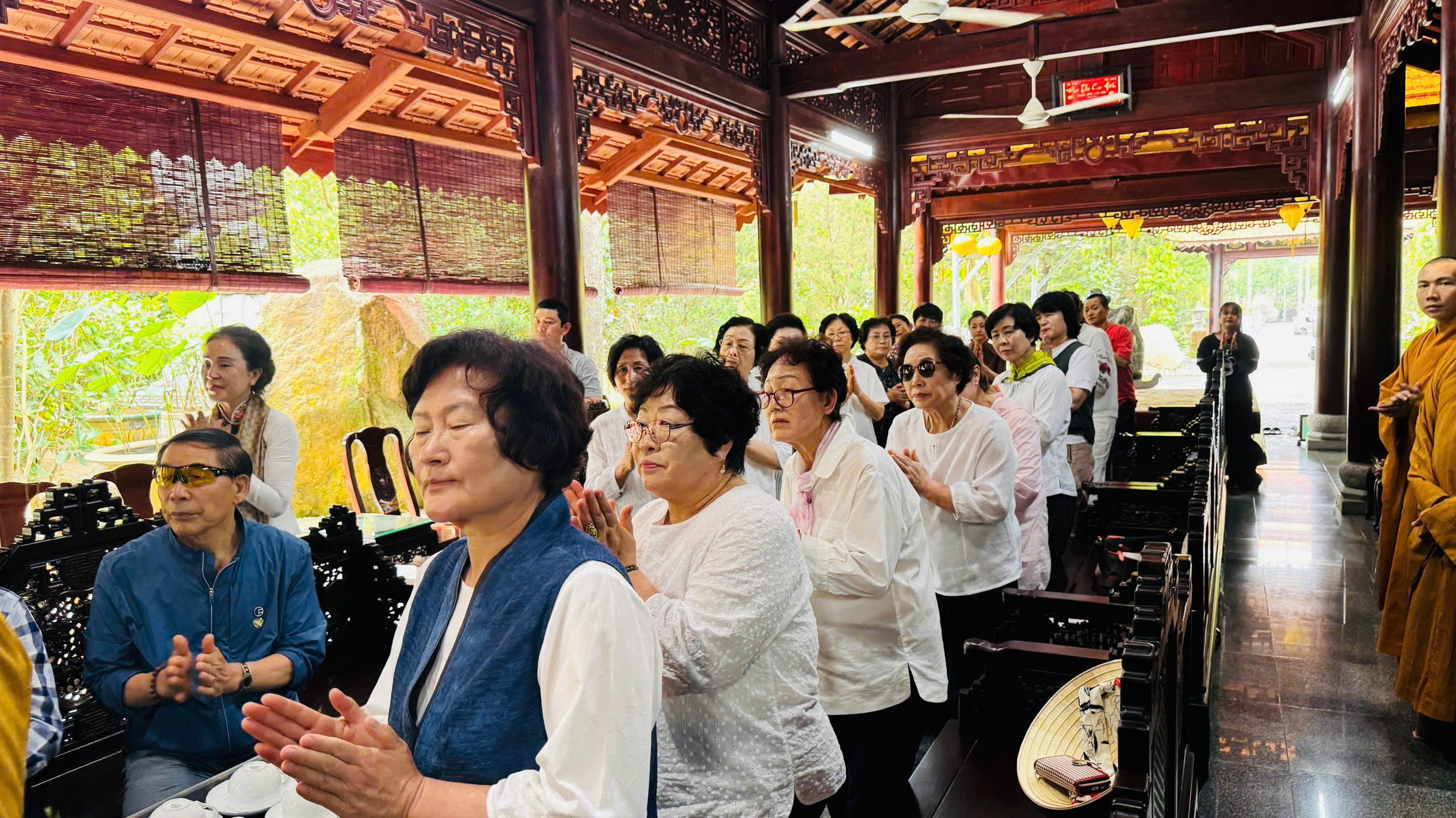 Sáng ngày 26/11/2024, chư tăng và Phật tử Viện Chuyên Tu đã tiếp đón HT. Cheong Do Woong – Trưởng ban Giáo vụ Tông phái Thiên Thai – Trụ trì chùa Minh Trang cùng phái đoàn Phật tử Ban quản trị chùa tại Hàn Quốc. Tiếp đoàn có TT. Thích Thiện Thuận – Ủy viên HĐTS – Phó Ban – Chánh Thư ký BTS GHPGVN tỉnh BR-VT – Trụ trì Viện Chuyên Tu; ĐĐ. Thích Thiện Hưng – Trụ trì chùa Tam Bảo cùng quý Tôn đức Tăng và quý Phật tử. Sau khi đón đoàn tại Tổ đình Thiền Viện Thường Chiếu, TT. Thích Thiện Thuận cùng phái đoàn Việt Nam đã hướng dẫn Hòa thượng và đoàn diện kiến Trưởng lão HT. Thích Nhật Quang – Ủy viên Thường trực Hội Đồng Chứng Minh – Trưởng Ban quản trị Thiền phái Trúc Lâm – Trụ trì Tổ đình Thiền Viện Thường Chiếu. Sau khi đảnh lễ và vấn an sức khỏe Trưởng lão Hòa thượng Trụ trì. TT. Thích Thiện Thuận đã giới thiệu sơ về phái đoàn Hàn Quốc đến Trưởng lão Hòa thượng và chư Tăng tại Tổ đình Thiền Viện. Qua đó, Trưởng lão Hòa thượng đã có lời chào hỏi và chia sẻ sơ về nếp sống Thiền môn tại Tổ đình. Mục đích của Tông phái là tu học. Trưởng lão Hòa thượng Tông chủ Thượng Thanh hạ Từ đã thừa kế tông chỉ của Phật Hoàng Trần Nhân Tông và từ đó hướng dẫn đại chúng tu học theo Thanh quy, thời khóa tu học khép kín,… sau khi lắng nghe sự chia sẻ của Trưởng lão Hòa thượng Trụ trì, HT. Cheong Do Woong đã có lời tri ân và tán thán Phật giáo Việt Nam nói chung và Phật giáo Tông phái thiền Trúc Lâm nói riêng. Hòa thượng đã chia sẻ sơ về Phật giáo và nền kinh tế Hàn Quốc hiện nay. Có thể thấy, khi nền kinh tế Hàn Quốc Phát triển thì Phật giáo bị ảnh hưởng rất lớn. Hiện nay, tín đồ Phật tử không còn đông, Tăng Ni không còn nhiều như trước đây. Nền kinh tế Hàn Quốc đang đứng thứ 12 trên thế giới, khi kinh tế phát triển thì con người chạy theo nhịp độ phát triển của đất nước, dẫn đến văn hóa đạo đức Phật giáo bị ảnh hưởng rất lớn. Hòa thượng mong được giao lưu và tìm hiểu Phật giáo Việt Nam, đồng thời mong Phật giáo Việt Nam ngày càng phát triển nhiều hơn để cống hiến cho xã hội.
