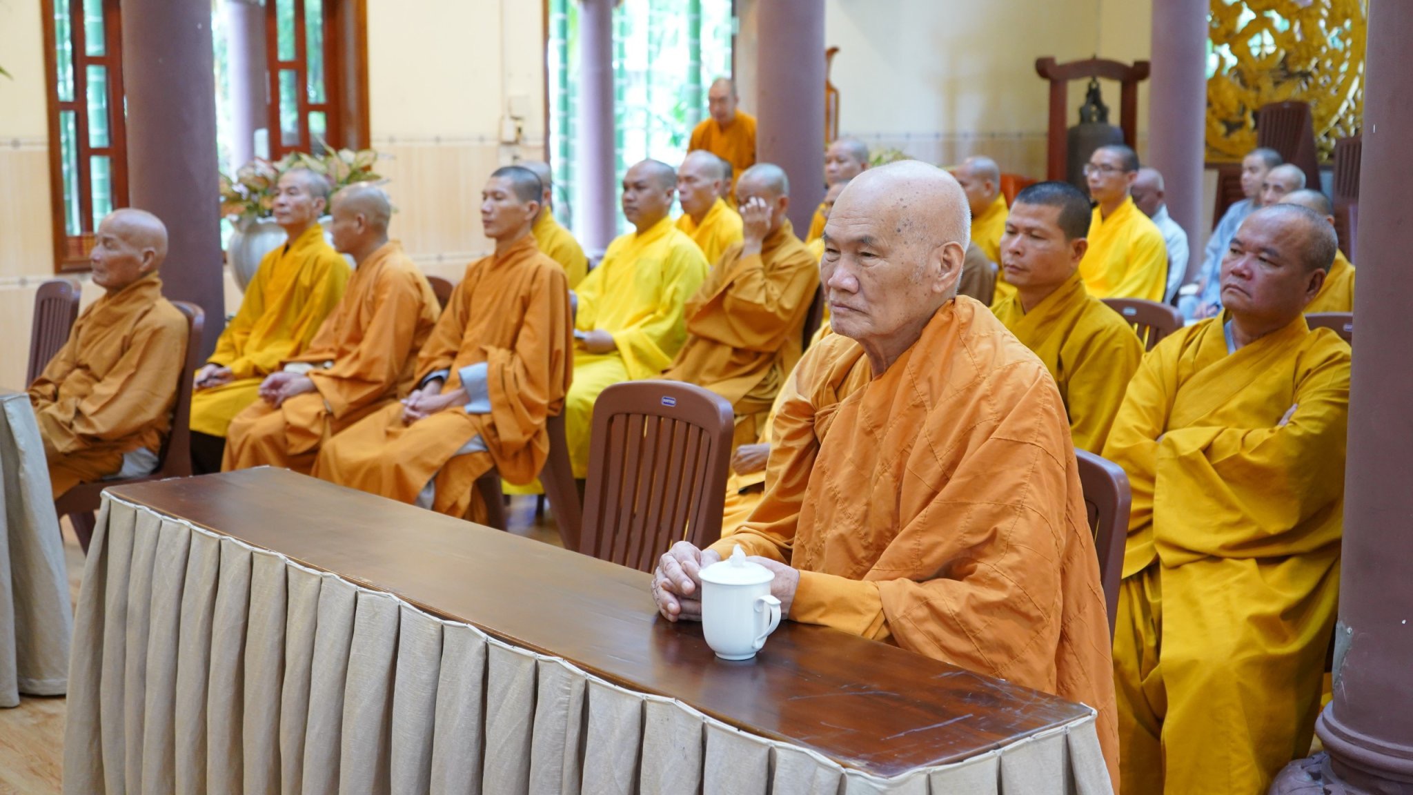 Căn cứ trên “thiền môn chánh độ khoa nghi” được thực hiện trong tang lễ người xuất gia, Thượng tọa giáo thọ đã phân tích cho hành giả hiểu thấu nghĩa lý, nhấn mạnh nghi thức tuyên pháp ngữ là một trong những nghi thức quan trọng, giúp người xuất gia được nhẹ nhàng trước lúc lâm chung…