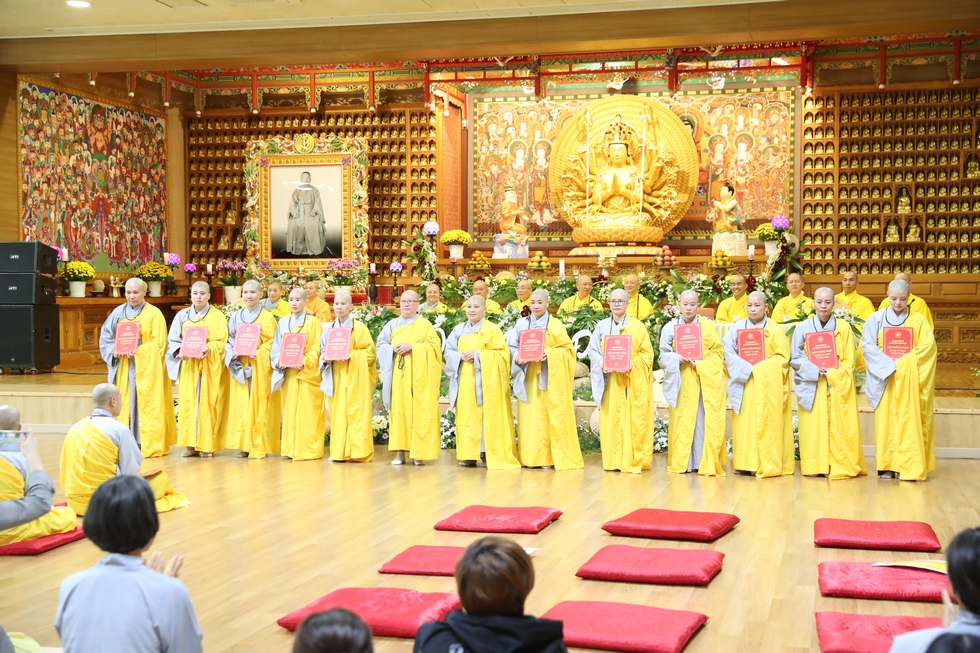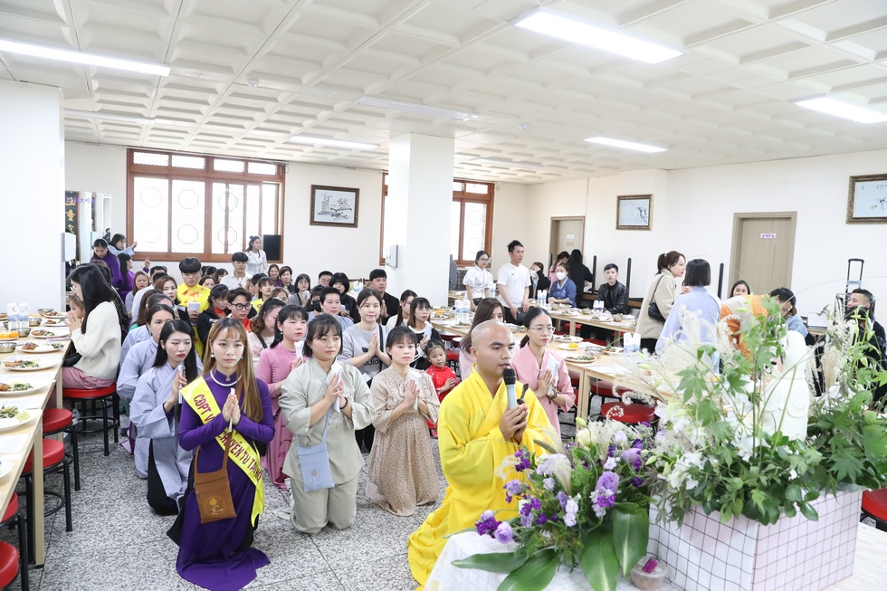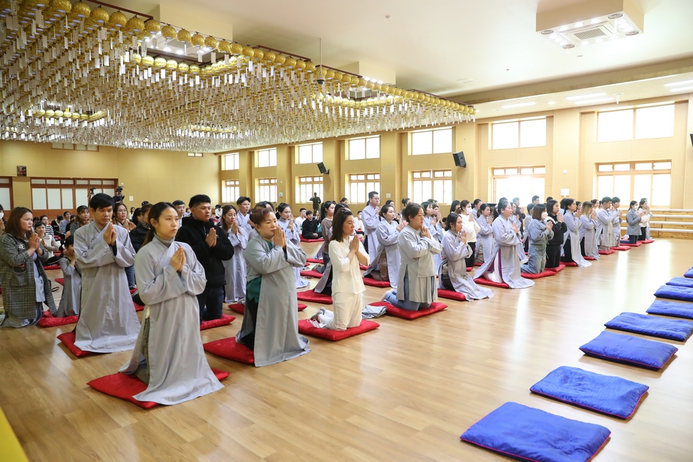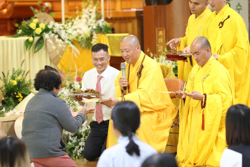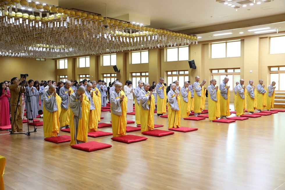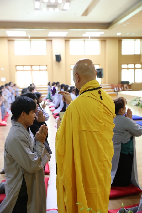 Sau đó TT. Thích Thiện Thuận – Trưởng BTC khóa tu cùng Chư Tôn đức đã thực hiện nghi thức truyền trao Tam quy ngũ giới cho hơn 100 vị thiện nam và tín nữ người Việt lẫn người Hàn phát tâm lãnh thọ. Các giới tử hân hoan đón nhận giới pháp. Chuỗi sự kiện diễn ra vào buổi sáng, trong không gian ấm áp thấm tình đạo vị, những ân tình bao la rộng lớn của quý Tôn đức, đã đọng lại nhiều kỷ niệm đẹp khó phai trong lòng quý nam nữ Phật tử từ nhiều nơi vân tập về đây tham dự khóa tu học lần thứ 13 này.