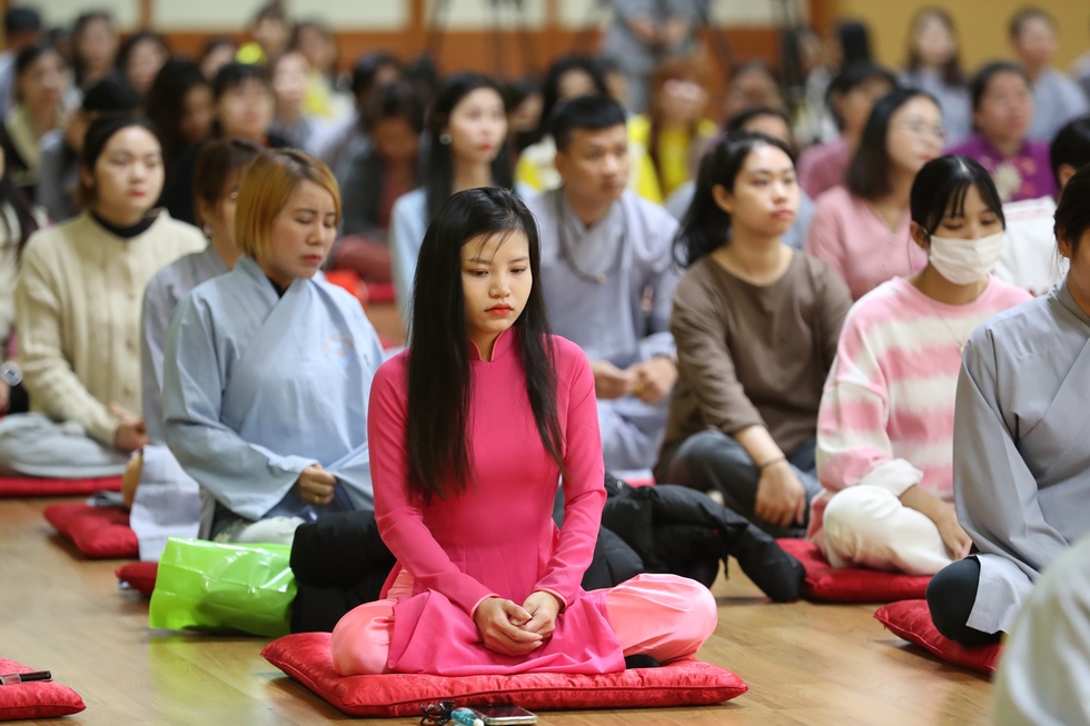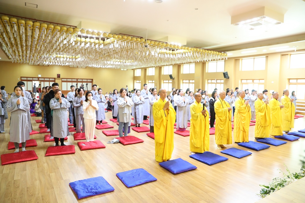 Vào lúc 8h30, ngày 29-10-2023, chương trình tọa đàm với chủ đề “Nghĩa tình chốn thiền môn” (phần 2) được tổ chức tại chánh điện chùa Minh Trang (Thành phố Cheongju, Hàn Quốc). Tham dự buổi tọa đàm có TT. Thích Thường Tín, TT. Thích Đức Minh – đồng cố vấn BTC, TT. Thích Thiện Thuận – Trưởng BTC khóa tu và điều phối buổi tọa đàm, TT. Thích Hạnh Bảo – Phó BTC khóa tu, NS.TN. Chơn Huy, NS.TN. Quảng Tiên, NS. TN Thánh Nghiêm cùng chư Tôn đức Tăng Ni cùng quý hành giả xuất gia gieo duyên và hơn 200 Phật tử tham dự. Trong buổi tọa đàm, đại chúng được lắng nghe chia sẻ đầu tiên của TT. Thích Đức Minh về thuở hàn vi xuất gia, những gian nan khi hành đạo và kinh nghiệm học Kinh, học chú Lăng Nghiêm.