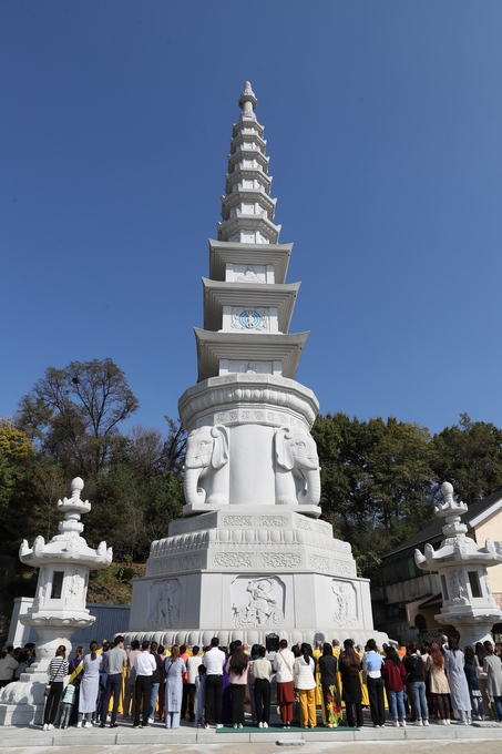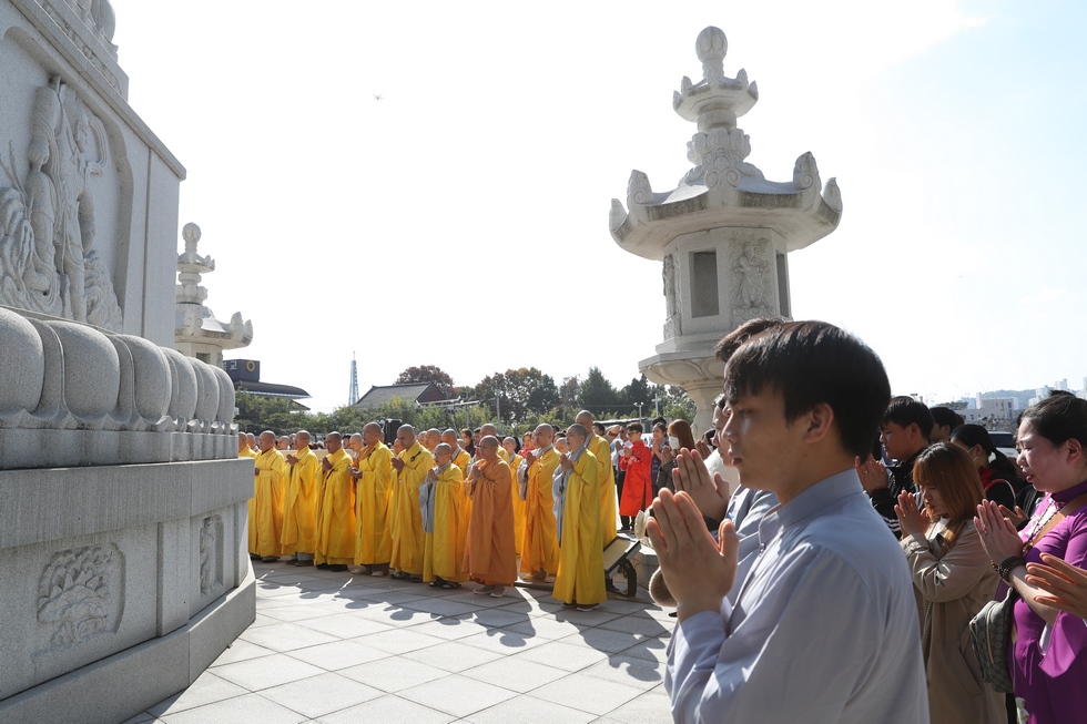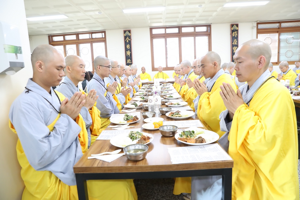 Sau khi dùng quá đường xong, đại chúng kinh hành niệm Phật quanh tháp
