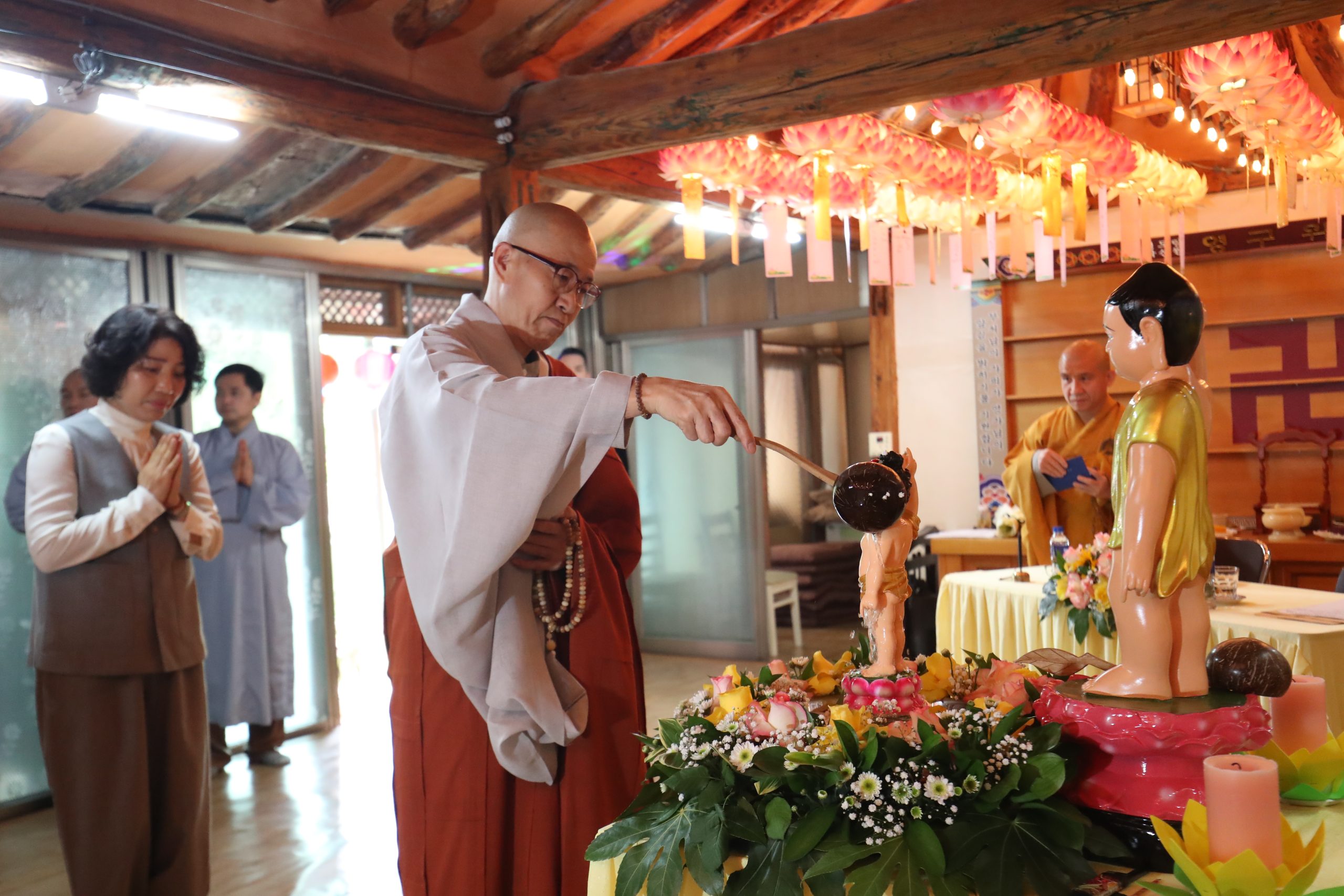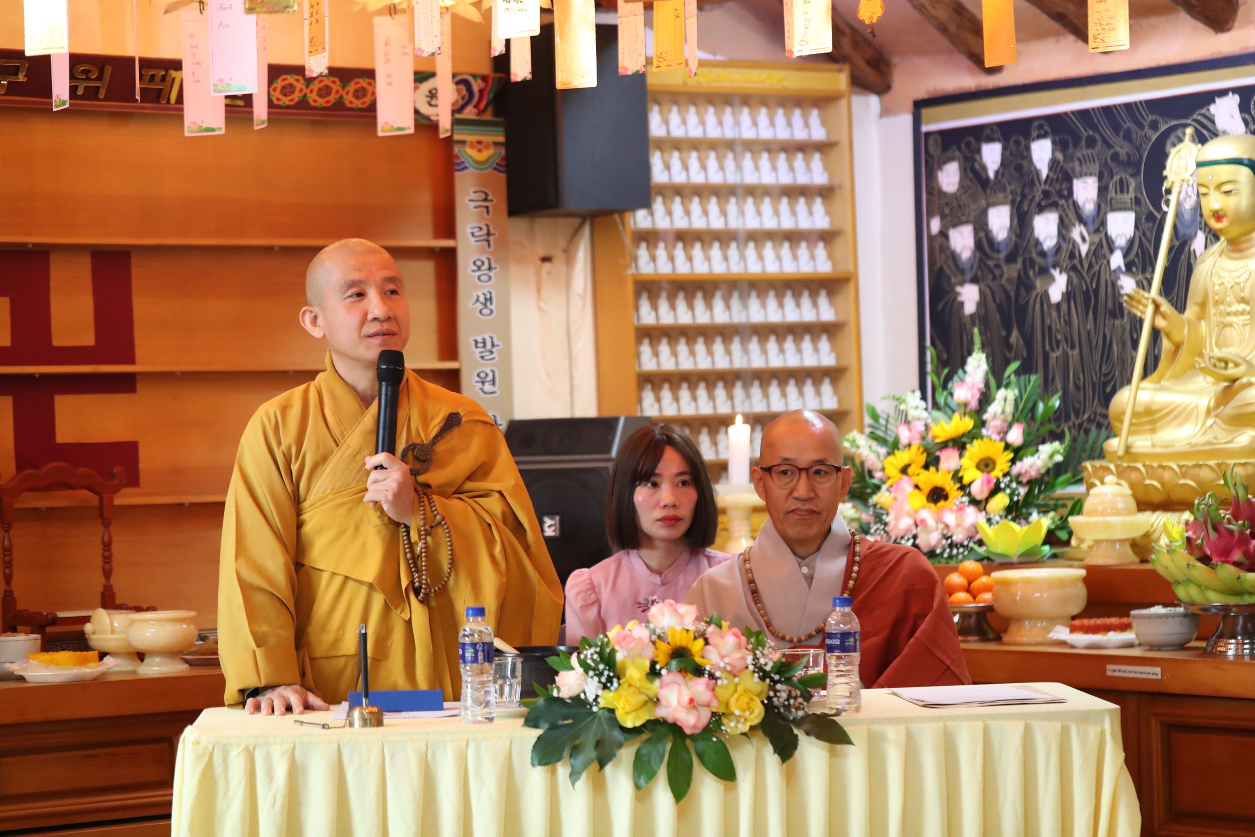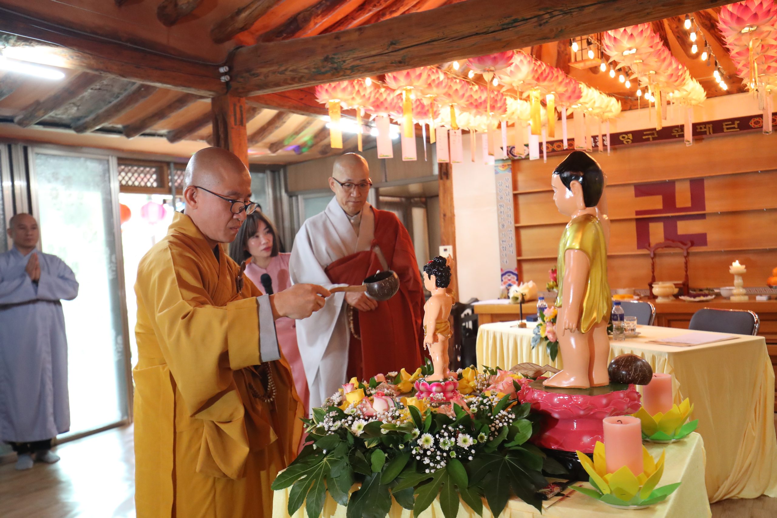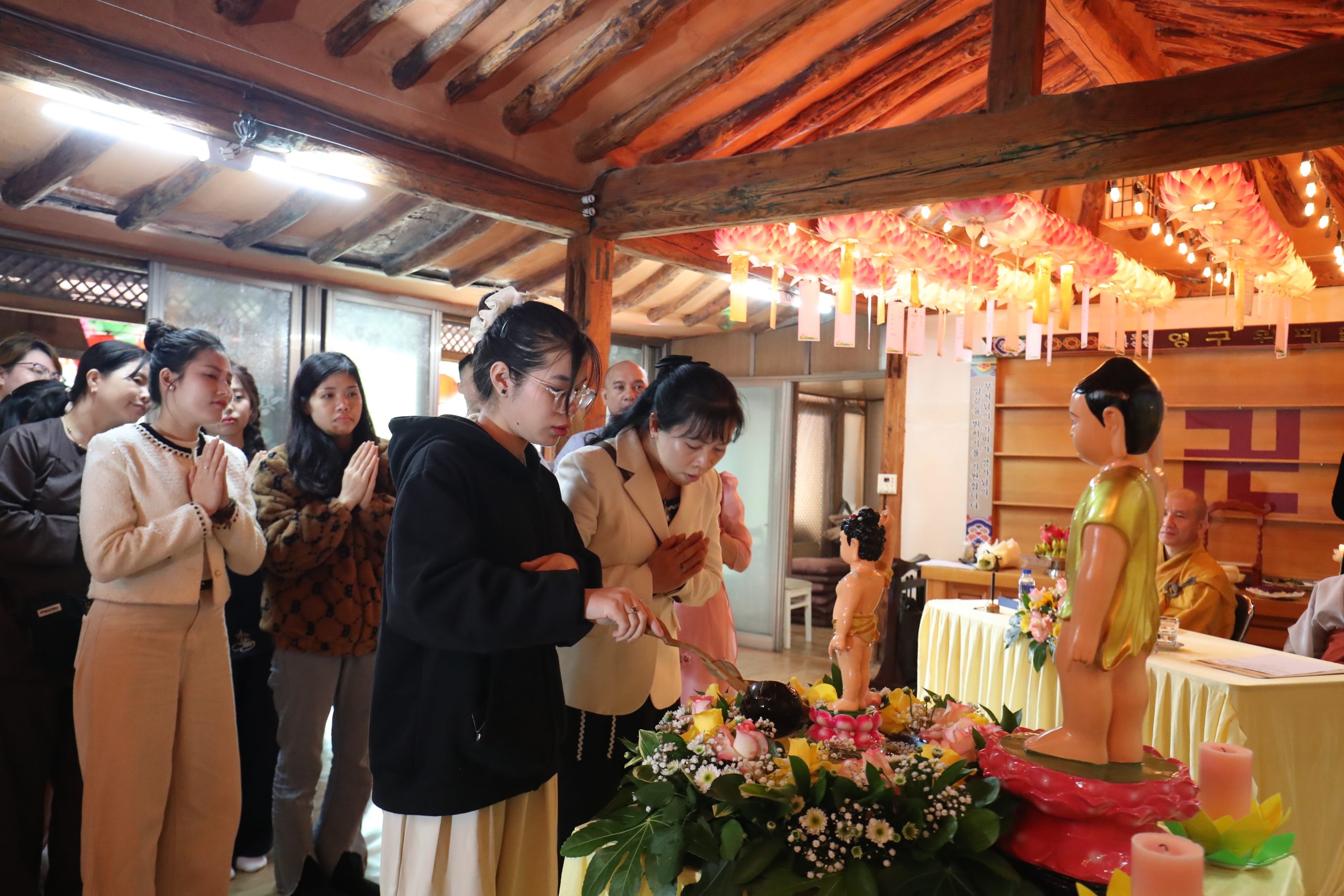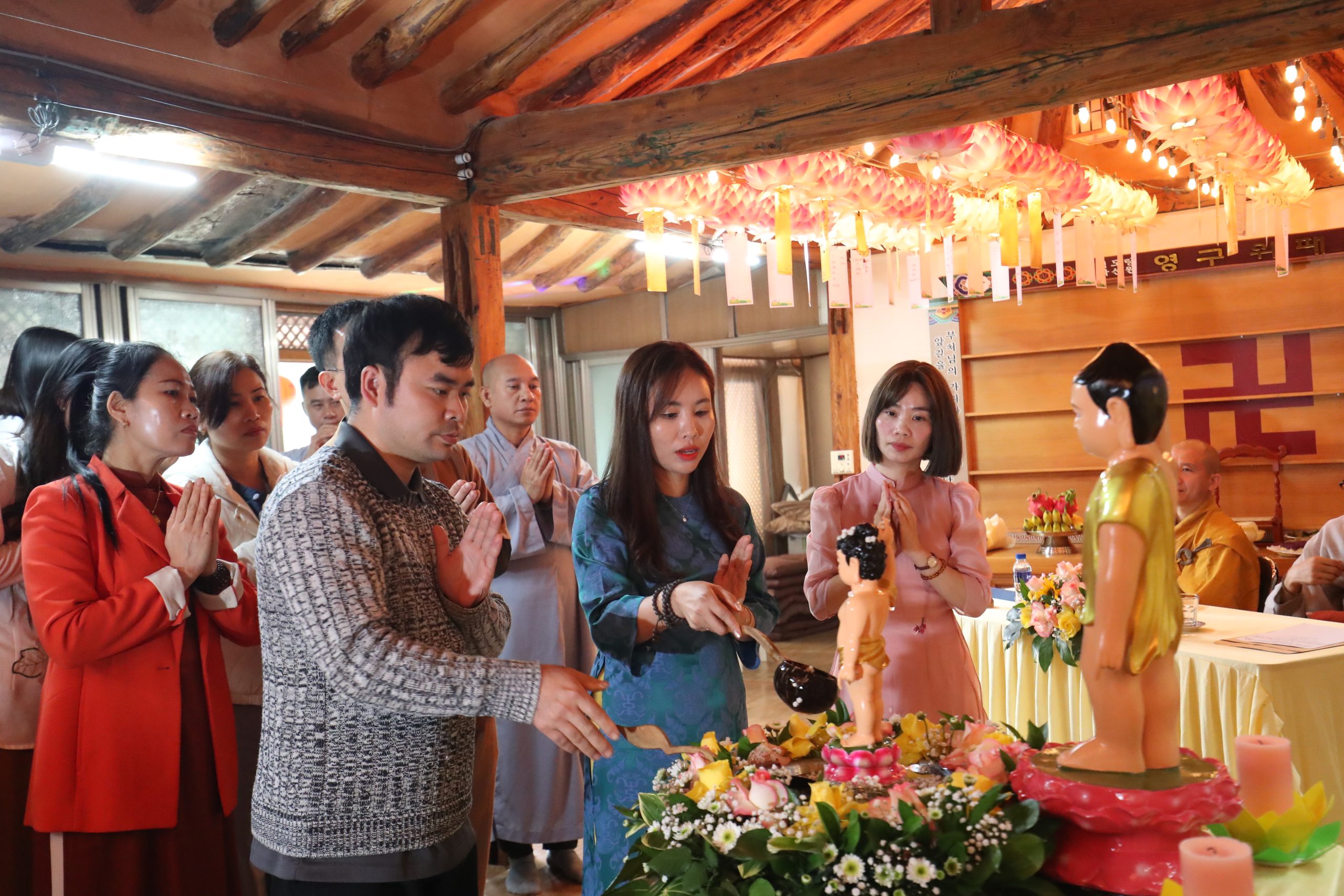 Đặc biệt, nhân dịp trở về chùa tham dự lễ Phật Đản, hàng Phật tử đã dâng lời tác bạch tri ân lên quý Thầy – những bậc đạo sư âm thầm dẫn dắt, trao truyền chánh pháp trong cuộc đời vô thường. Niềm tri ân ấy càng thêm sâu sắc khi mùa Phật Đản năm nay trùng hợp với Ngày Nhà giáo Hàn Quốc (15/5) đã tạo nên cơ duyên ý nghĩa để hàng Phật tử bày tỏ lòng kính ngưỡng đến quý Thầy, không chỉ là những người dạy đạo lý, mà còn là người hướng dẫn cách sống tỉnh thức giữa đời thường.