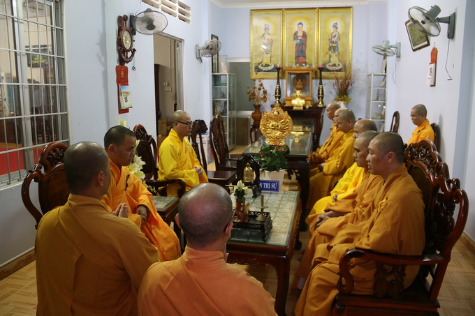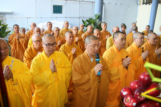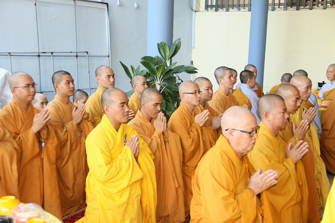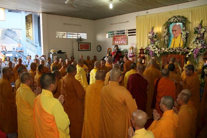 Sau khóa lễ cúng ngọ, chư Tôn đức giáo phẩm chứng minh đã quang lâm về trước Giác linh đài cố Hòa Thượng Viện chủ Viện Chuyên Tu thắp hương tưởng niệm, cầu nguyện Giác linh Hòa Thượng cao đăng Phật quốc.