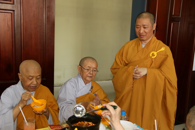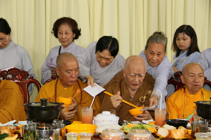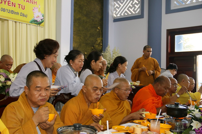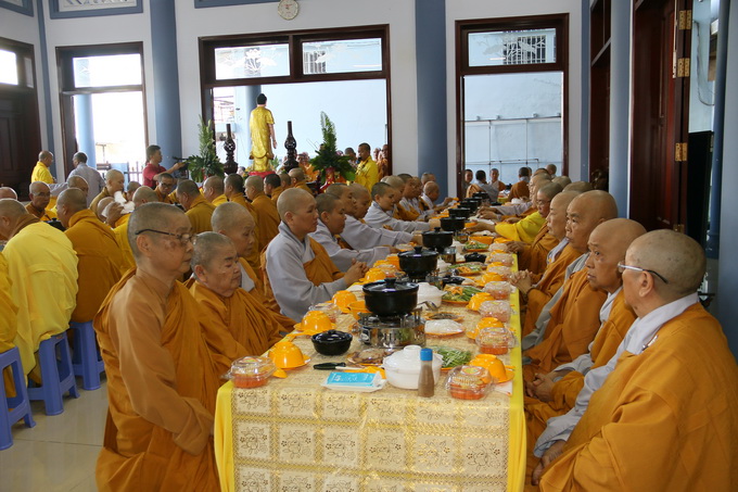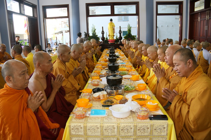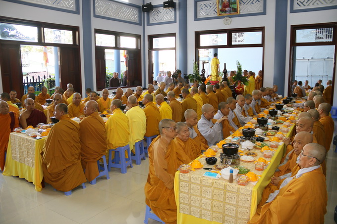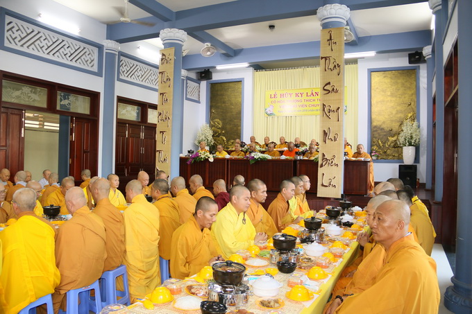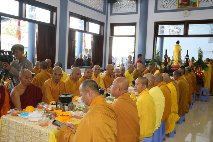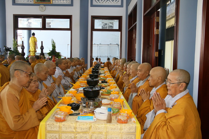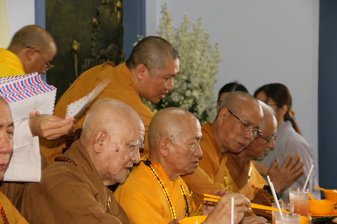 Đúng 10 giờ 30, nghi thức cúng dường trai tăng chính thức được cử hành. Đại diện cho Tông môn pháp quyến, Thượng Tọa Thích Thiện Thuận – Trưởng BTC, pháp tử của cố HT, thành kính dâng lời tác bạch cúng dường lên chư Tôn đức chứng minh. Những ân tình mênh mông của cố Hòa Thượng viện chủ Viện Chuyên Tu dành cho chúng đệ tử lúc sanh tiền đã được Thượng tọa bộc bạch một cách chân thành, tha thiết trong không gian sâu lắng và tràn đầy cảm xúc.