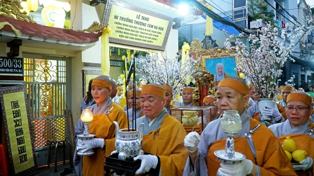 Trang nghiêm cung tống kim quan cố Ni trưởng đến nơi trà tỳ