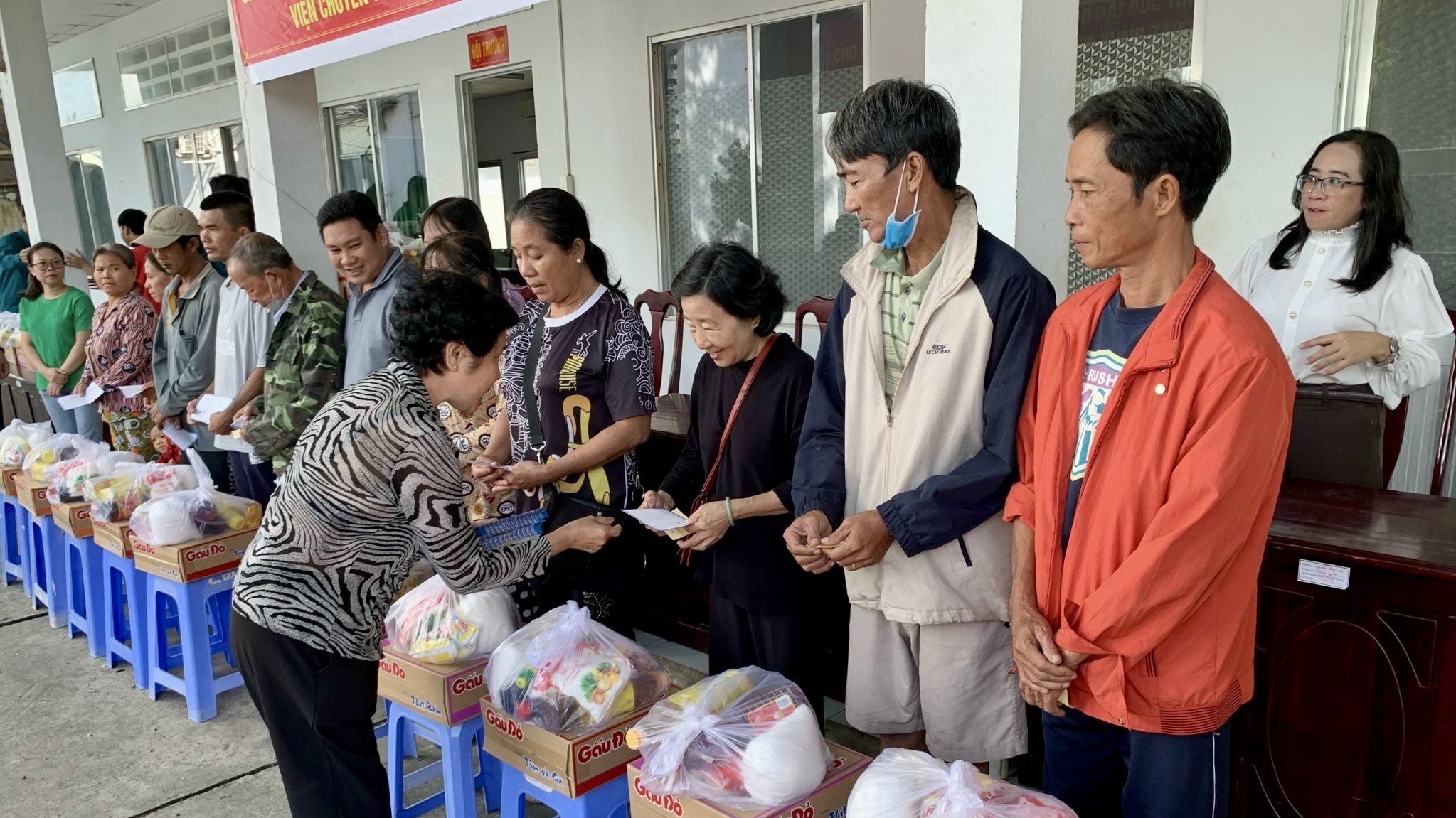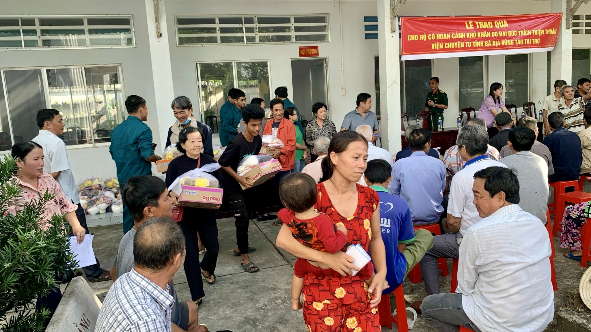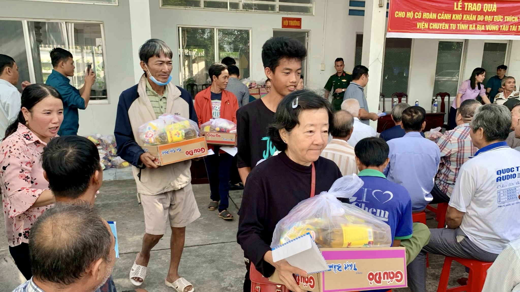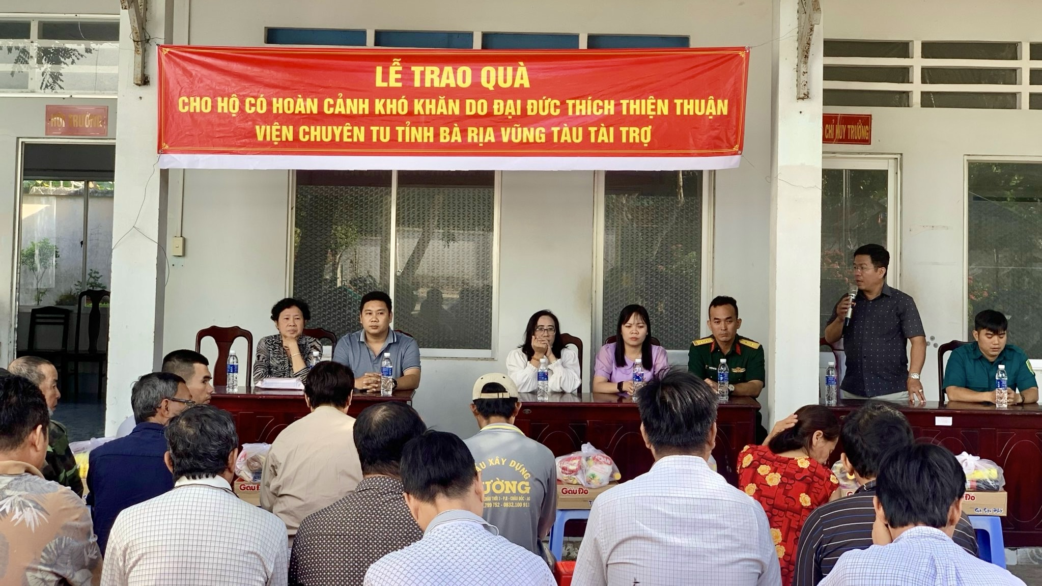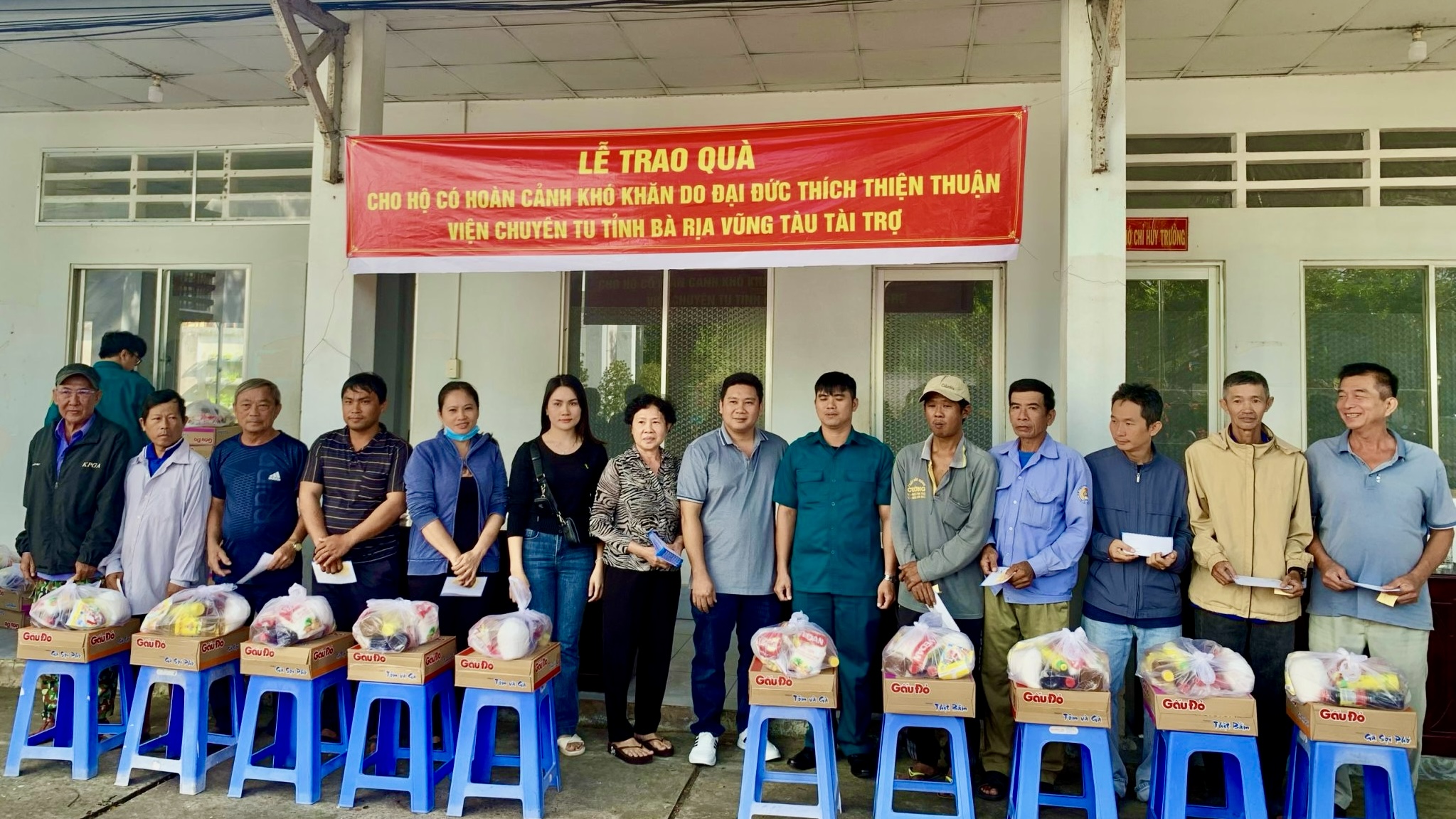 Sáng ngày 22/11/2023, theo sự hướng dẫn của TT. Thích Thiện Thuận, các vị Phật tử đại diện cho Ban Thiện nguyện Ánh Đạo của VIện Chuyên Tu đã trao tặng 100 phần quà cho bà con khó khăn tại UBND phường Châu Phú B, thành phố Châu Đốc, tỉnh An Giang. Tham dự có Bà Huỳnh Thị Kim Ngân, Bí thư thành đoàn TP.Châu Đốc; ông Nguyễn Hoàng Hiếu, Phó Bí thư đảng ủy, Trưởng khối vận, Chủ tịch Ủy ban MTTQVN phường Châu Phú B; bà Đặng Thị Lan, Phó Chủ tịch UBND phường Châu Phú B. Tổng giá trị 100 phần quà là 50.000.000 đồng, do Phật tử Diệu Từ và gia đình tại Canada ủng hộ.