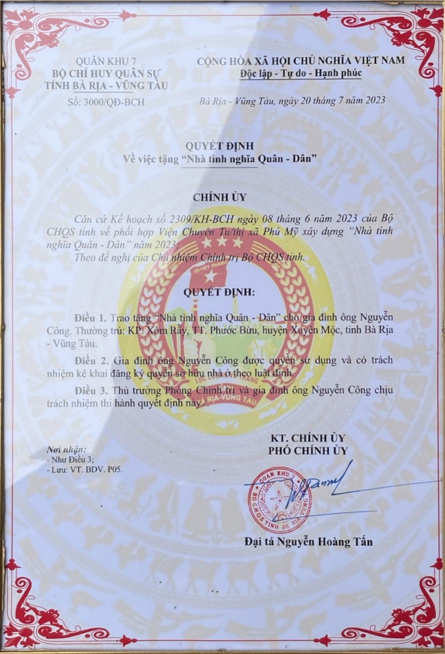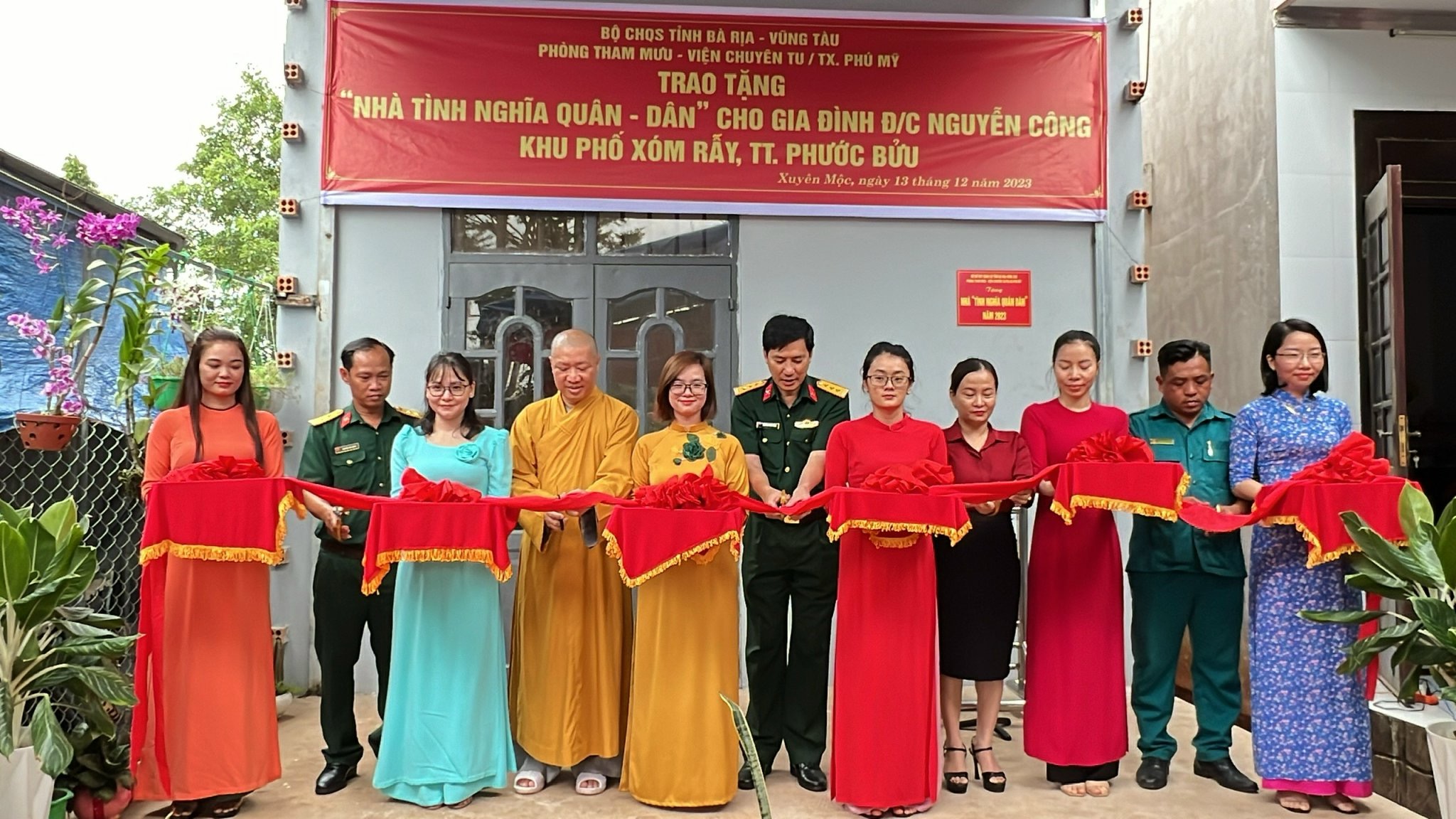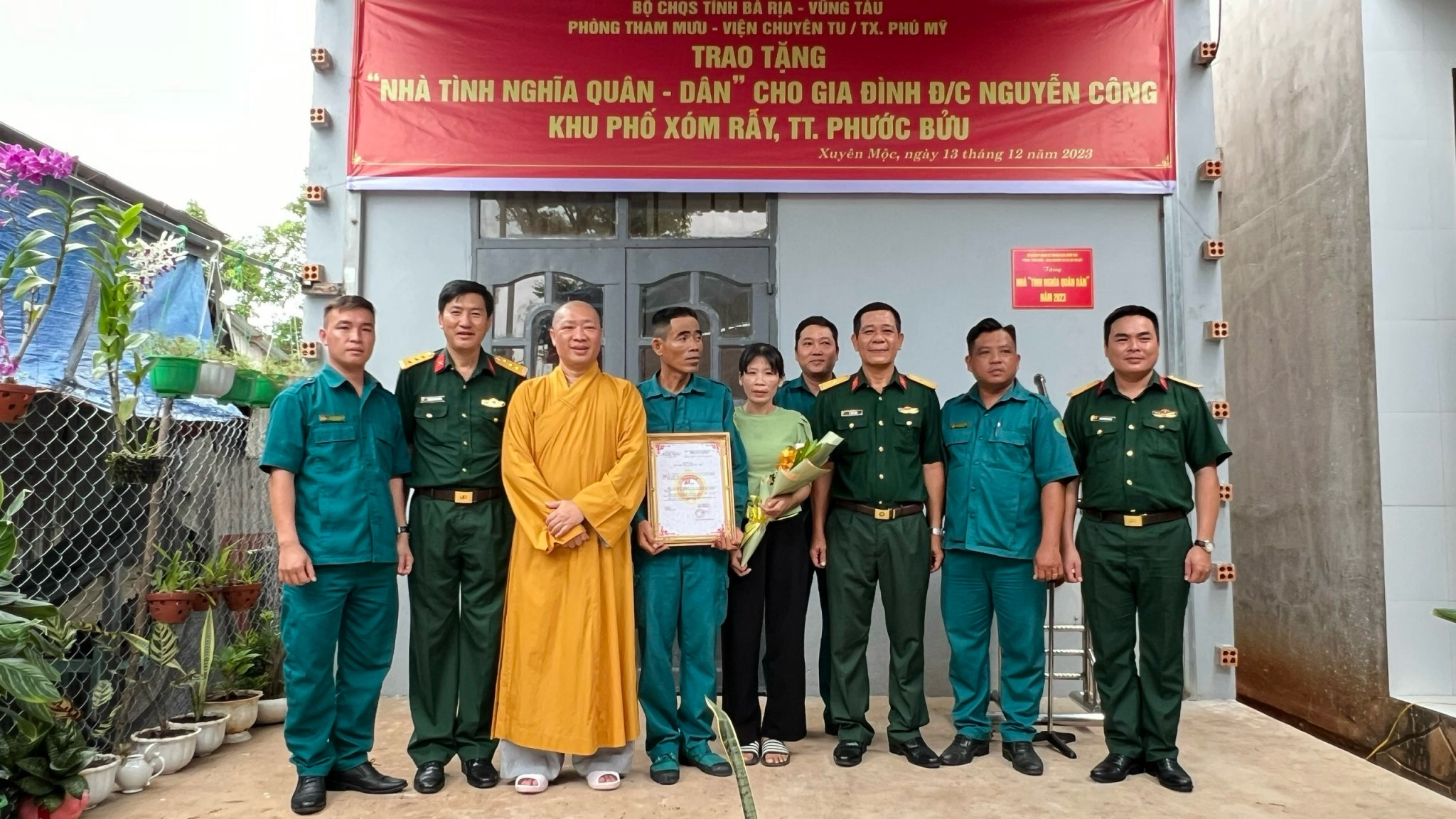 Tại buổi lễ trao tặng nhà có sự tham dự của TT. Thích Thiện Thuận, Phó Ban Trị sự kiêm Chánh Thư ký GHPGVN tỉnh BRVT, Trụ trì Viện Chuyên Tu; Thượng tá Nguyễn Xuân Công, Phó Chủ nhiệm Chính trị Bộ CHQS tỉnh BRVT; Trung tá Nguyễn Văn Ngàn, Chính trị viên phó Ban CHQS huyện Xuyên Mộc; Bà Quách Thị Hoài Thương, Phó Chủ tịch UBND Thị trấn Phước Bửu, huyện Xuyên Mộc và đại diện gia đình ông Nguyễn Công cùng các chiến sĩ thân hữu.