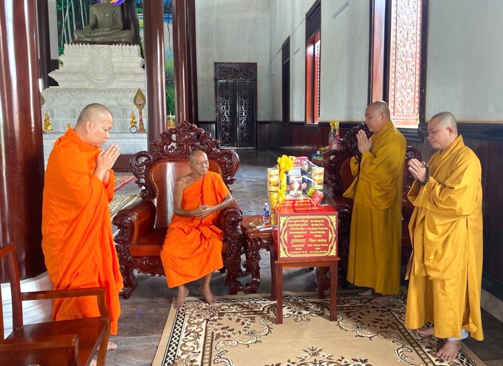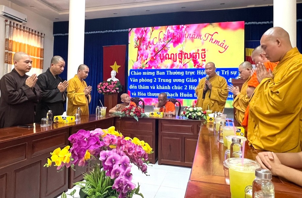 Nhằm tri ân những đóng góp của Phật giáo Nam tông Khmer trong quá trình xây dựng, phát triển Giáo hội và đồng hành cùng dân tộc, thừa lệnh Ban Thường trực Hội đồng Trị sự, vào ngày 07 và 08/4/2024, chư Tôn đức lãnh đạo Văn phòng 2 Trung ương do Thượng tọa Thích Phước Nguyên – Phó Tổng Thư ký kiêm Chánh Văn phòng, làm trưởng đoàn đã đến vấn an, khánh chúc chư Tôn đức Hội đồng Chứng minh, Hội đồng Trị sự là giáo phẩm Phật giáo Nam tông Khmer.