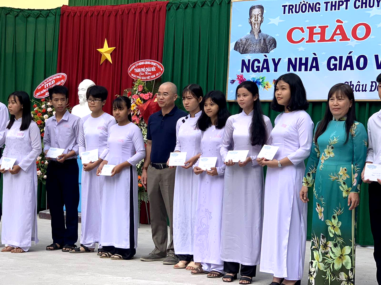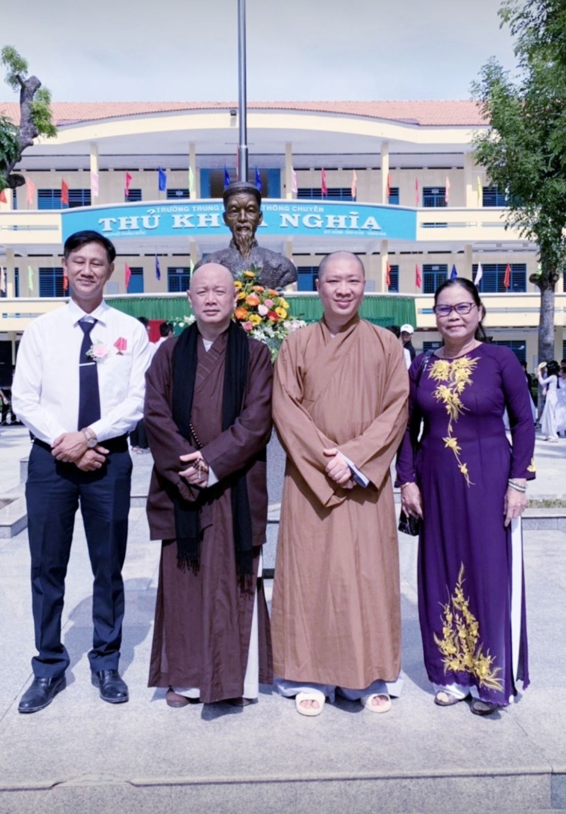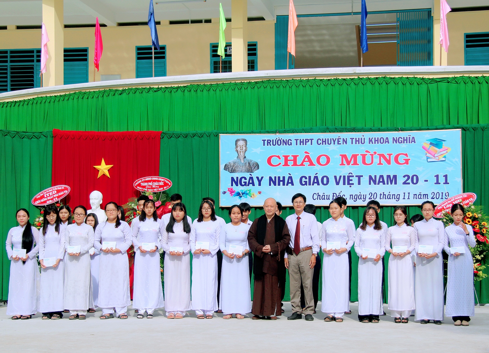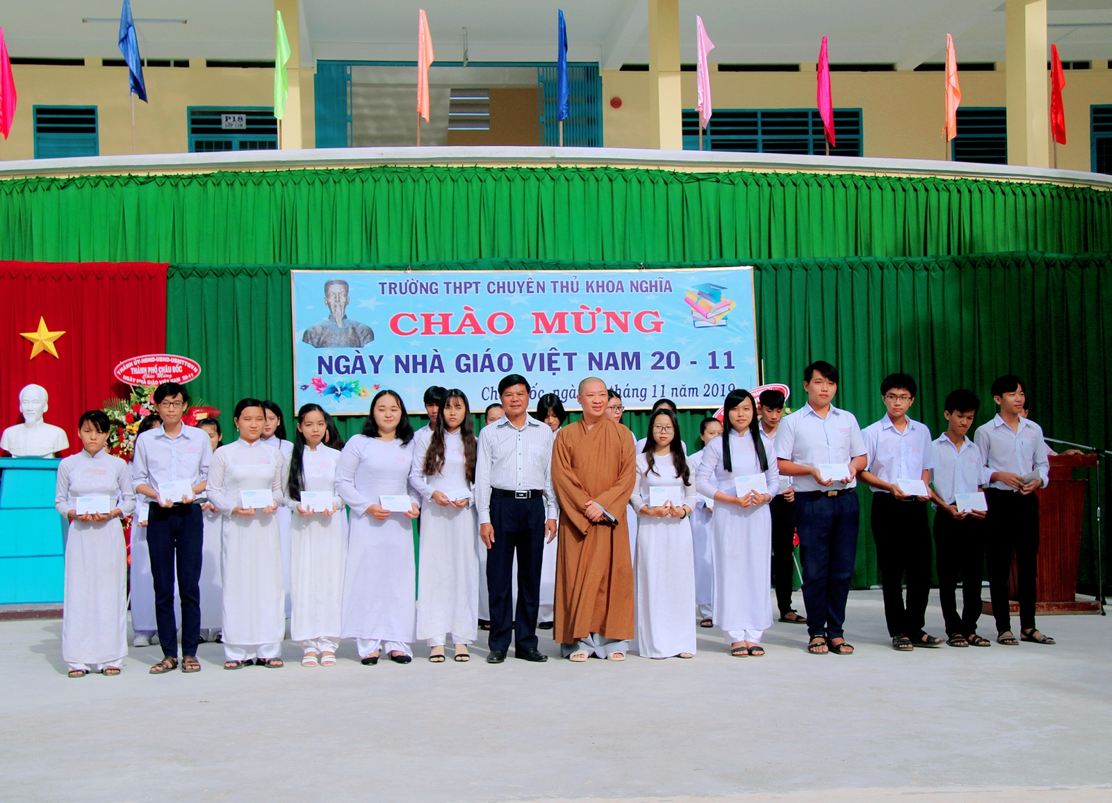 Để đền ơn các thầy cô giáo cũ và ngôi trường đã ươm mầm kiến thức, Thượng tọa trao 100 suất học bổng cho các học sinh hiếu học gặp hoàn cảnh khó khăn, với tổng giá trị 100 triệu đồng. Toàn bộ kính phí trao học bổng này do phật tử Trần Thị Thanh Nga (pháp danh Diệu Tín) và Phạm Minh Quang (pháp danh Thiện Từ) ủng hộ.