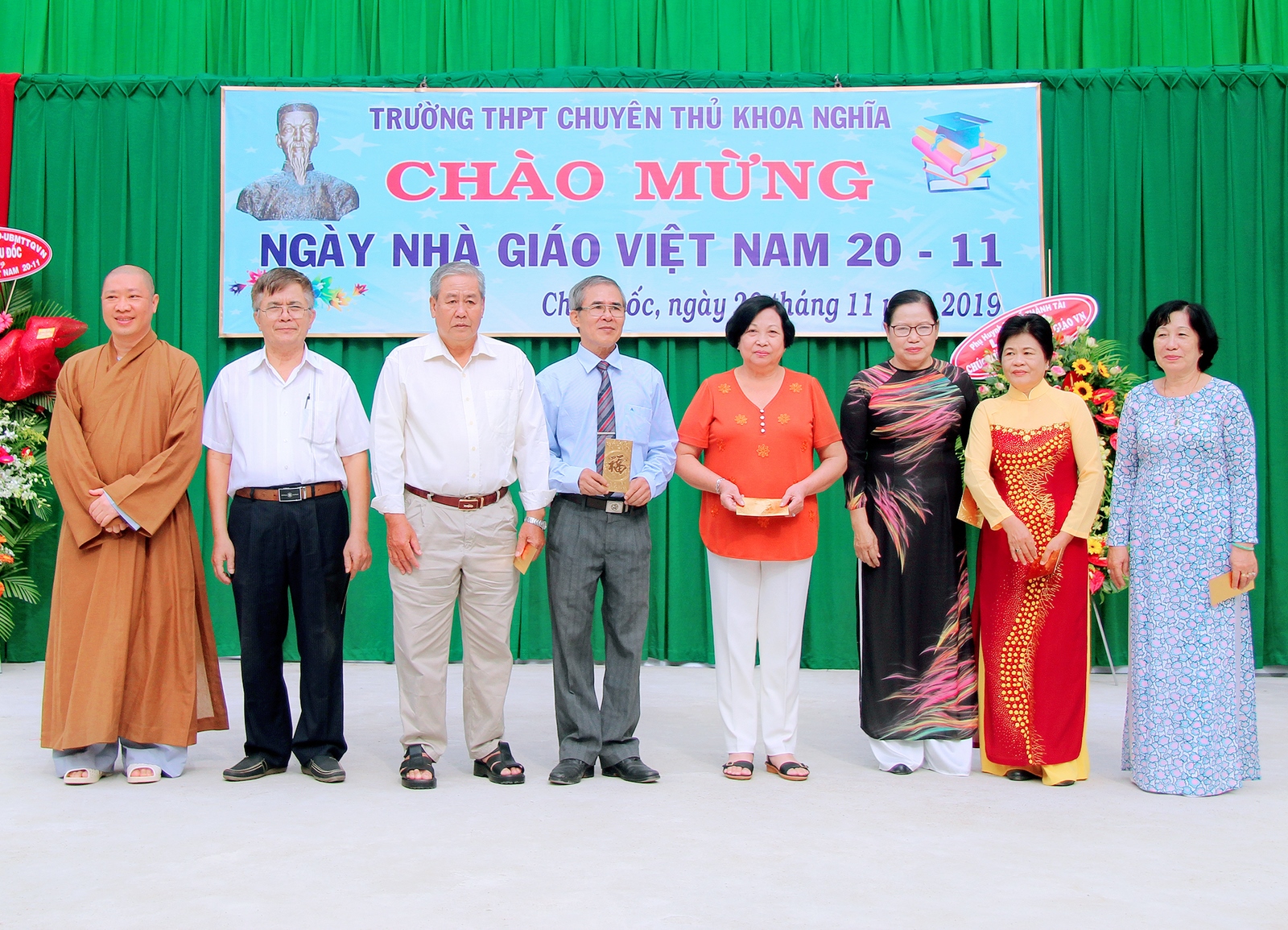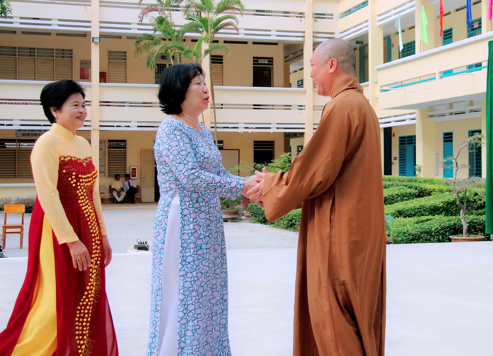 Nhân dịp về lại trường xưa, TT. Thích Thiện Thuận đã thăm hỏi và tặng quà cho các Thầy cô giáo cũ trong buổi lễ với tình cảm đong đầy.