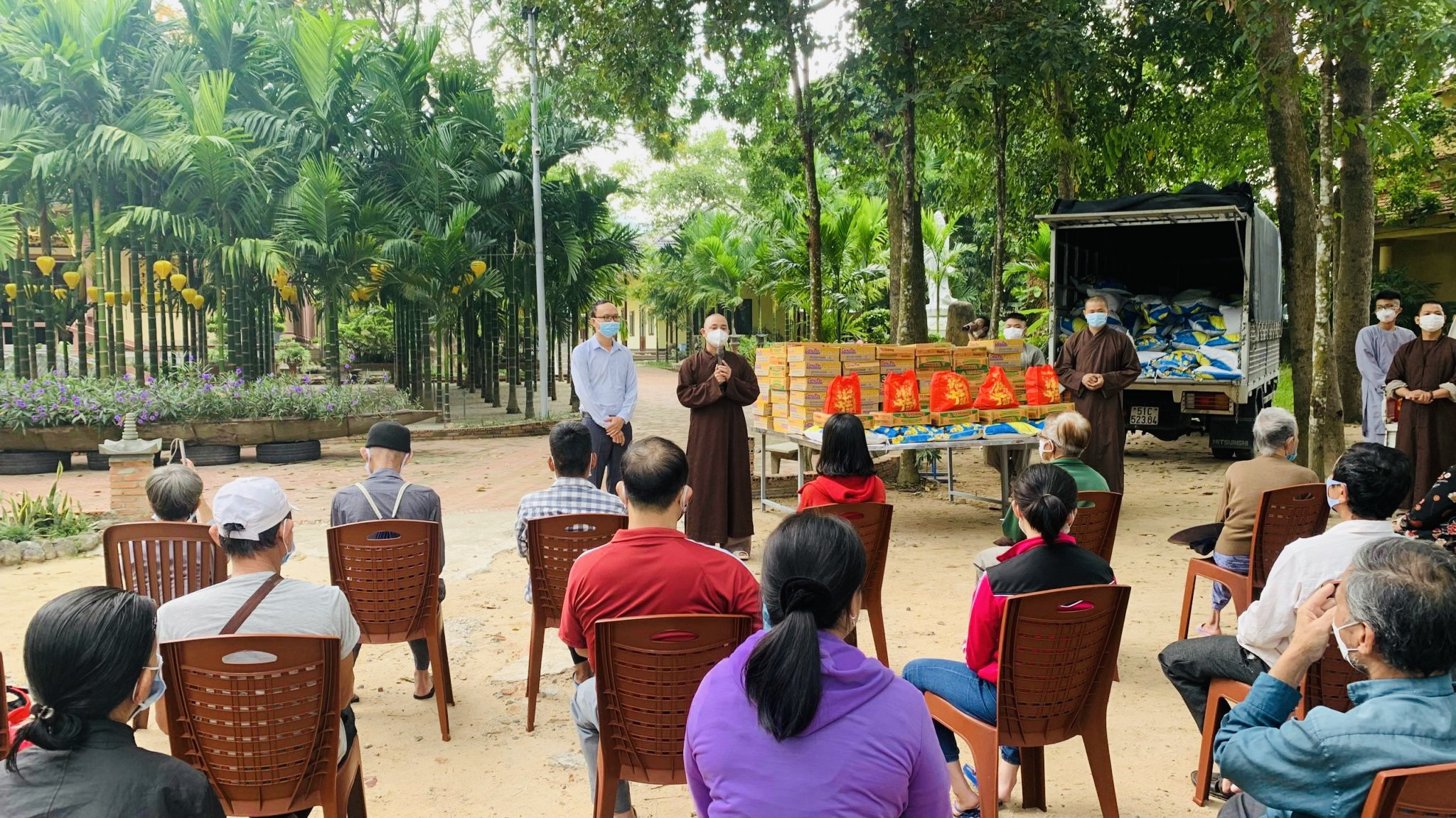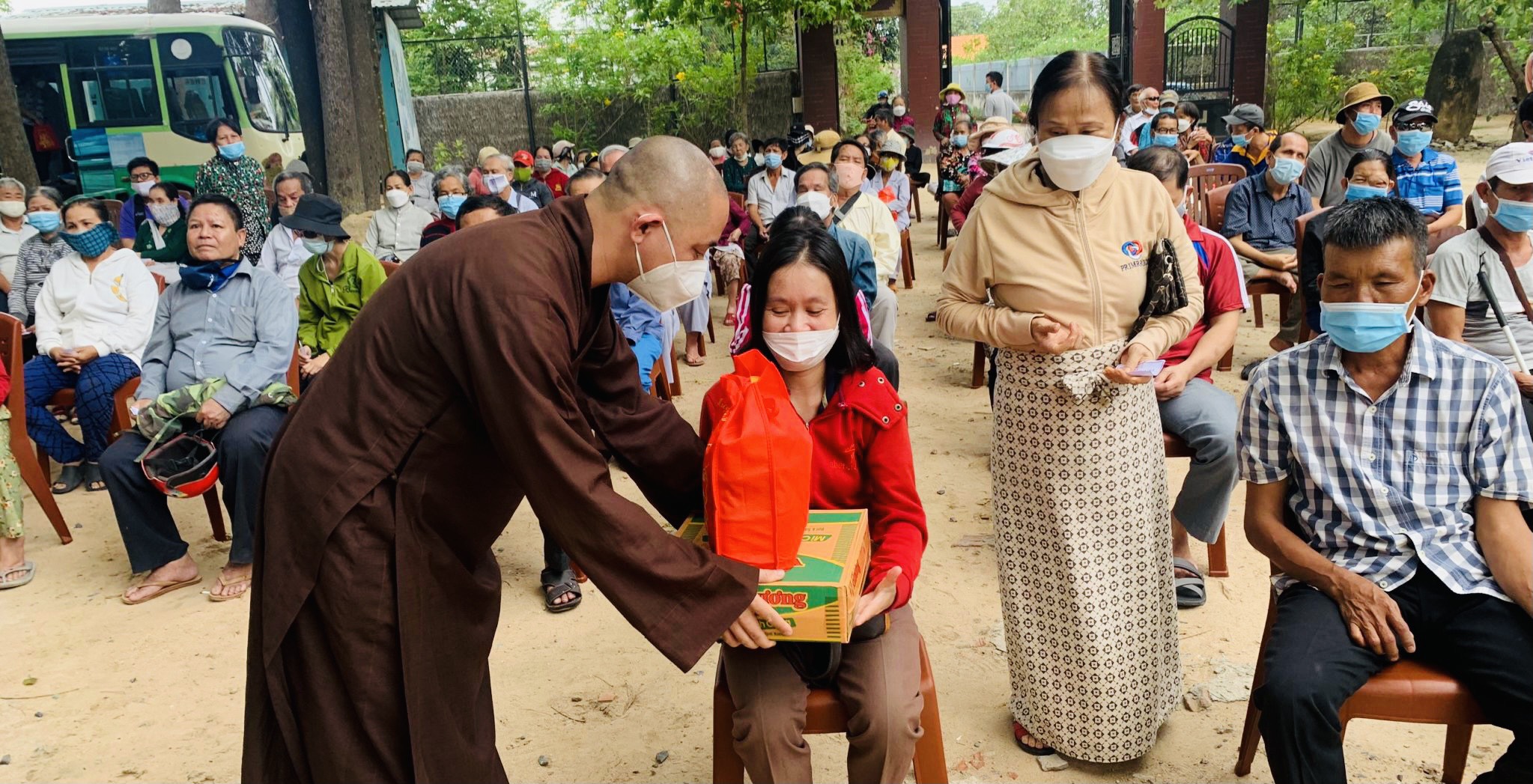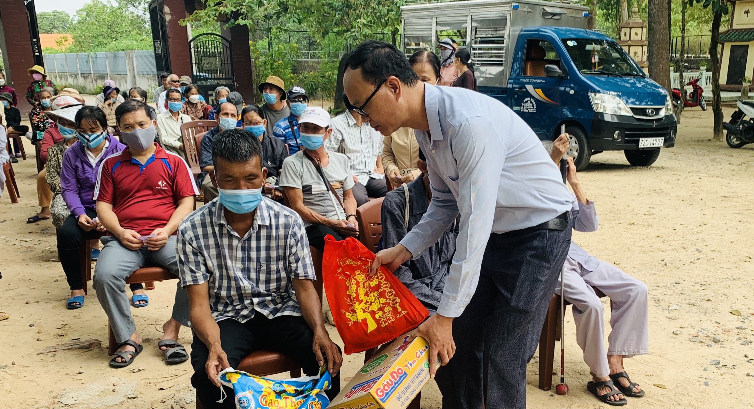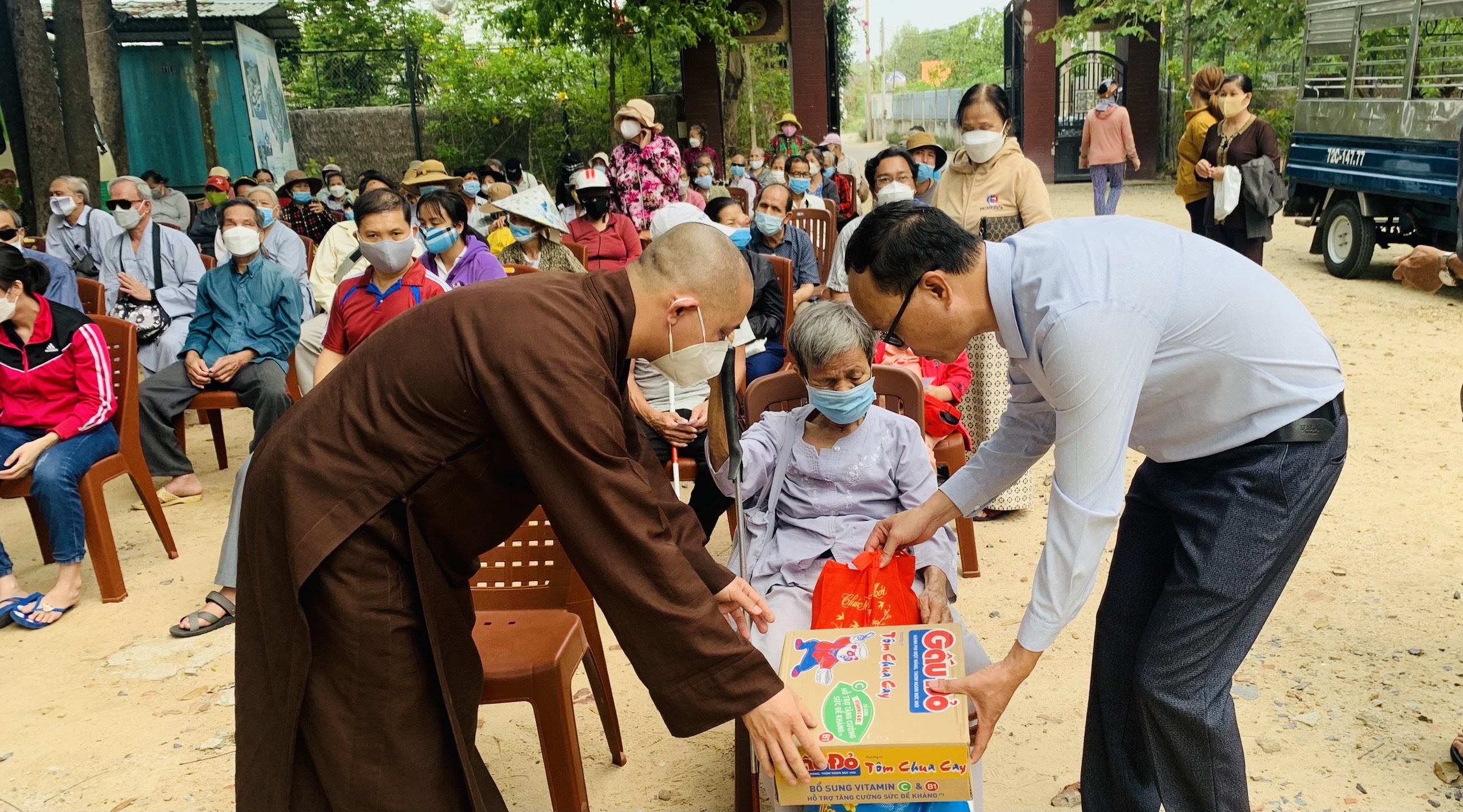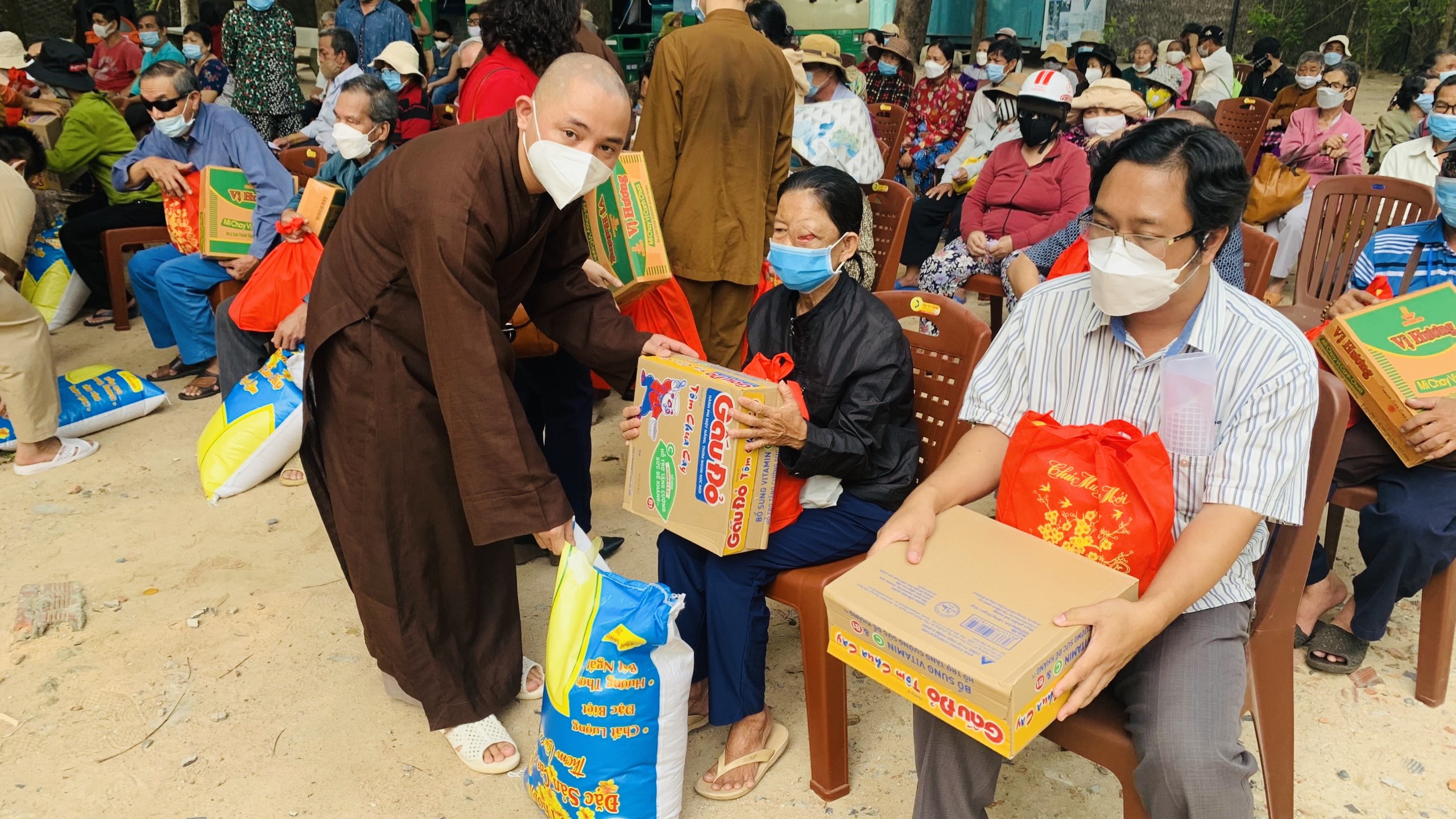 Mỗi phần quà trị giá 500 ngàn đồng, gồm: gạo, mỳ, dầu ăn, nước tương, đường… Tổng trị giá 55 triệu đồng, do Phật tử Thiện Bổn phát tâm. Ngoài ra, để thuận tiện cho các hội viên, TT. Thích Thiện Thuận còn hỗ trợ chi phí thuê phương tiện đi lại cho các hội viên, đến địa điểm chùa Vạn Thiện, khu phố Tân Hạnh, phường Phú Mỹ nhận quà.