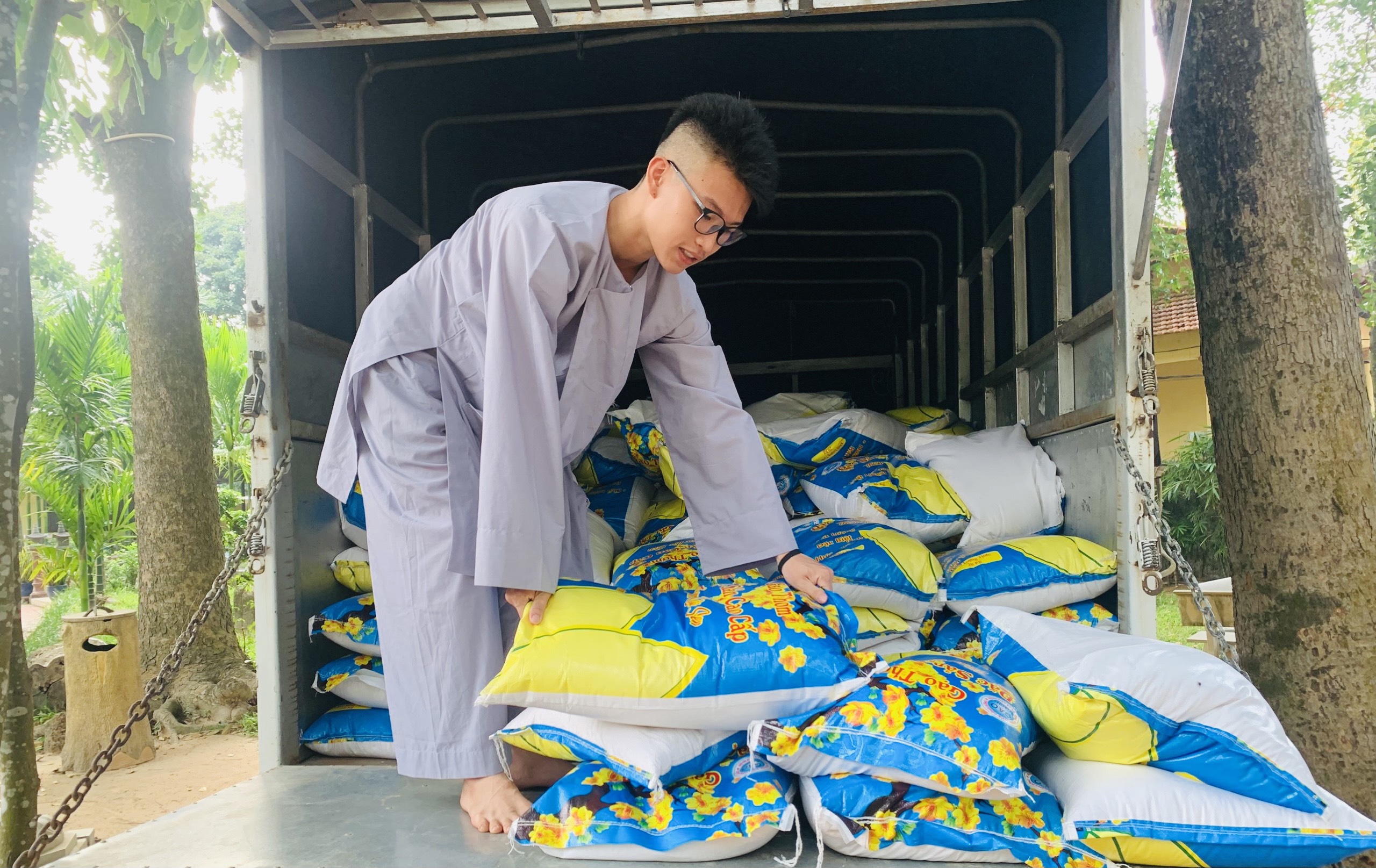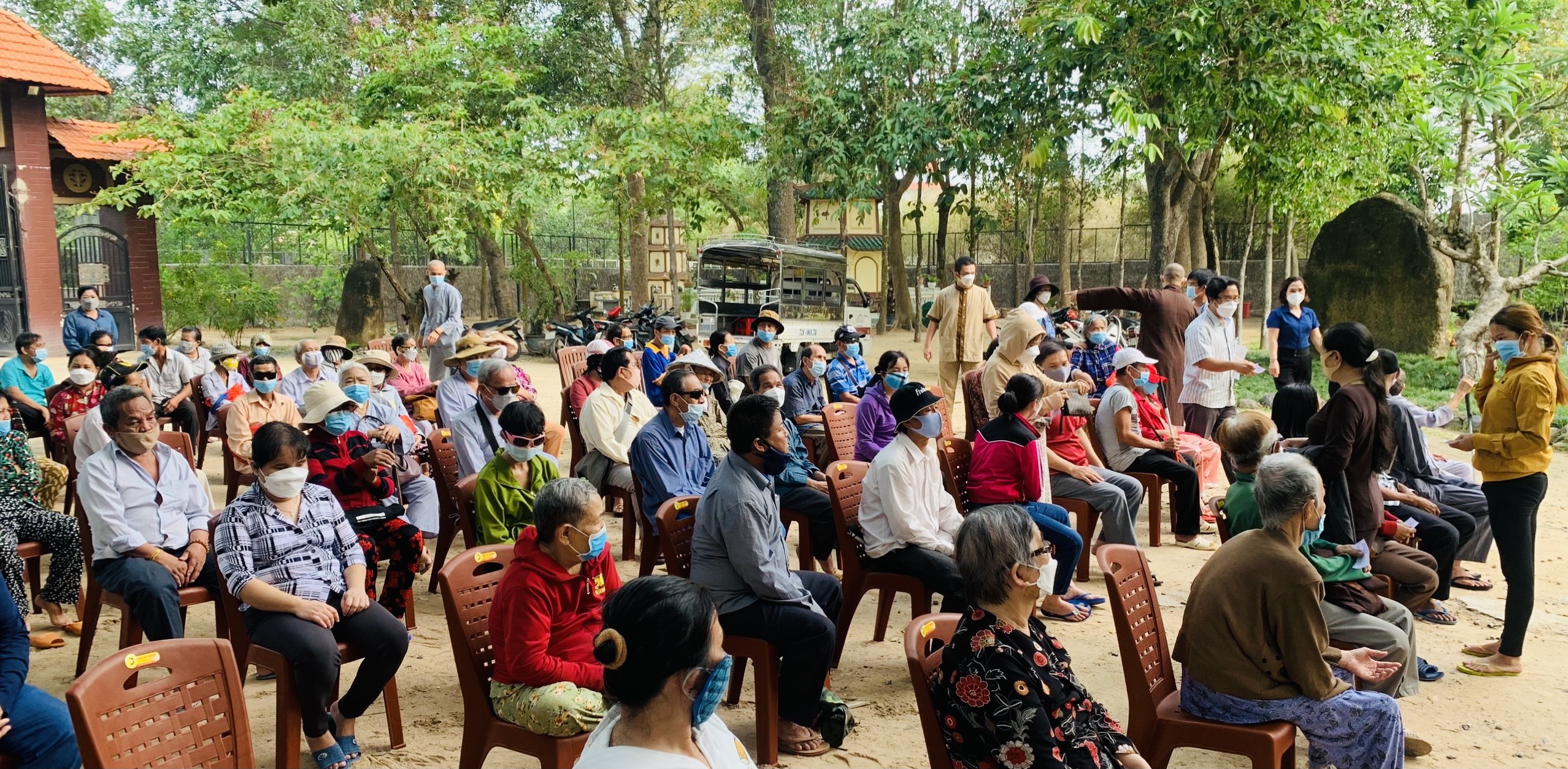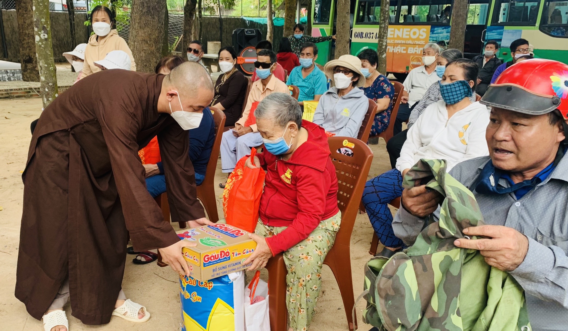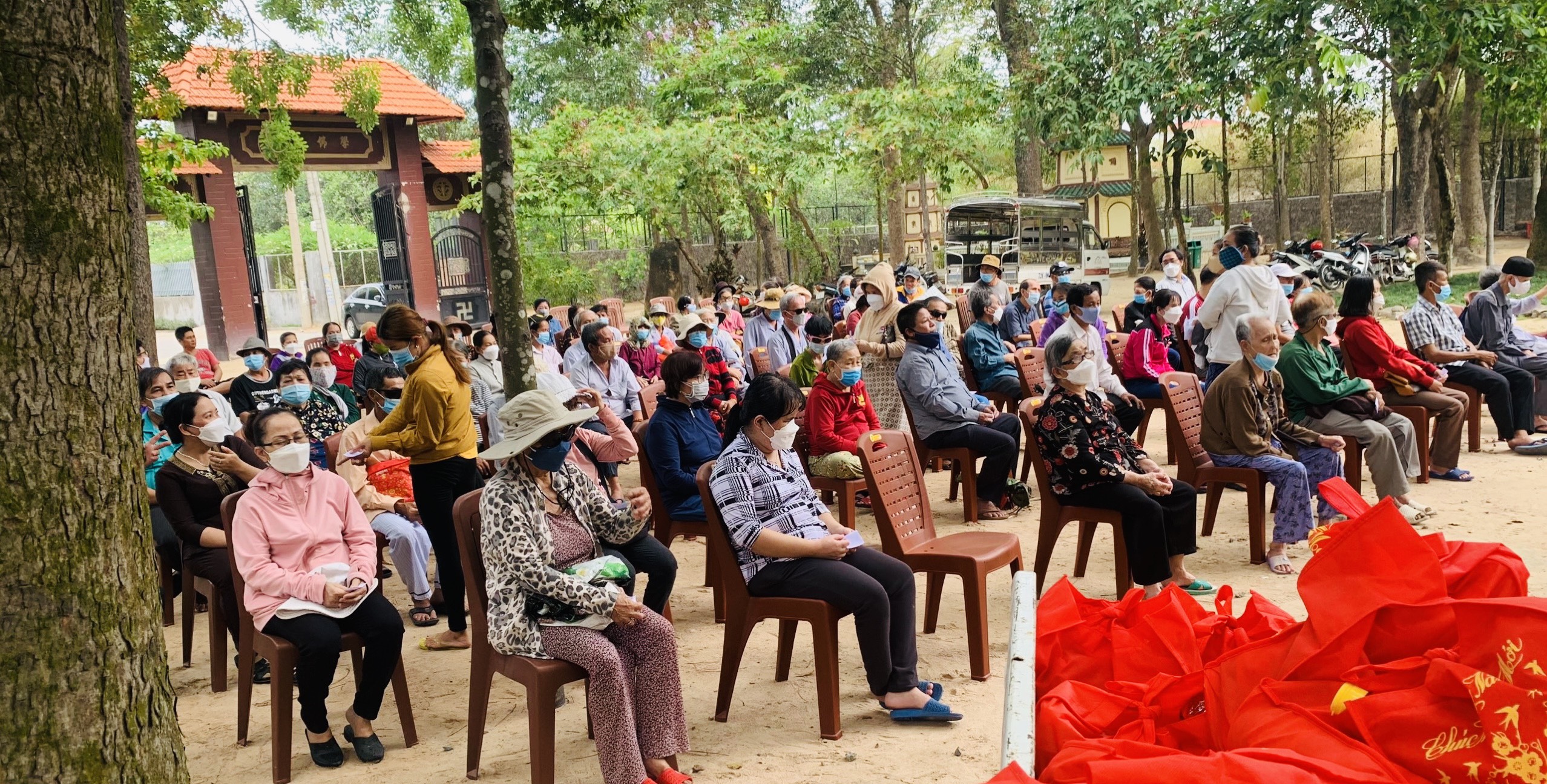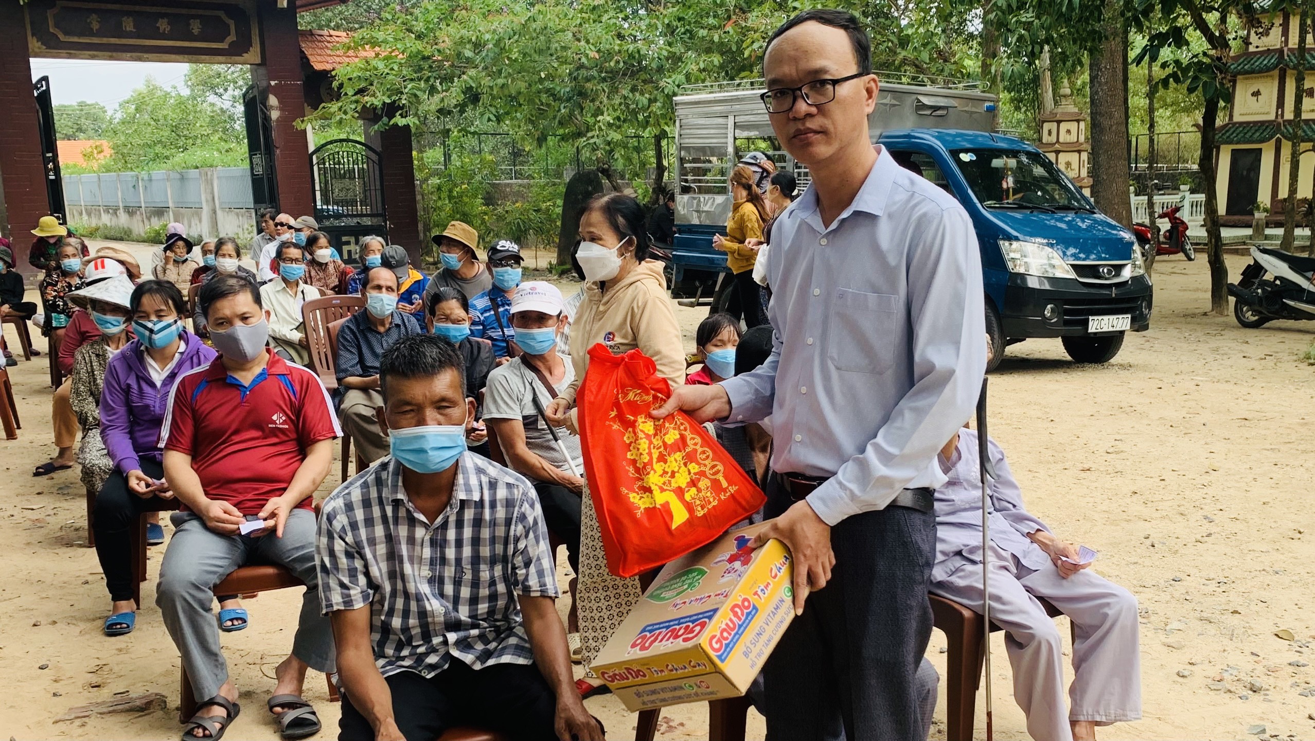 Mỗi phần quà trị giá 500 ngàn đồng, gồm: gạo, mỳ, dầu ăn, nước tương, đường… Tổng trị giá 55 triệu đồng, do Phật tử Thiện Bổn phát tâm. Ngoài ra, để thuận tiện cho các hội viên, TT. Thích Thiện Thuận còn hỗ trợ chi phí thuê phương tiện đi lại cho các hội viên, đến địa điểm chùa Vạn Thiện, khu phố Tân Hạnh, phường Phú Mỹ nhận quà.