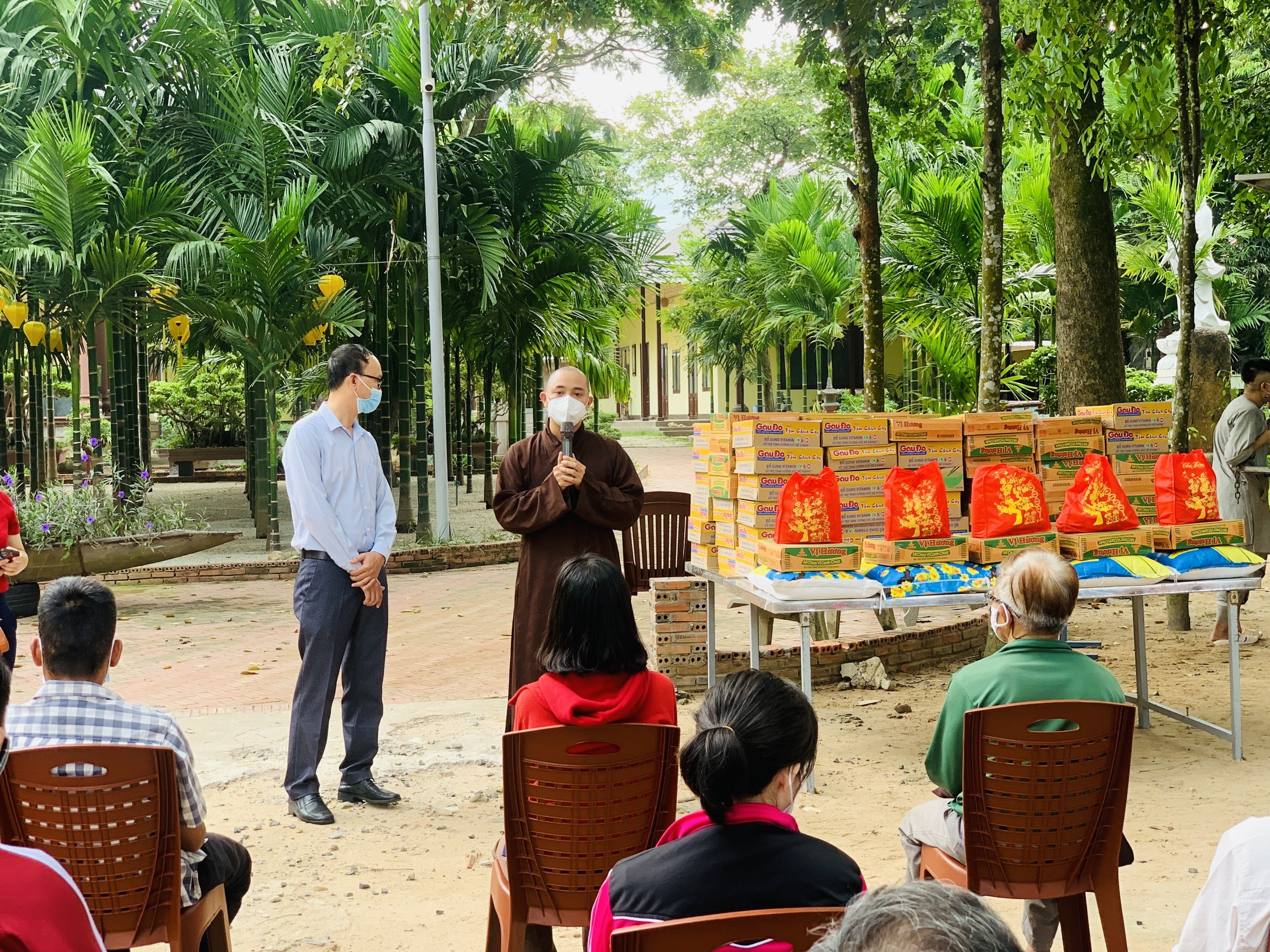 Tại Lễ tặng quà, ĐĐ. Thích Thiện Thủ, đại diện Chùa đã có lời động viên bà con và cảm ơn MTTQ đã hỗ trợ để Viện Chuyên Tu thuận lợi chia sẻ những phần quà đến bà con. Ông Nguyễn Cao Phú đại diện Ban Thường trực Ủy ban MTTQ VN thị xã gửi lời cảm ơn đến Thượng tọa Thích Thiện Thuận, Trụ trì Viện Chuyên Tu, các Thầy, các mạnh thường quân và nhà hảo tâm thời gian qua đã luôn đồng hành cùng MTTQ và địa phương trong các hoạt động chăm lo cho hộ nghèo, khó khăn… Đồng thời, mong muốn thời gian tới MTTQ tiếp tục nhận được sự quan tâm, hỗ trợ của quý Thầy, quý mạnh thường quân trong các hoạt động An sinh xã hội.