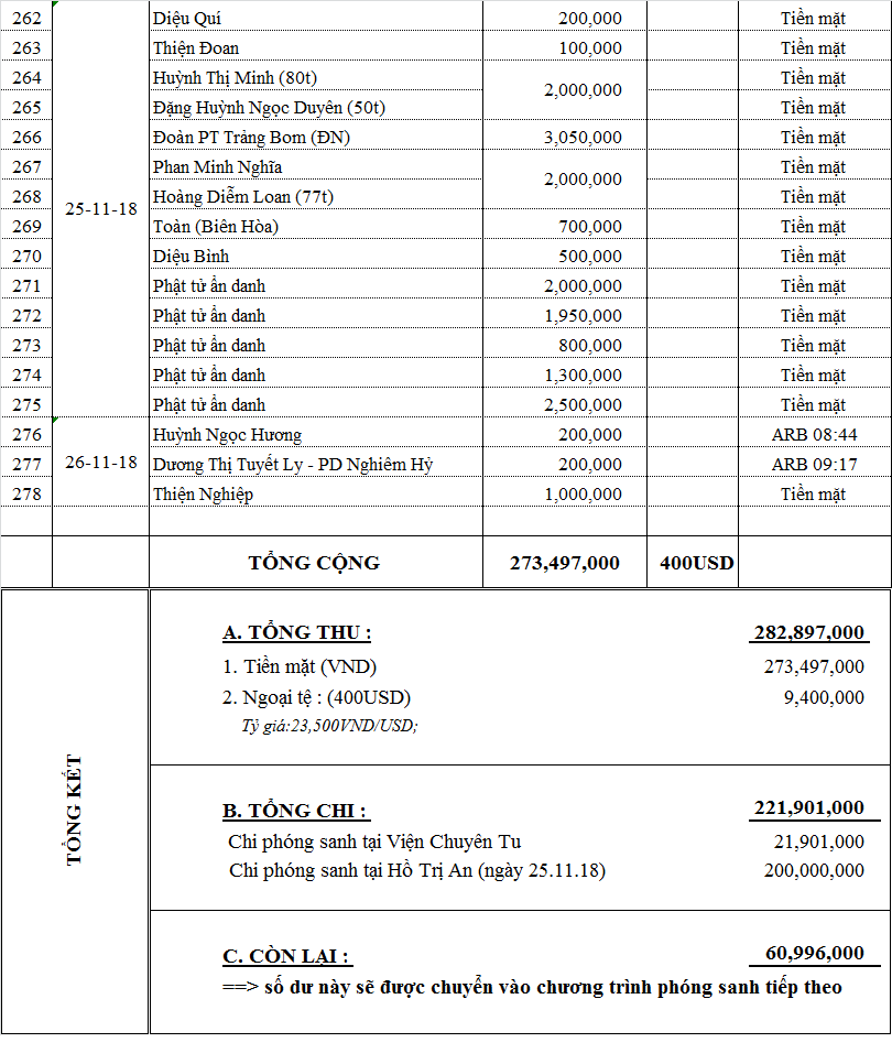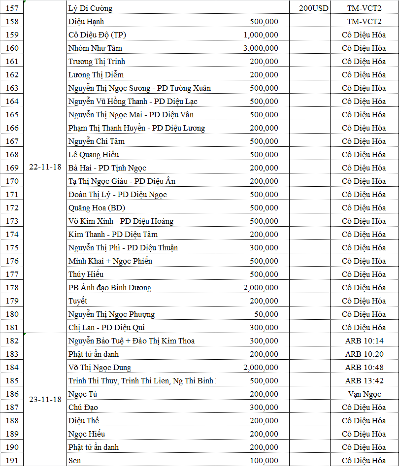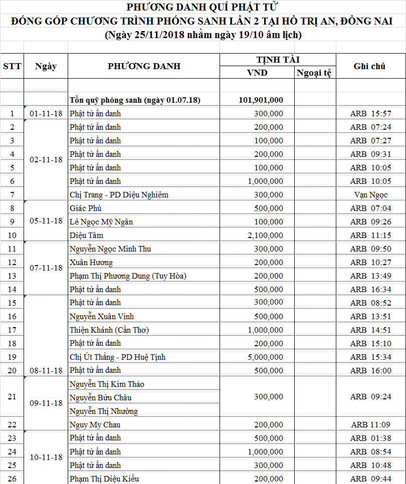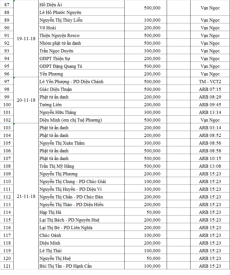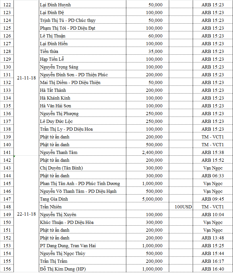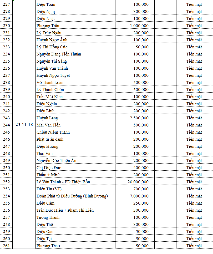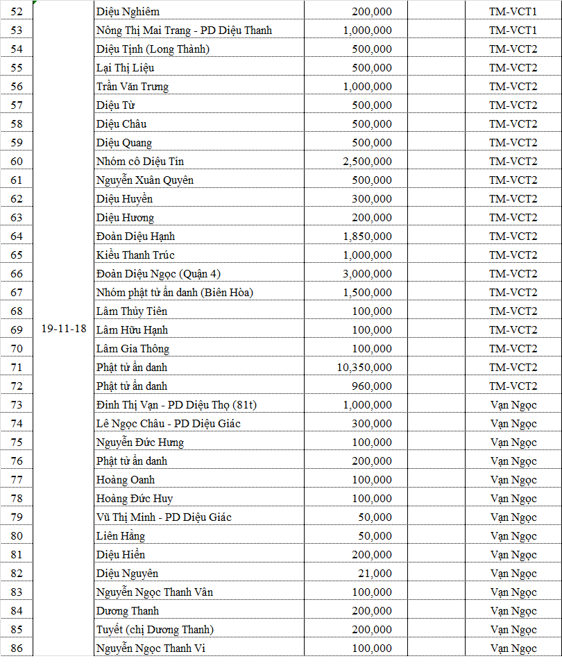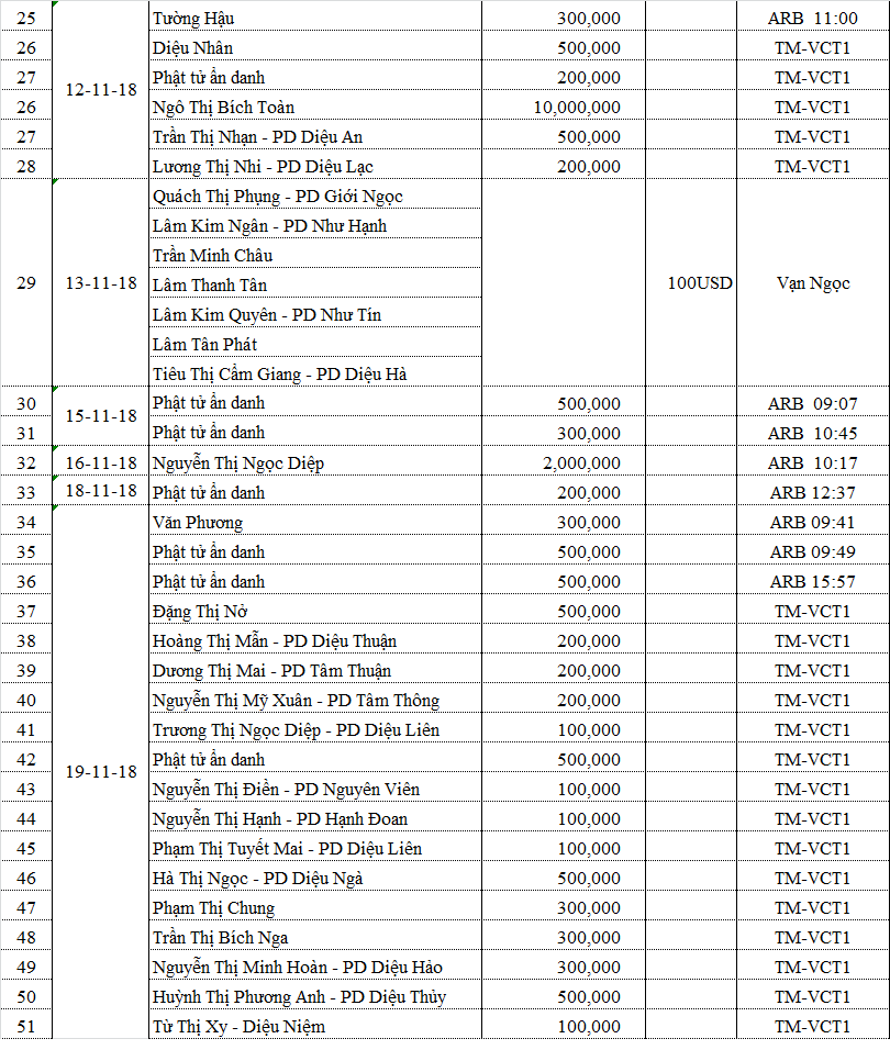 Danh sách phương danh các quý Phật tử đã đóng góp cho chương trình: