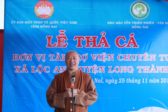 Phát biểu tại buổi lễ, ông Huỳnh Văn Tới nhấn mạnh tầm quan trọng của hoạt động thả cá này nhằm bảo vệ môi trường, bảo vệ nguồn lợi thủy sản, giữ gìn nguồn nước sạch hồ Trị An phục vụ cuộc sống và cân bằng hệ sinh thái. Đồng thời ông cũng cho biết Viện Chuyên Tu là tổ chức tôn giáo hưởng ứng hoạt động này tích cực nhất trong thời gian qua.