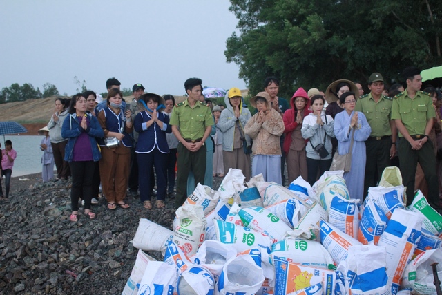 Số lượng thả cả đợt này hơn 70.000 con cá giống các loại như: cá trôi, cá chép, cá mè… trị giá 200 triệu đồng.