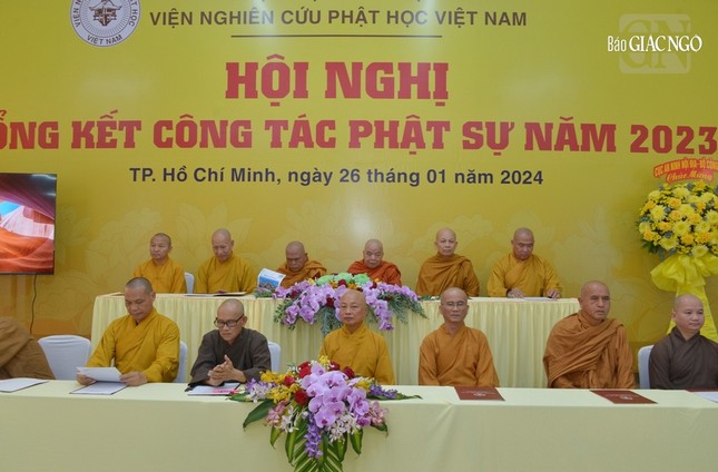 Về báo cáo tổng kết, Thượng tọa Thích Nhật Từ, Phó Viện trưởng, Tổng Thư ký Hội đồng Quản trị Viện Nghiên cứu Phật học VN nhìn nhận, trong năm 2023, Viện có nhiều thành tựu đáng khích lệ. Viện đã phiên dịch, biên tập bộ Bản duyên, Ma-ha Tăng-kỳ, hiện đang tiến hành các công đoạn để xuất bản kinh Đại Phương Quảng Phật Hoa Nghiêm, Đại Bảo tích, Đại Bát Niết-bàn và các bộ Luật Tứ phần, Ngũ phần…